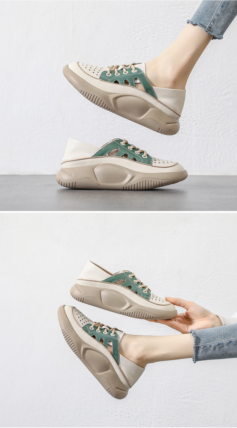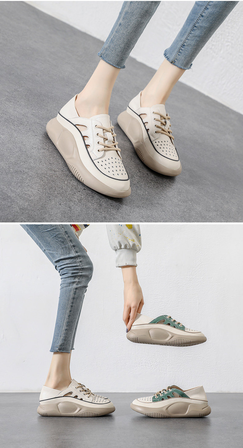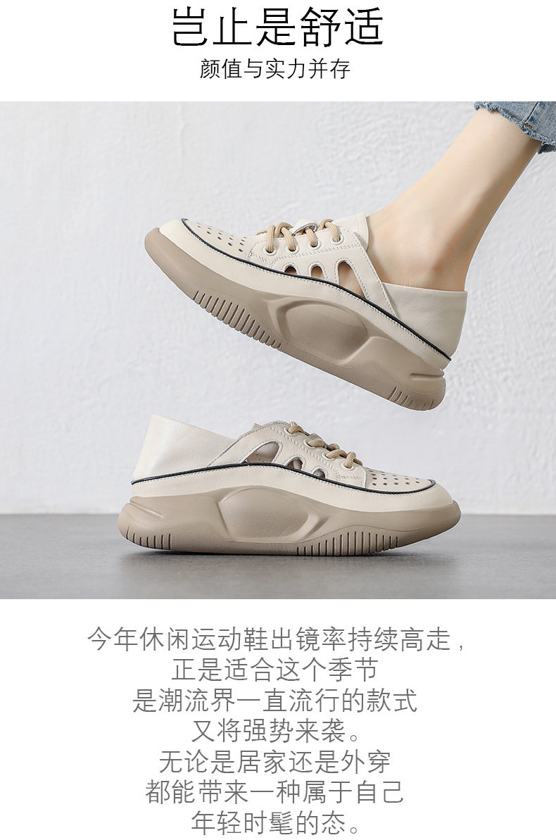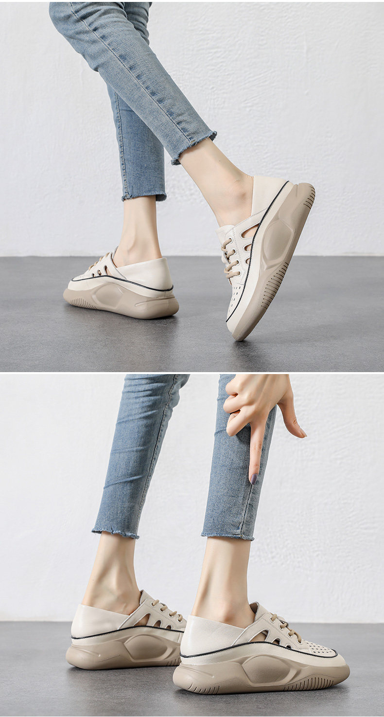 Genuine Leather Sports Sandals for Women, Thick-Soled, Hollow, Breathable White Shoes, 2026 Summer New Style, Closed-Toe, Perforated Casual Sneakers