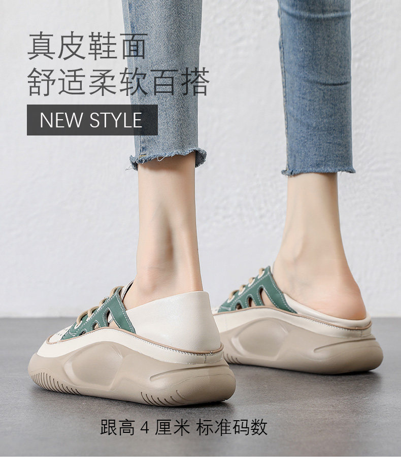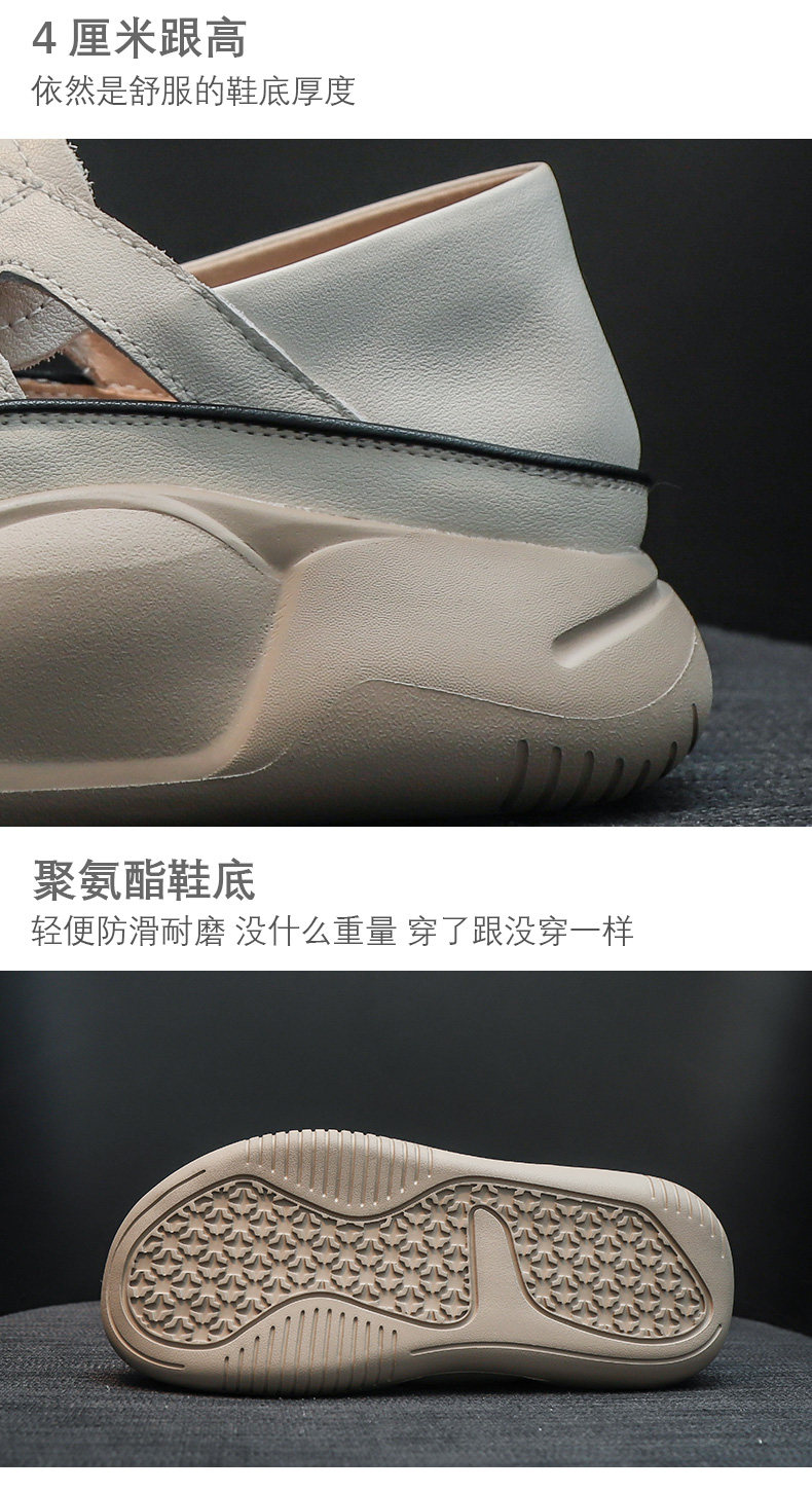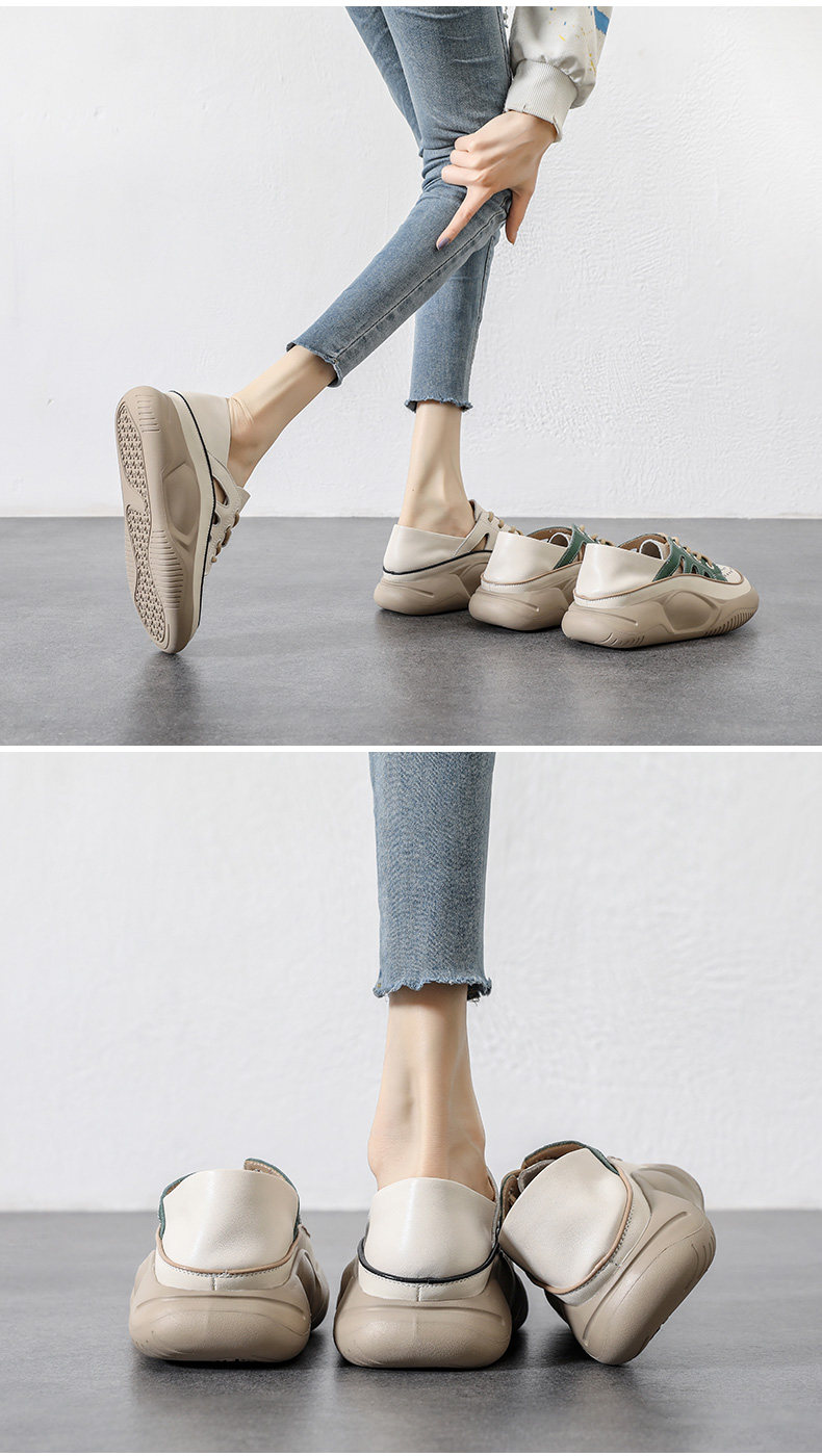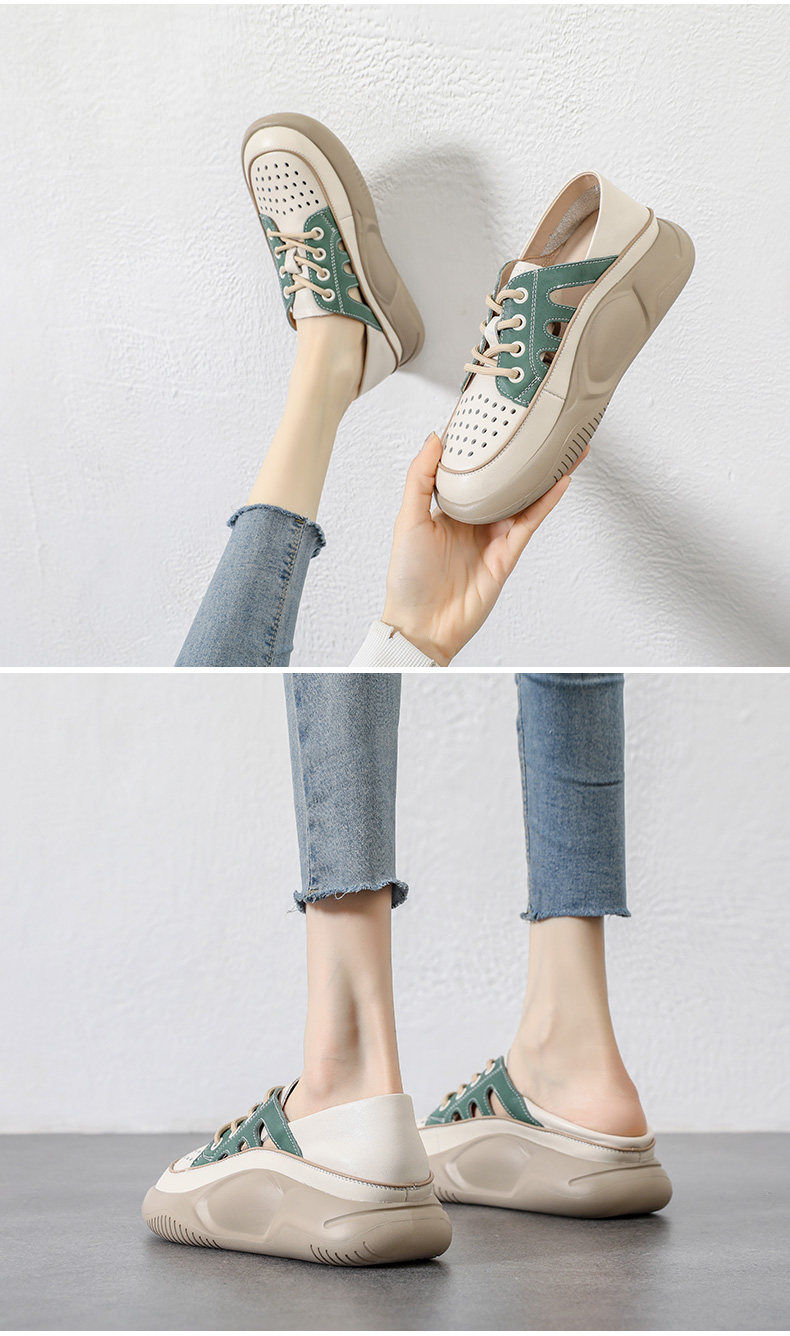 Genuine Leather Sports Sandals for Women, Thick-Soled, Hollow, Breathable White Shoes, 2026 Summer New Style, Closed-Toe, Perforated Casual Sneakers
