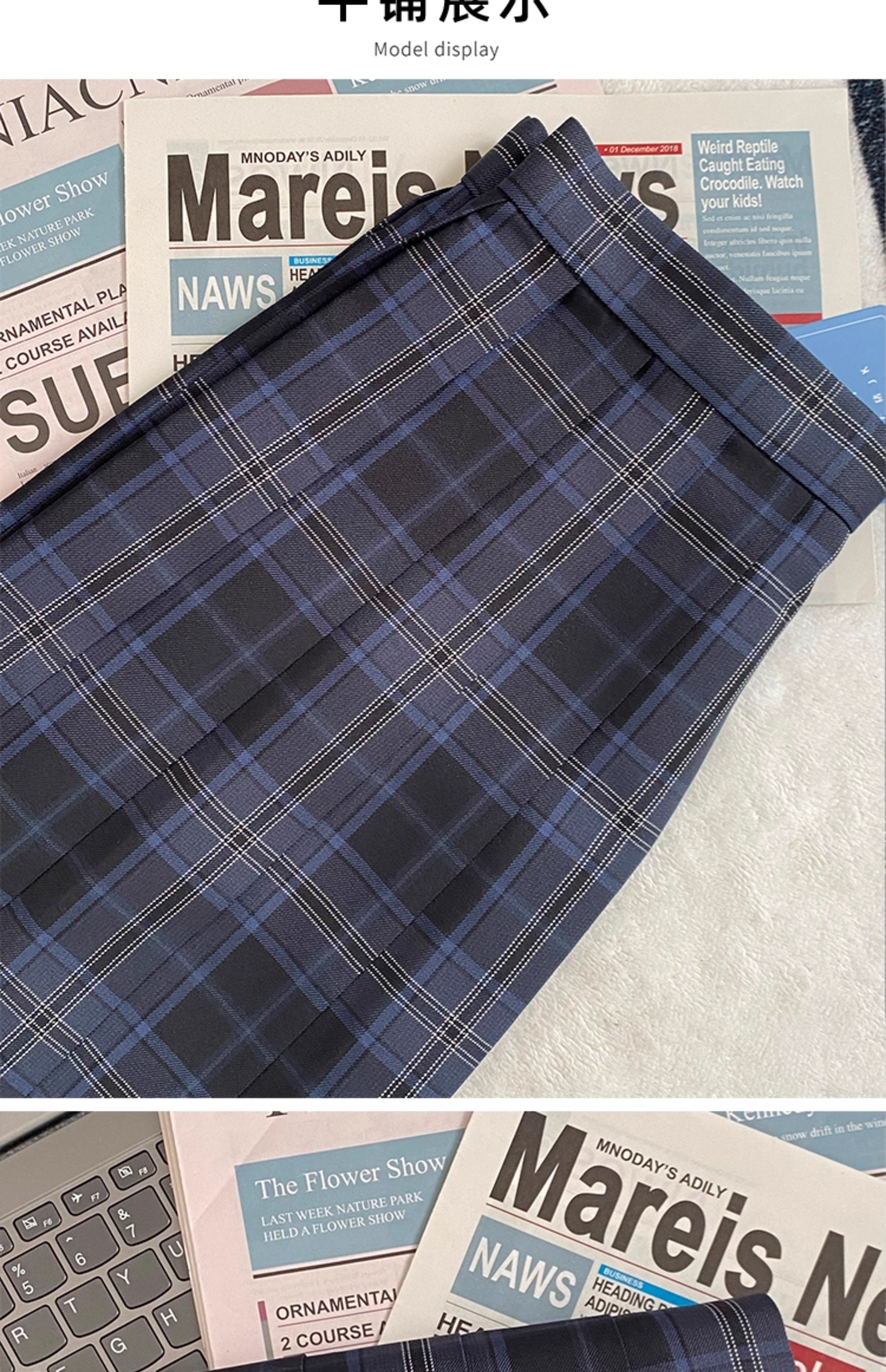 Hua Qianzhu Original Design Jinchuan Plaid Skirt Jk Uniform School Style A-Line Pleated Skirt Blue Plaid Versatile Jk Skirt