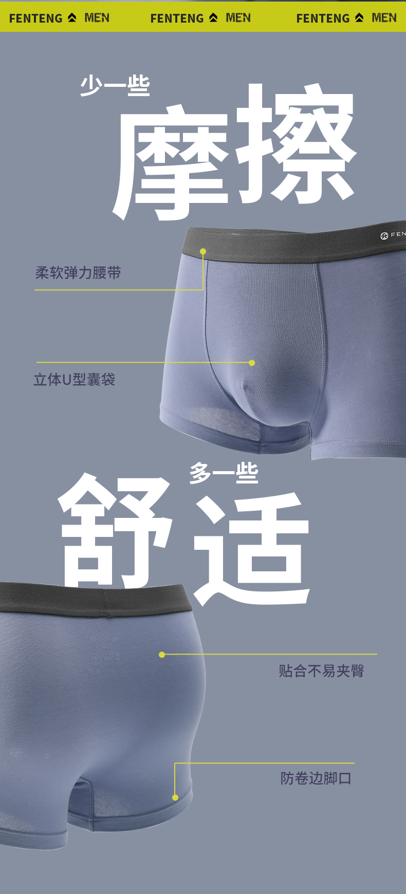 Fenton Men's Underwear Pure Cotton Summer Breathable Boxer Briefs Young Men's Boxer Shorts Sports Large Size Shorts Underpants