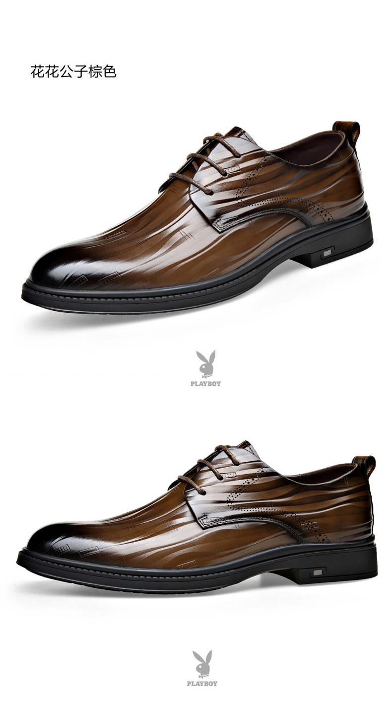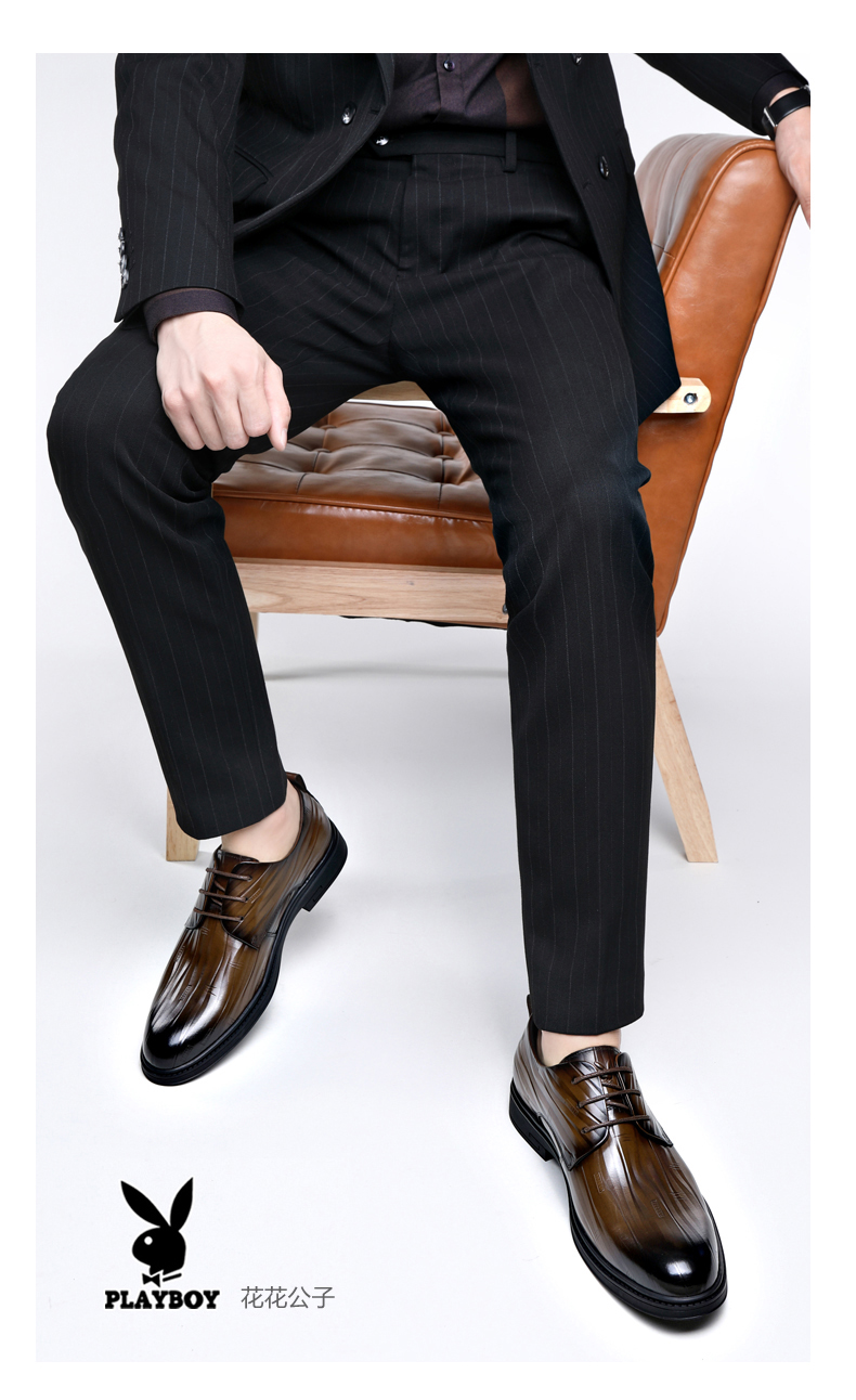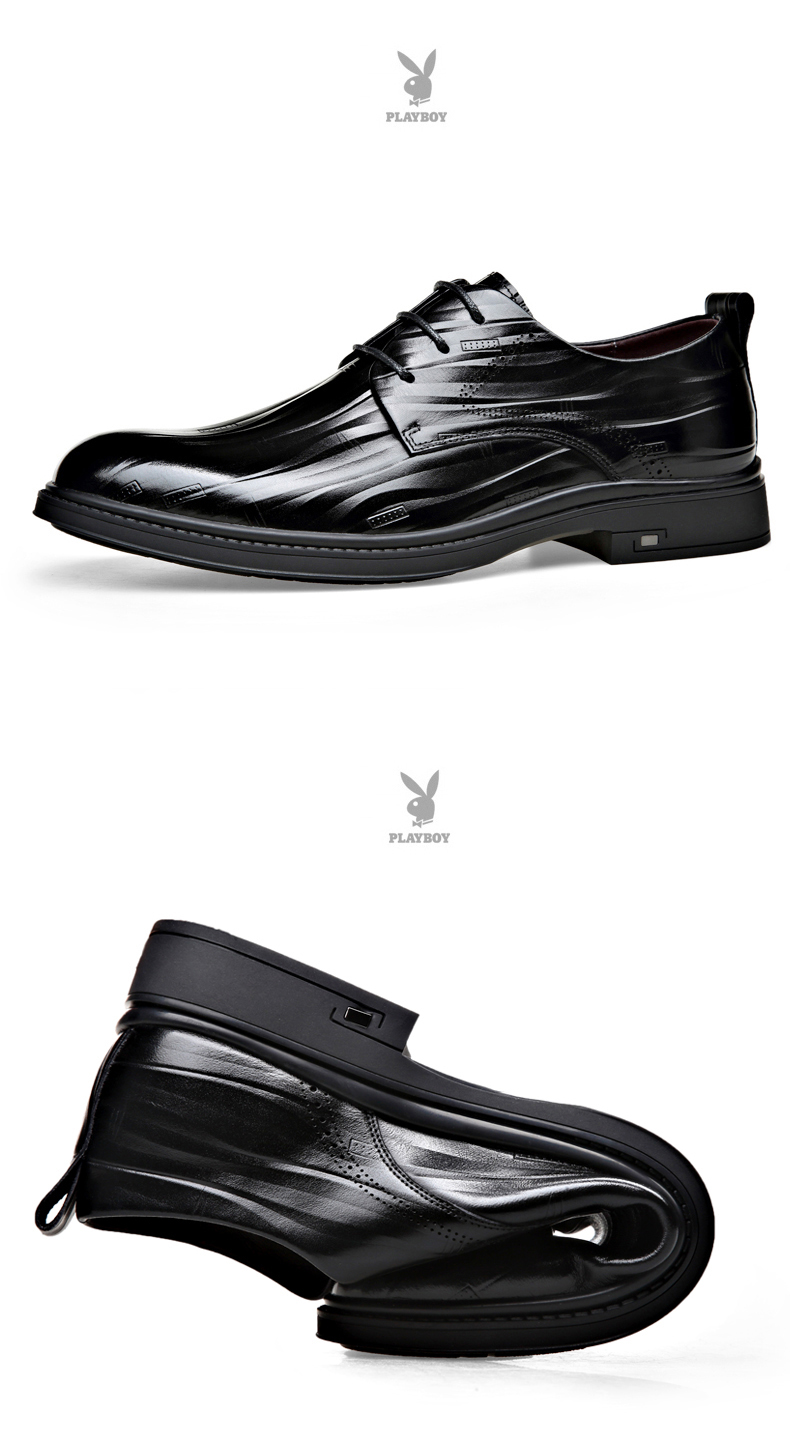 Playboy Leather Shoes for Men, Genuine Leather, Business Formal Wear, Height-Increasing, Black Pointed Toe, Wedding Groom, Large Size, Winter Fleece-Lined