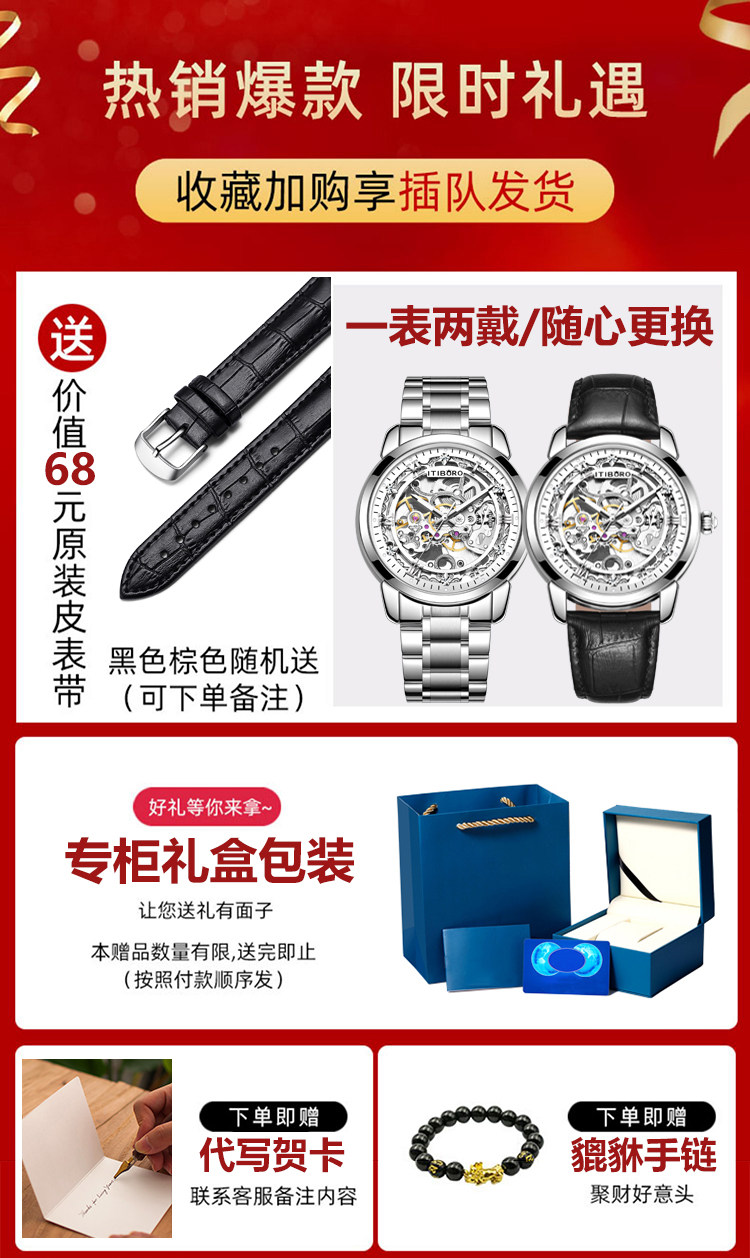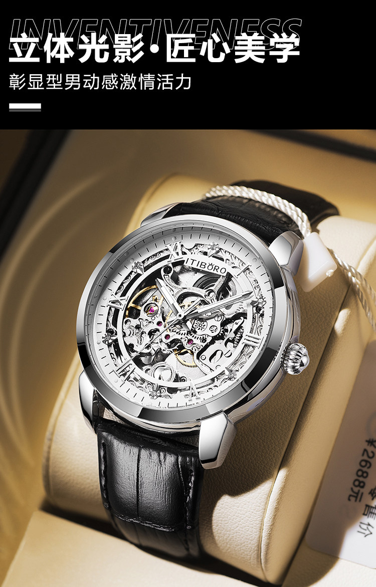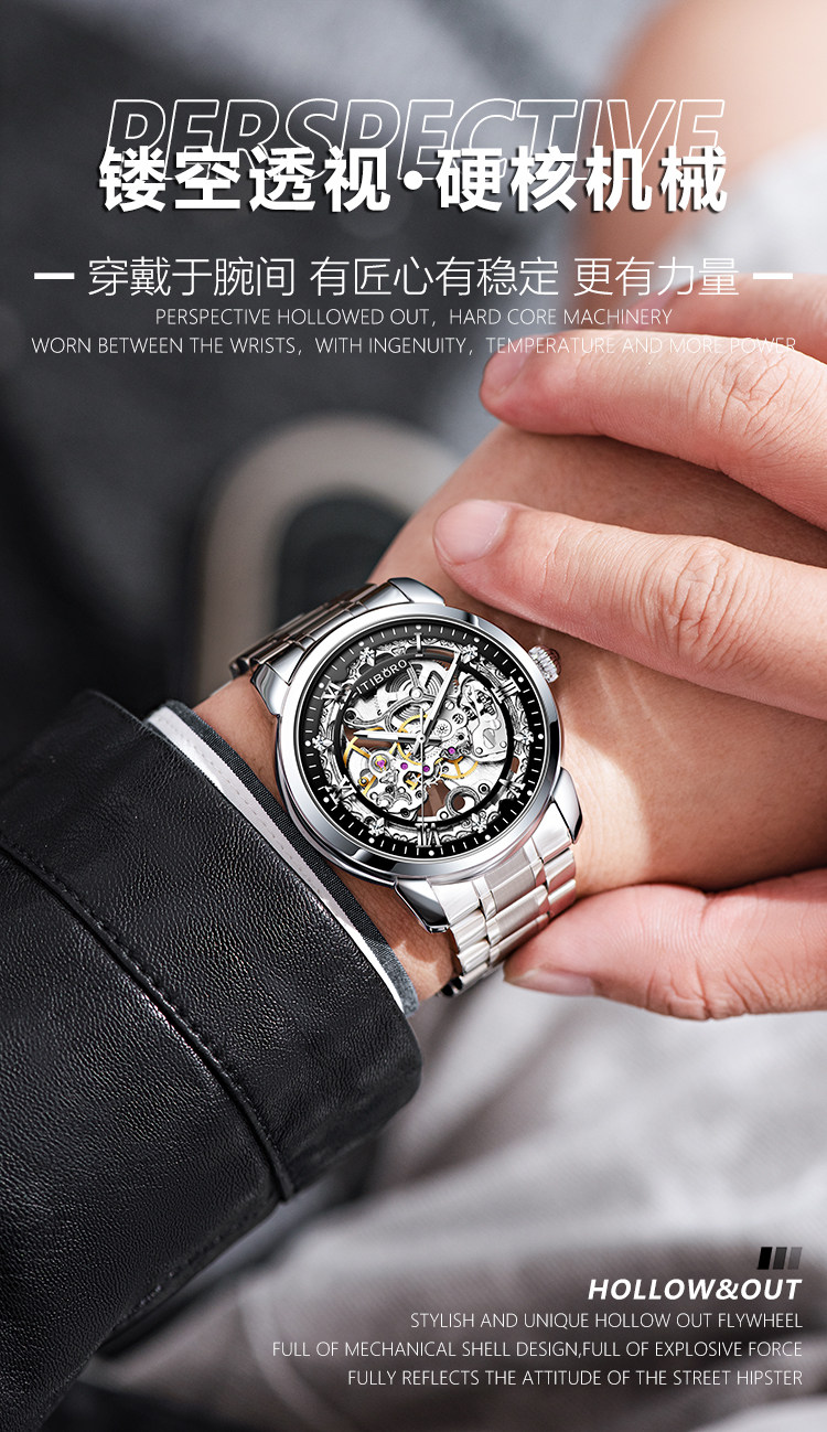 Authentic New Men's Mechanical Watch, Fully Automatic Tourbillon, Student Style, Hollow Design, Luminous, Waterproof, Top Ten Brands
