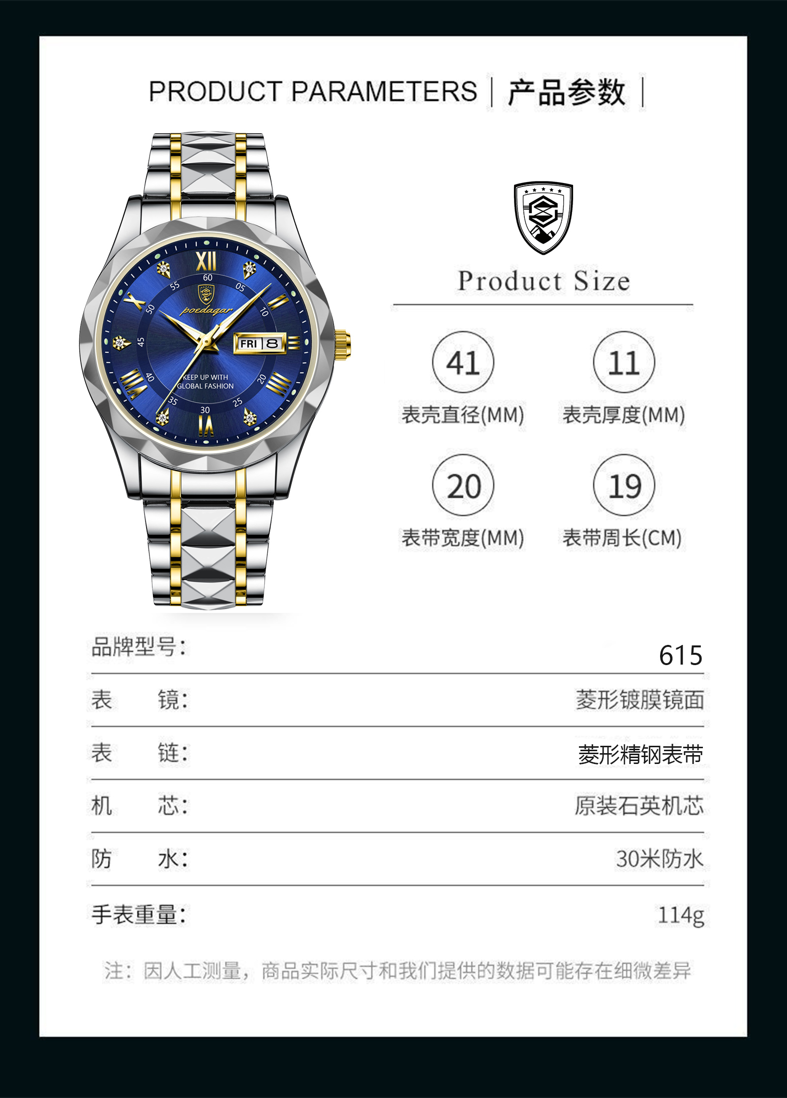 Genuine Men's Fully Automatic Waterproof Luminous Watch Casual Business Dual Calendar Watch Men's Male Student Brand-Name Watch