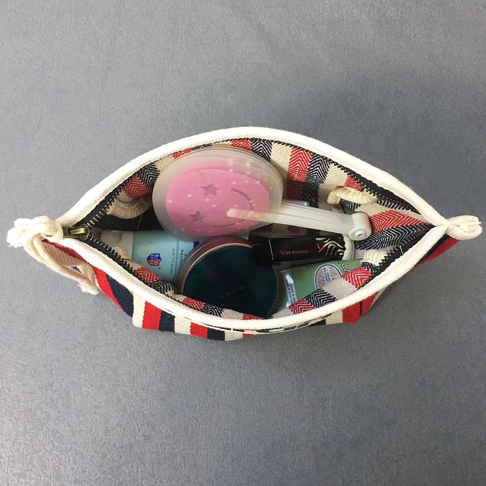 Japanese Style 100% Pure Cotton Small Bag for Makeup, Keys, and Personal Items, Unique Striped Clutch Bag, New Model