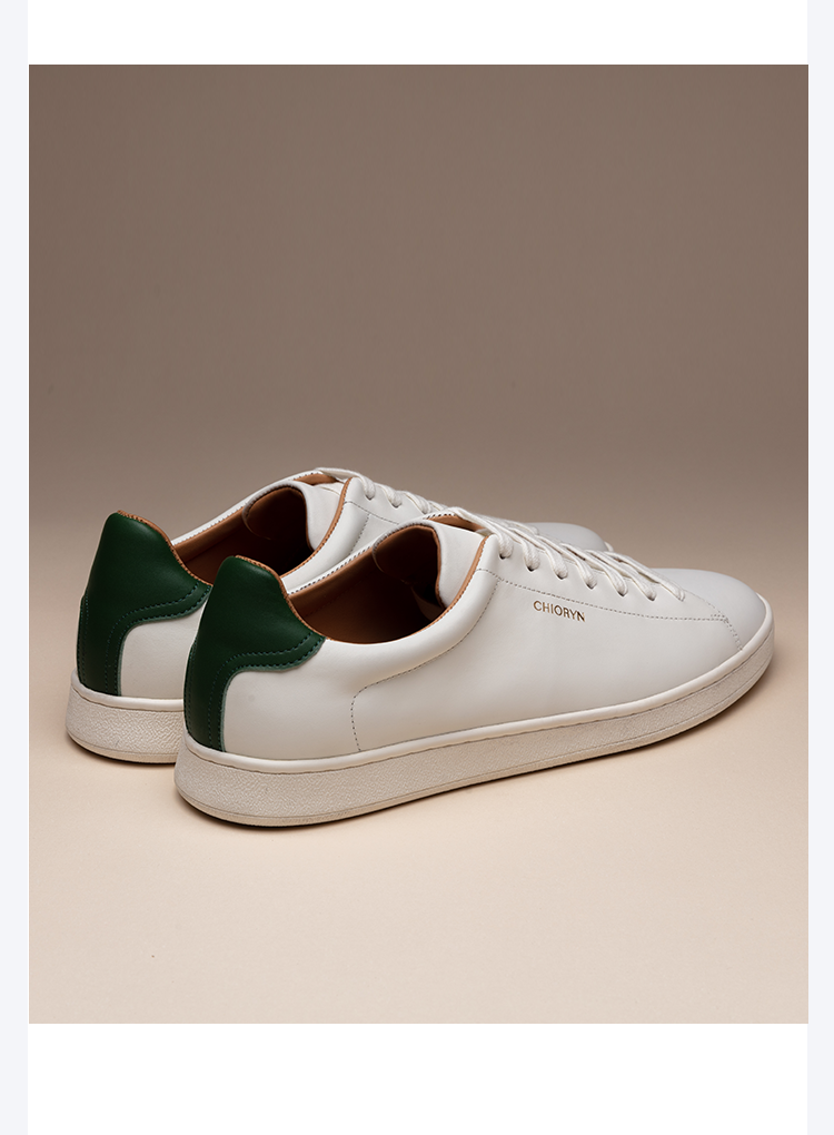 [Calfskin] Chioryn Green Moisturizing White Sneakers Men's Classic Retro Casual Sneakers White Genuine Leather Shoes