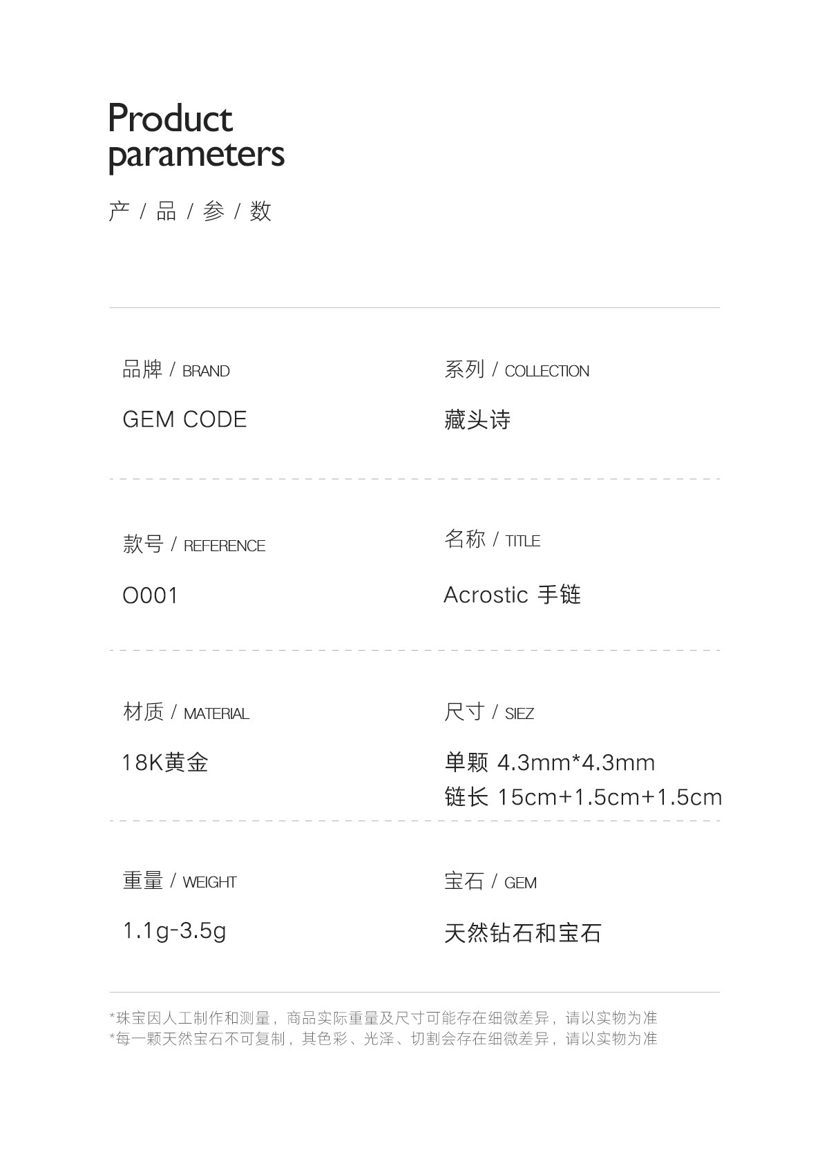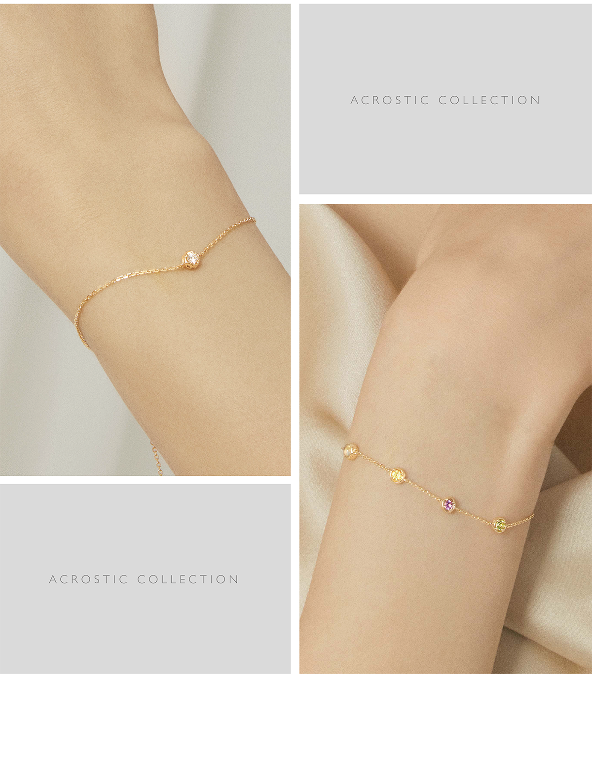 Gemcode Acrostic Bracelet 26 Kinds of Alphabet Gemstones DIY 18K Gold Women's Bracelet Reversible