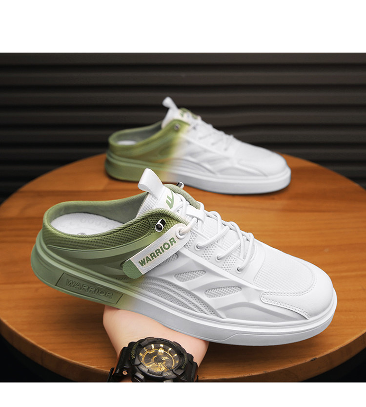 Pull-Back Canvas Shoes for Men, Half-Slipper Style, Summer Mesh Breathable Trendy Casual Closed-Toe Slip-On Shoes Without Heel
