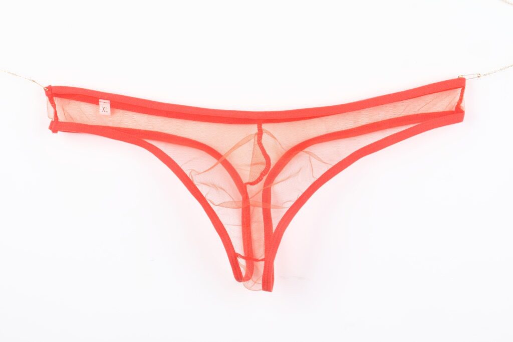 Men's Mesh Transparent Underwear, Lace Seamless, Sexy Mesh Pouch, Solid Color, See-Through Men's Thong