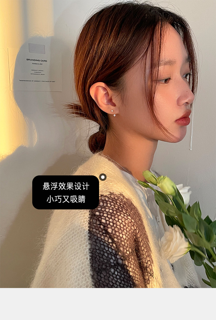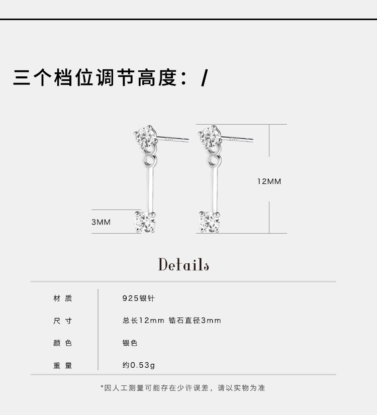 Earrings with Pure Silver Posts for Ear Care, Niche High-End Style, Back-Hanging, Exquisite and Compact, Sparkling Zirconia Earrings for Women