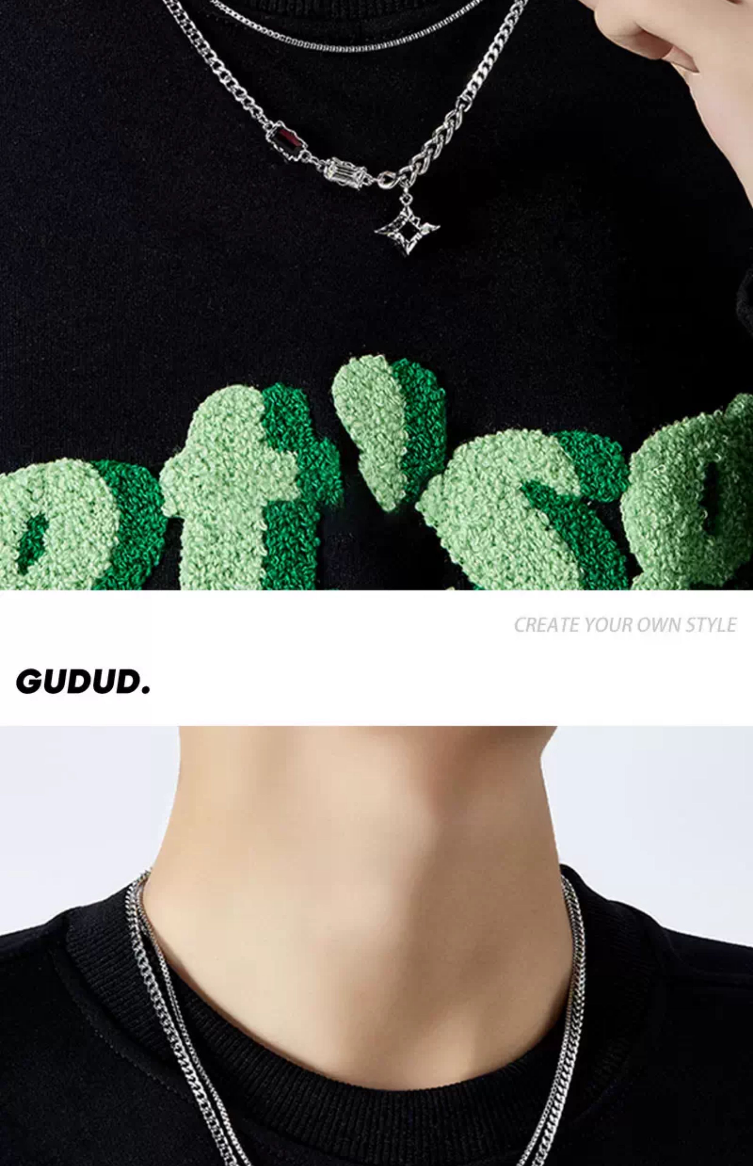Official Authentic Wang Jiaer's Same Style Double-Layer Starburst Necklace Men's Trendy High-End Stacked Versatile Pendant Sweatshirt Chain