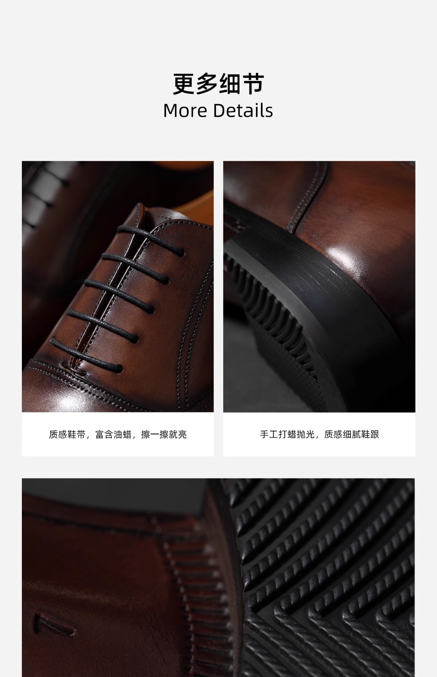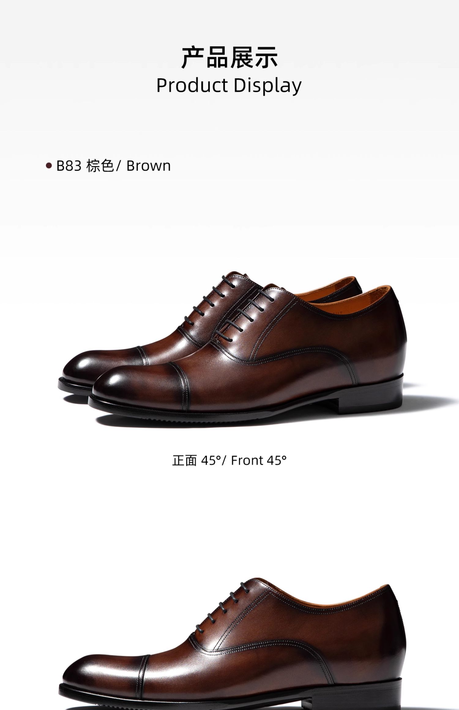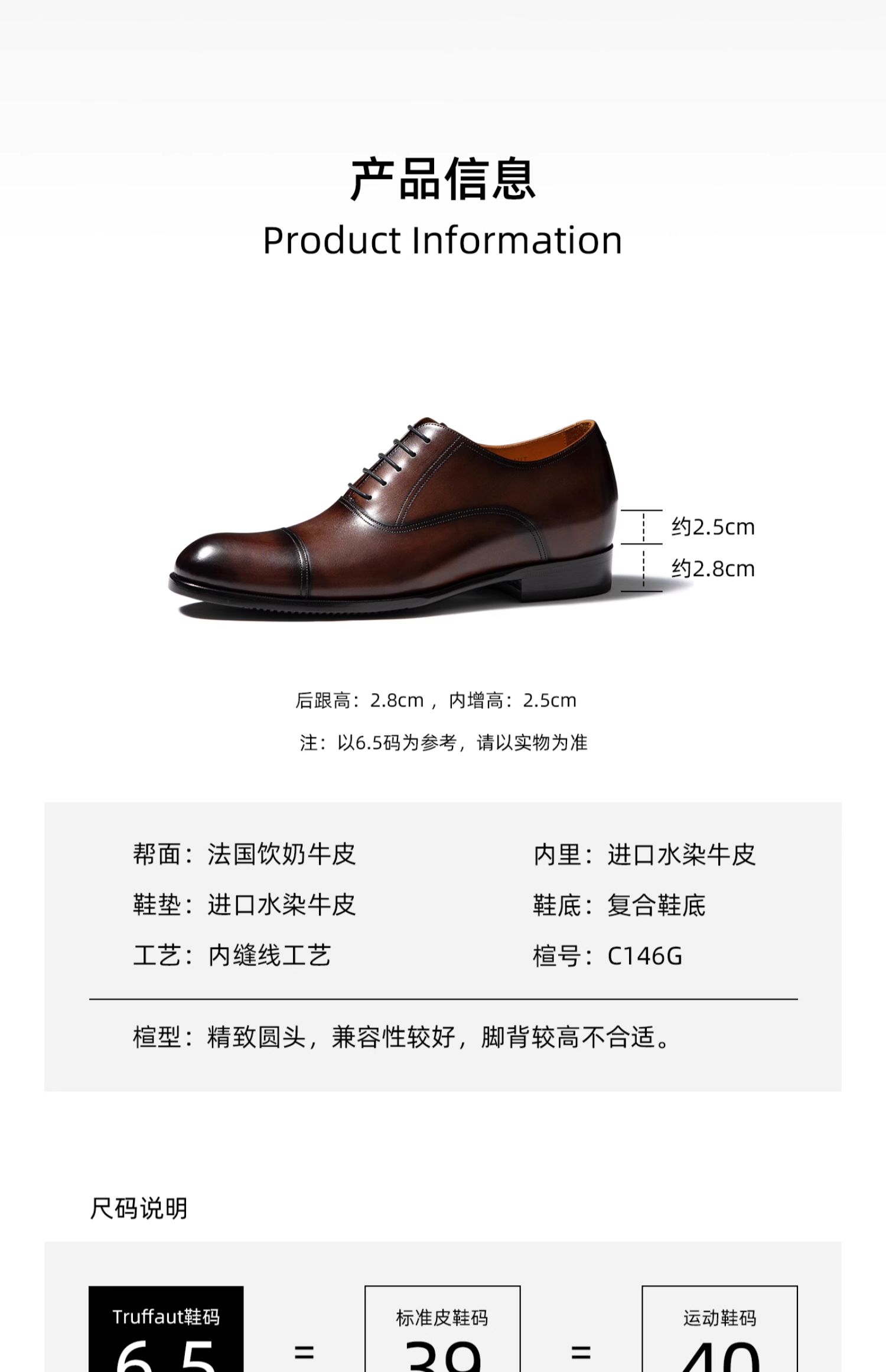 Truffaut Men's Shoes Men's Leather Shoes with Internal Height Increase Business Formal Oxford Shoes Genuine Leather Groom Wedding Shoes Winter