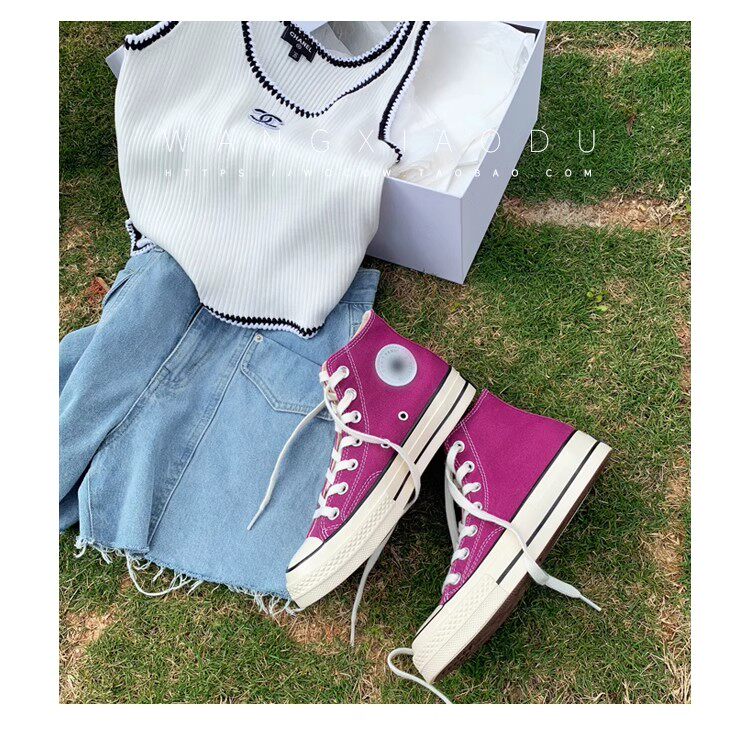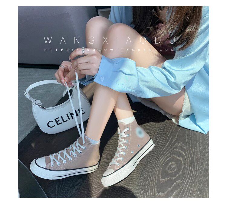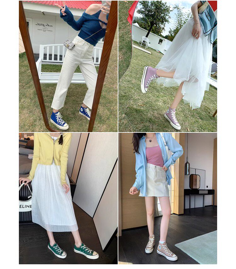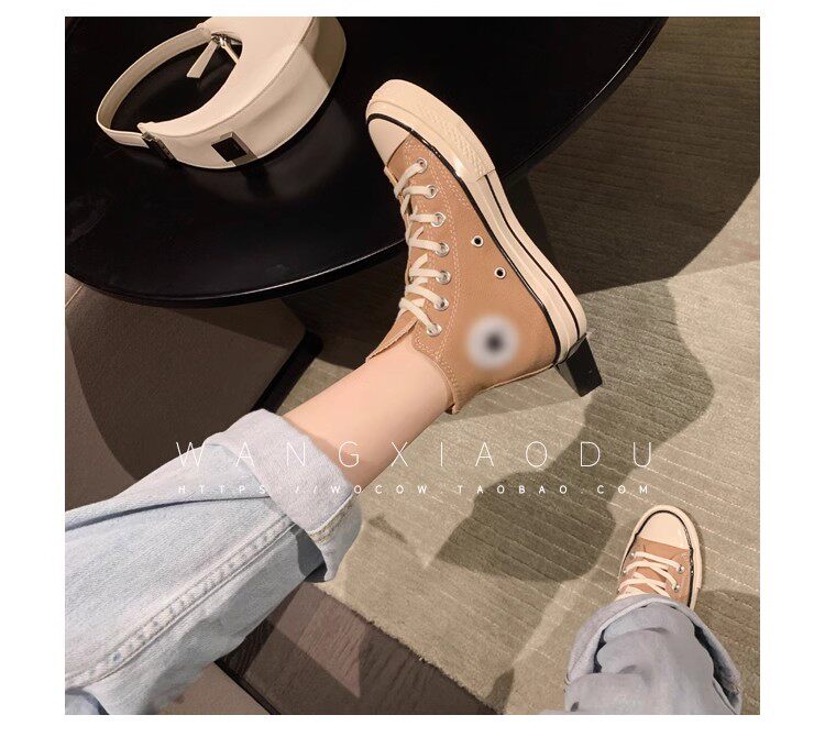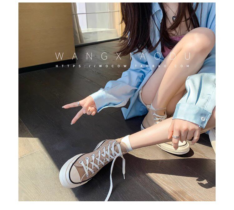 Korean Canvas Shoes for Women, New Thick-Soled Style, Height-Increasing for Petite Individuals, High-Top Sneakers for Autumn, Breathable White Shoes That Can Be Paired with Skirts