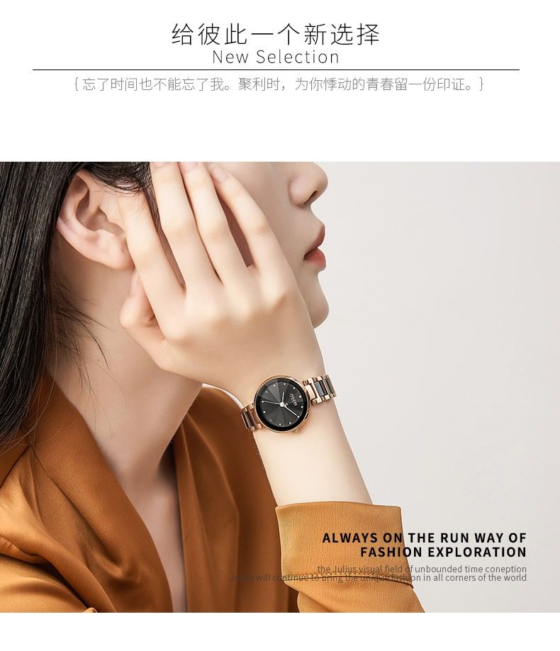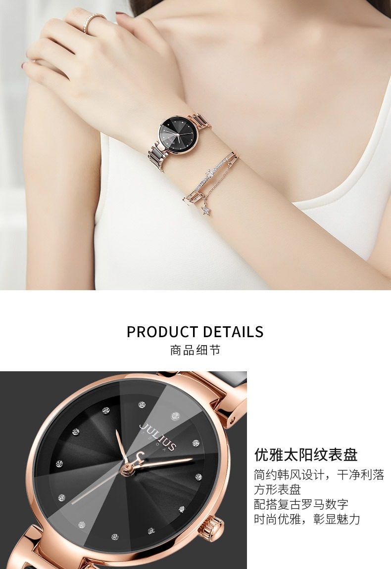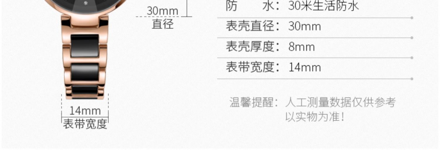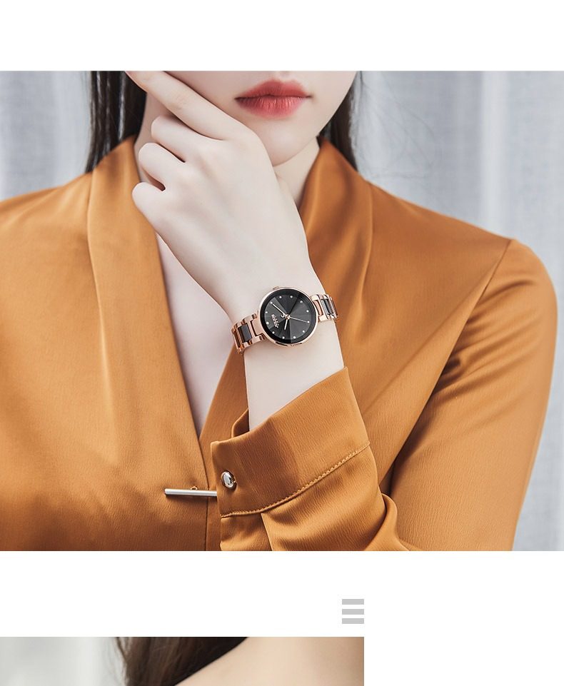 Xing Fei's Same Style Julishi Korean Version Light Luxury Large Dial High-End Ceramic Watch for Women with Diamonds, Waterproof, Commuter Quartz Watch