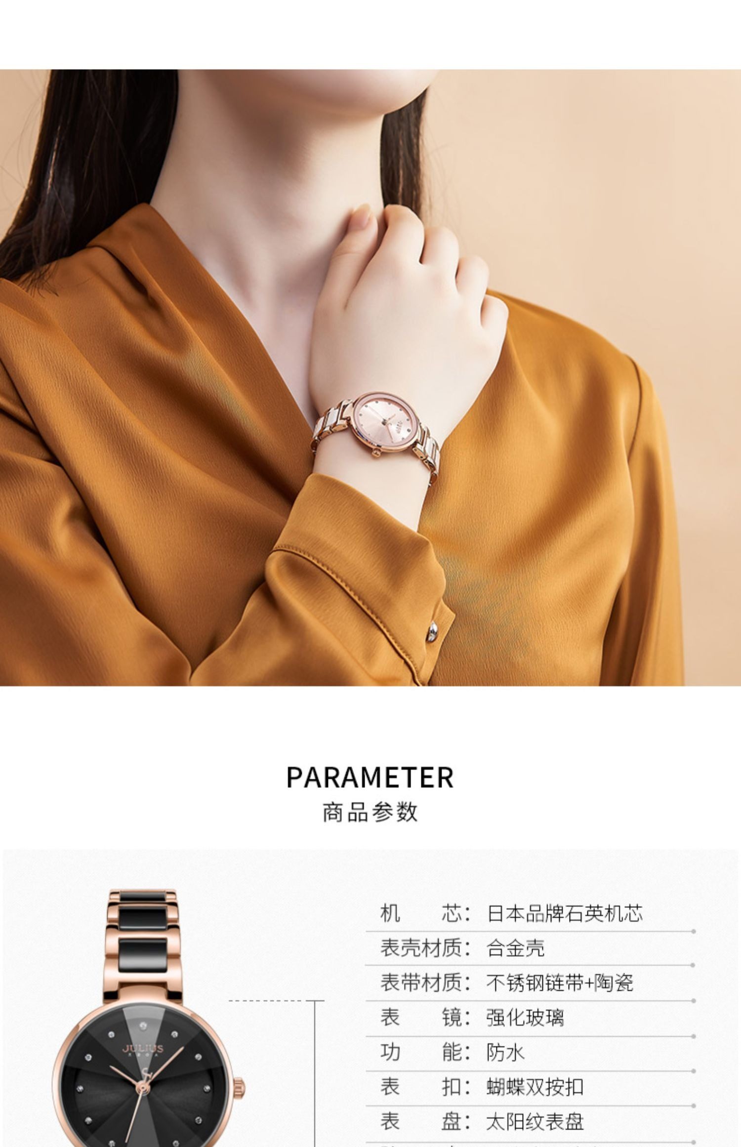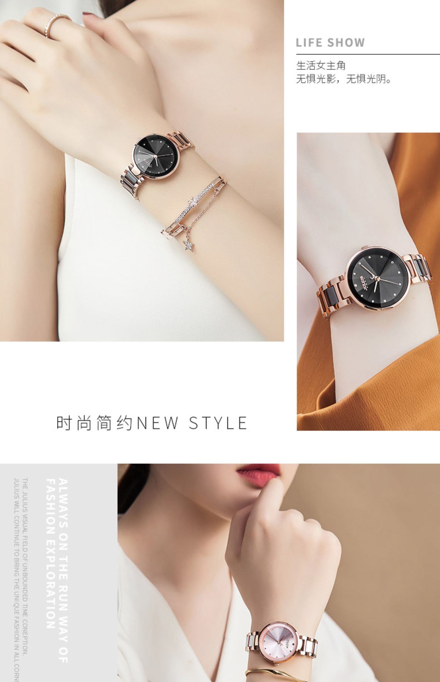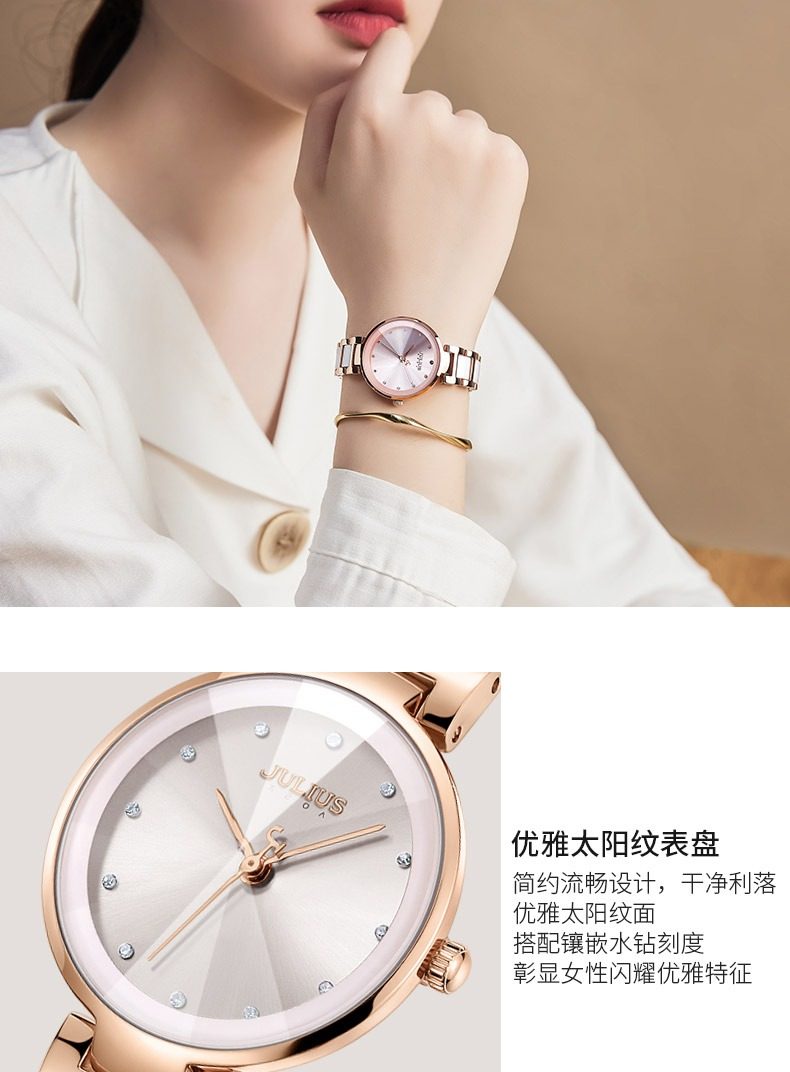 Xing Fei's Same Style Julishi Korean Version Light Luxury Large Dial High-End Ceramic Watch for Women with Diamonds, Waterproof, Commuter Quartz Watch