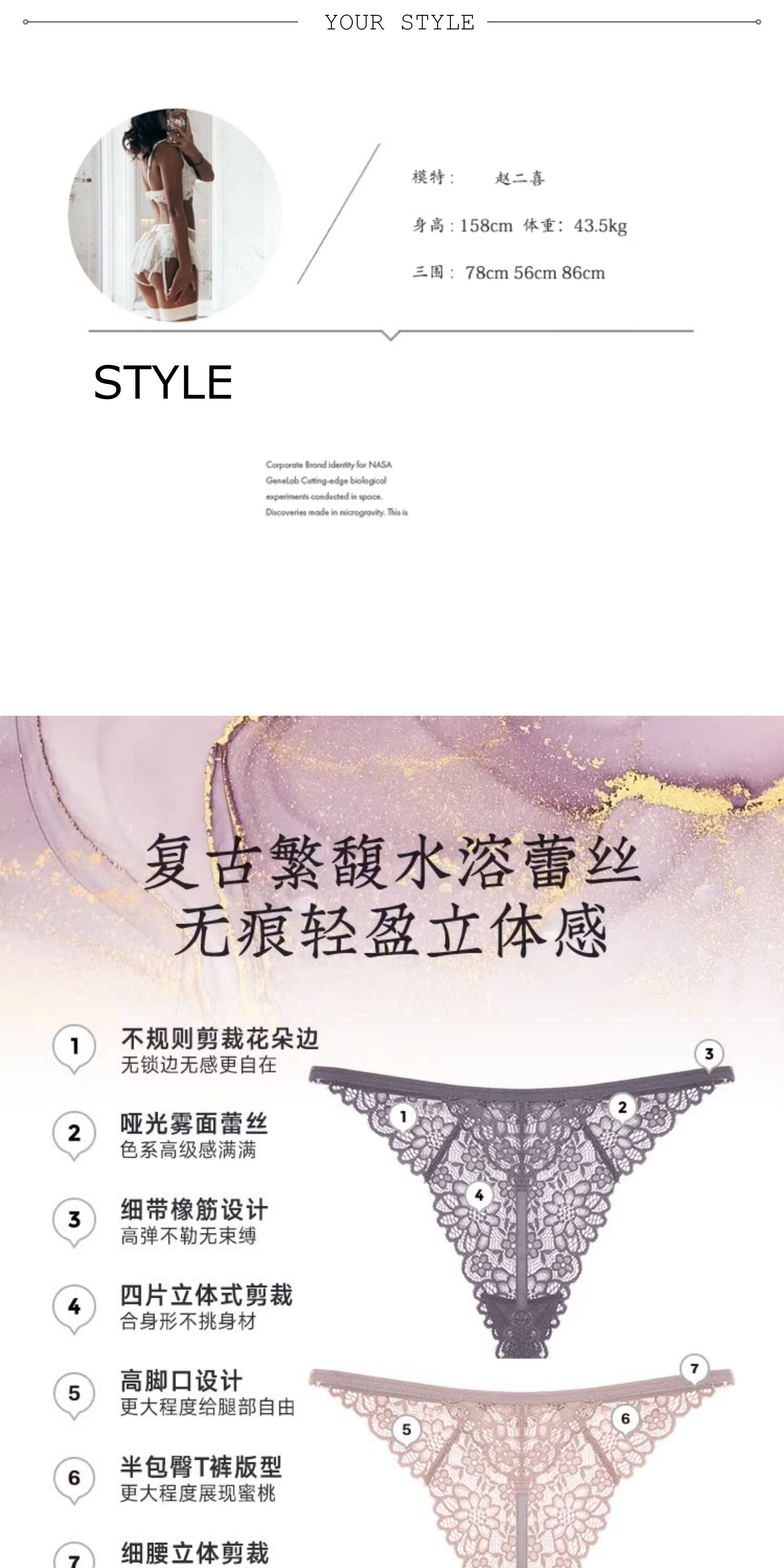 European and American Sexy Underwear for Women, Lace Low-Waist, Seamless, Breathable, Light Luxury Bikini, Hip-Lifting Thong, T-Back