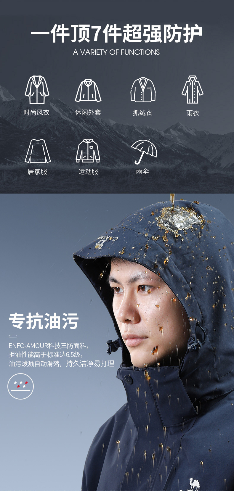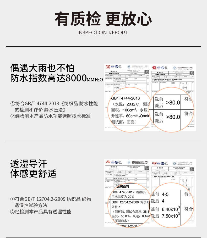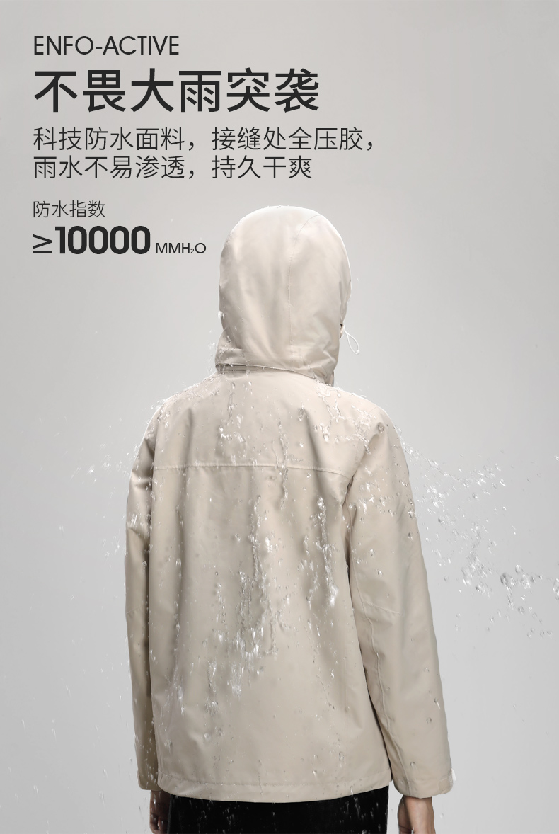 页面上所有款式防水,耐磨,透湿等数据经由第三方检测机构测试所得,仅代表面料单次测试结果。
