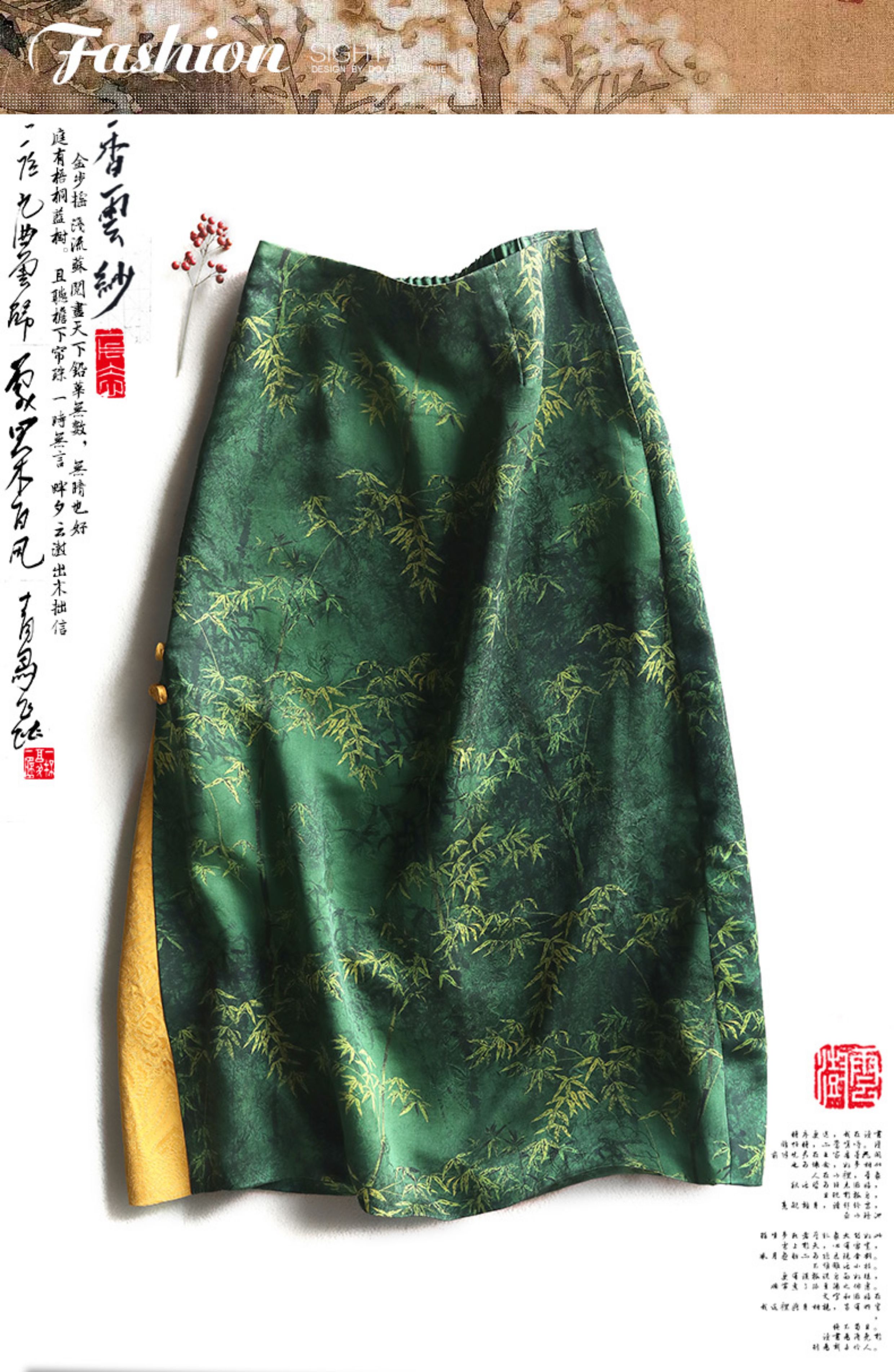 Yunshu Original Floral Fragrant Cloud Yarn New Chinese Style Improved Midi Skirt Summer National Style A-Line Commuting Pencil Skirt