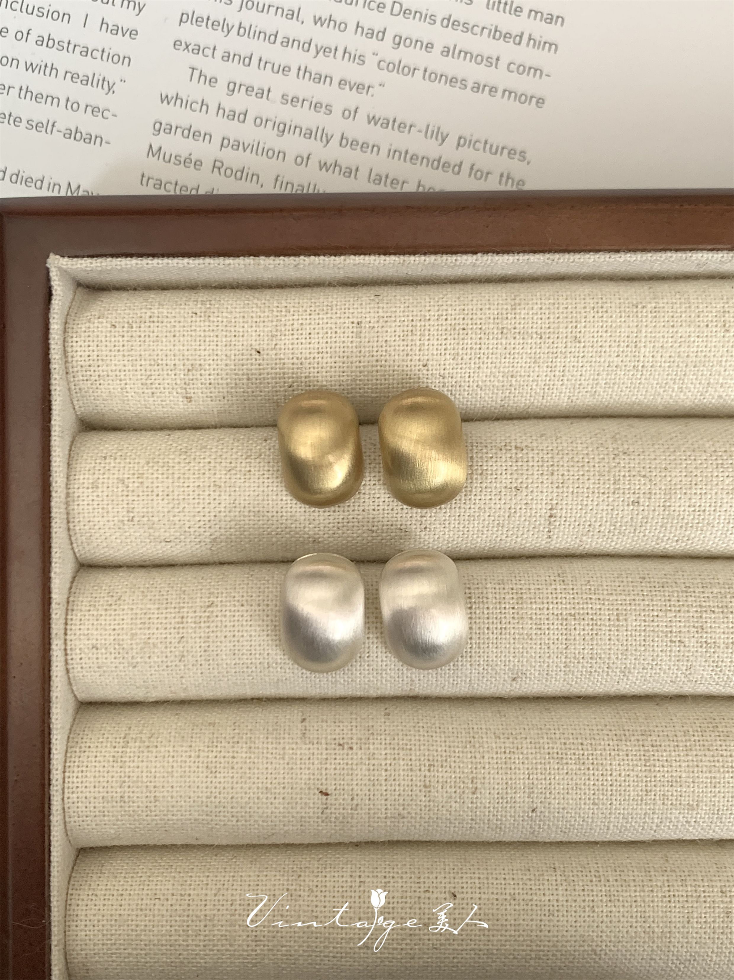 「France Chic」 French Normcore Versatile High-End Brushed Frosted Matte Metal Earrings/Ear Clips for Women