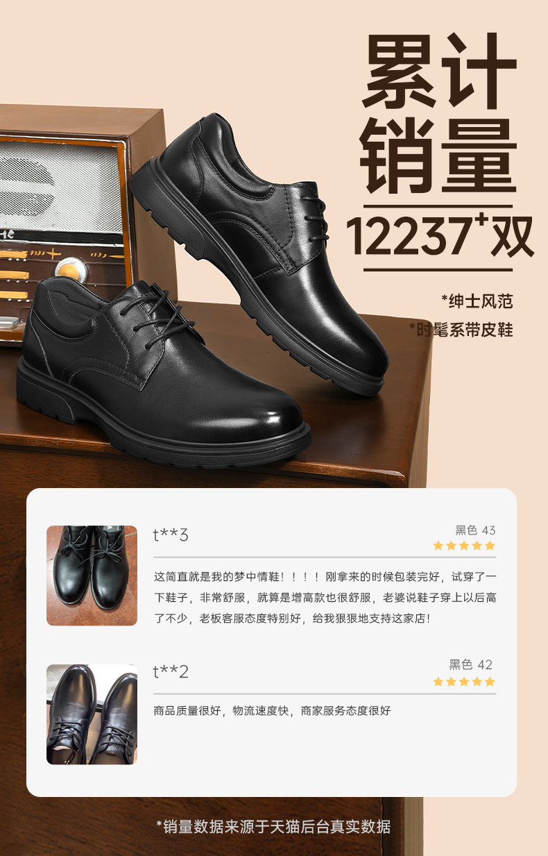 HLA/Hai Lan Home Men's Shoes Wedding Dress Shoes Breathable Business Leather Autumn Middle-aged Shoes Groom Shoes Heightened