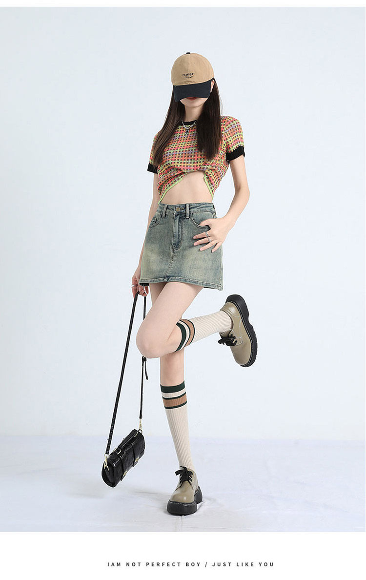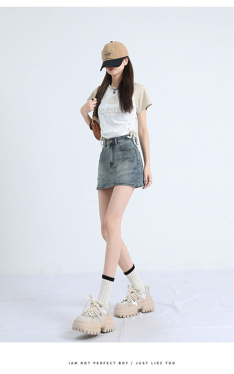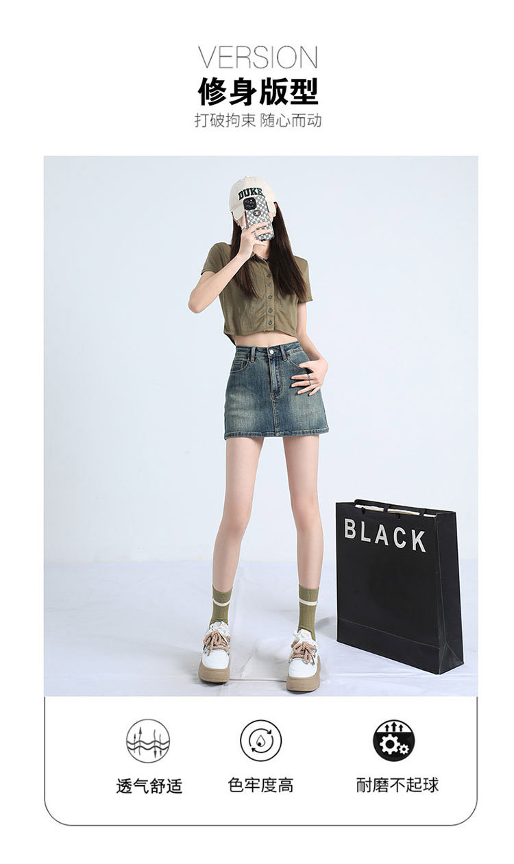 American Style New High-Waisted Elastic Slimming Retro Denim Skirt A-Line Skirt for Women Anti-Exposure Outerwear Hip-Hugging Denim Short Skirt