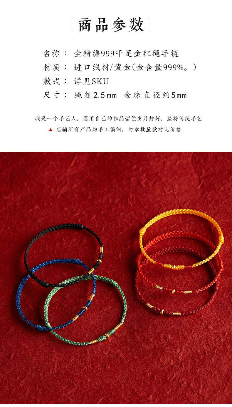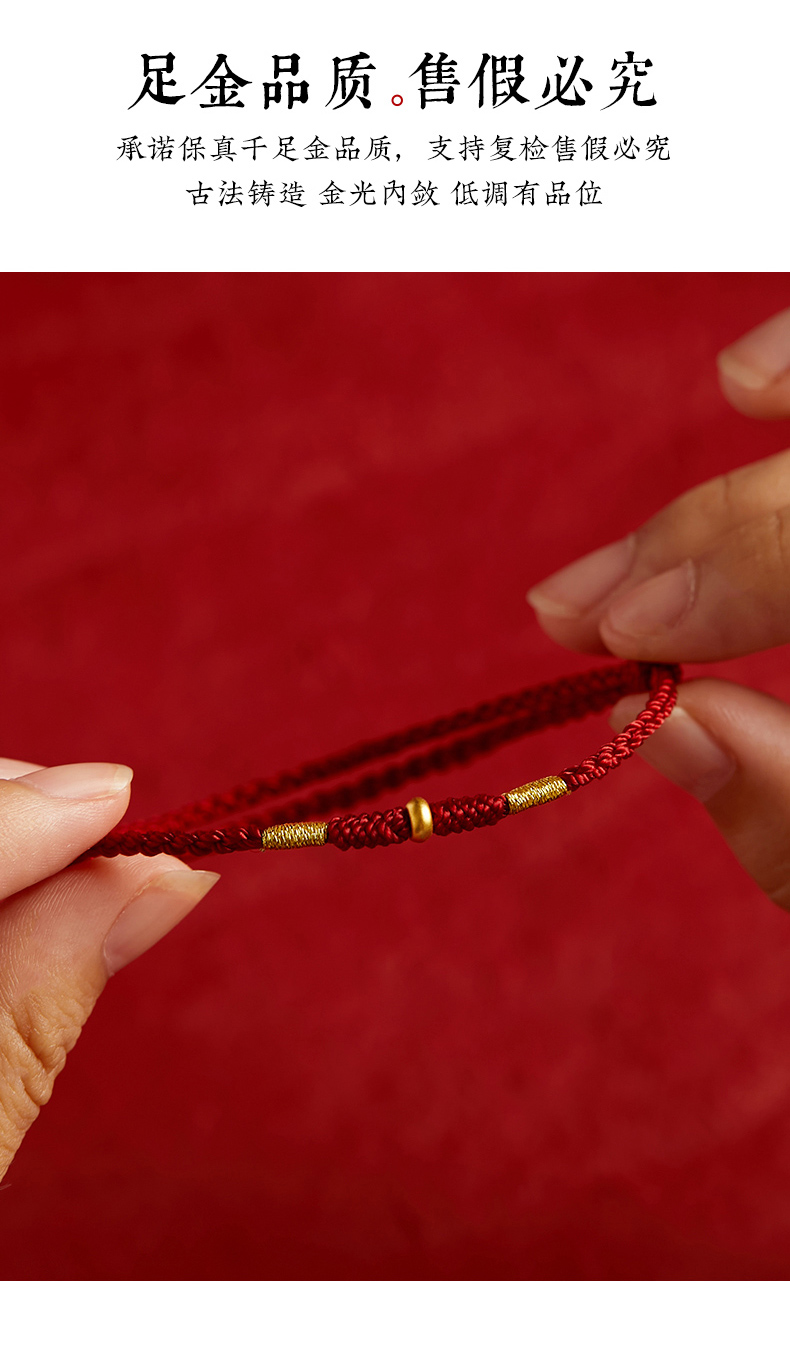 Putuo Mountain Zodiac Year Red String Bracelet 999 Pure Gold Red Tai Sui Bracelet Anklet Woven Red String