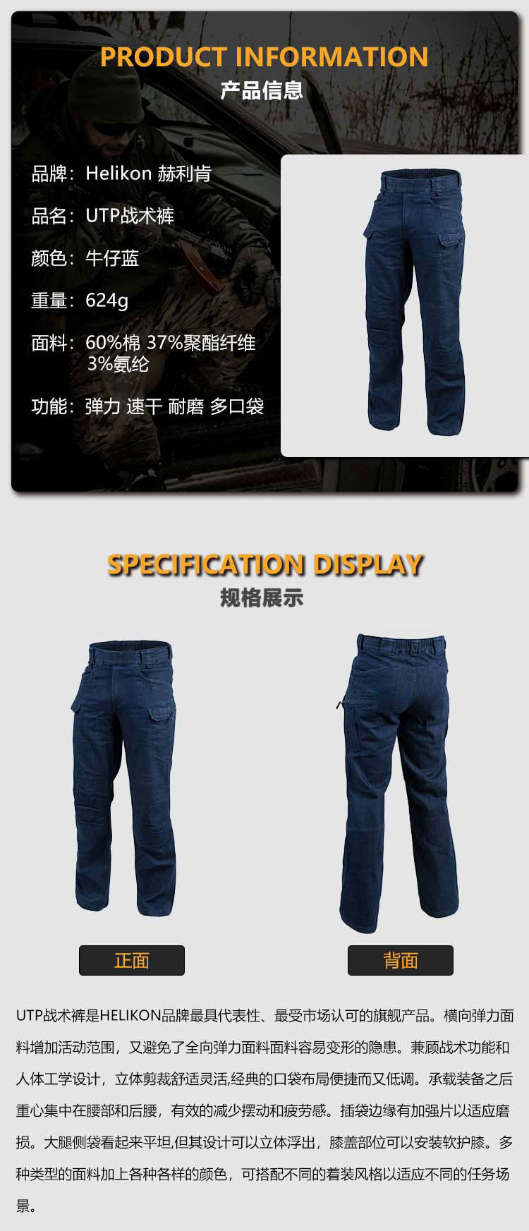 Helikon Utl Tactical Pants Men's Outdoor Utp Jeans Workwear Thin Stretch Pants with Belt Included