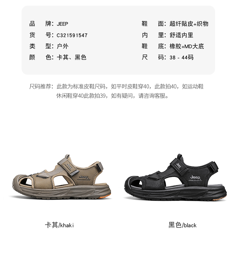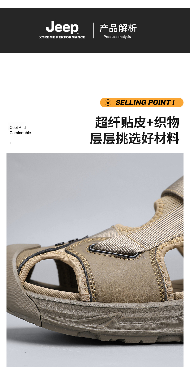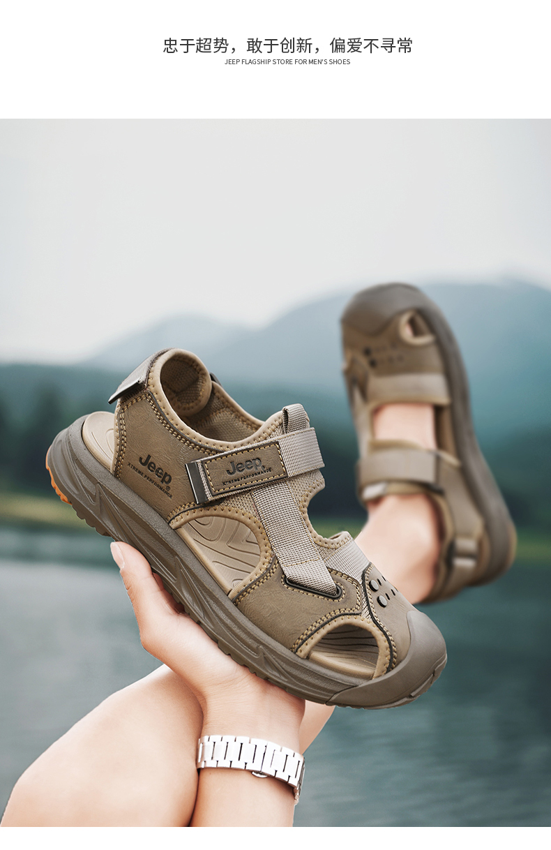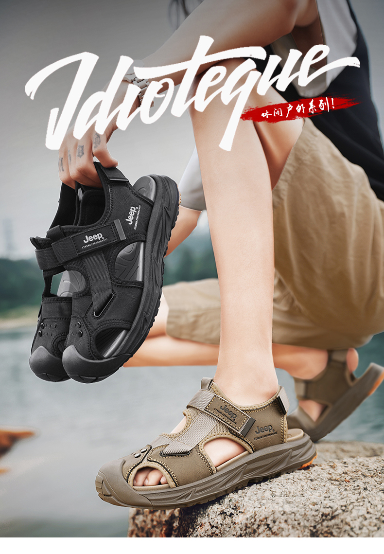 Jeep Men's Closed-Toe Sandals for Summer, Outdoor Sports, Non-Slip Soft Sole, Driving, Summer Beach Shoes for Men