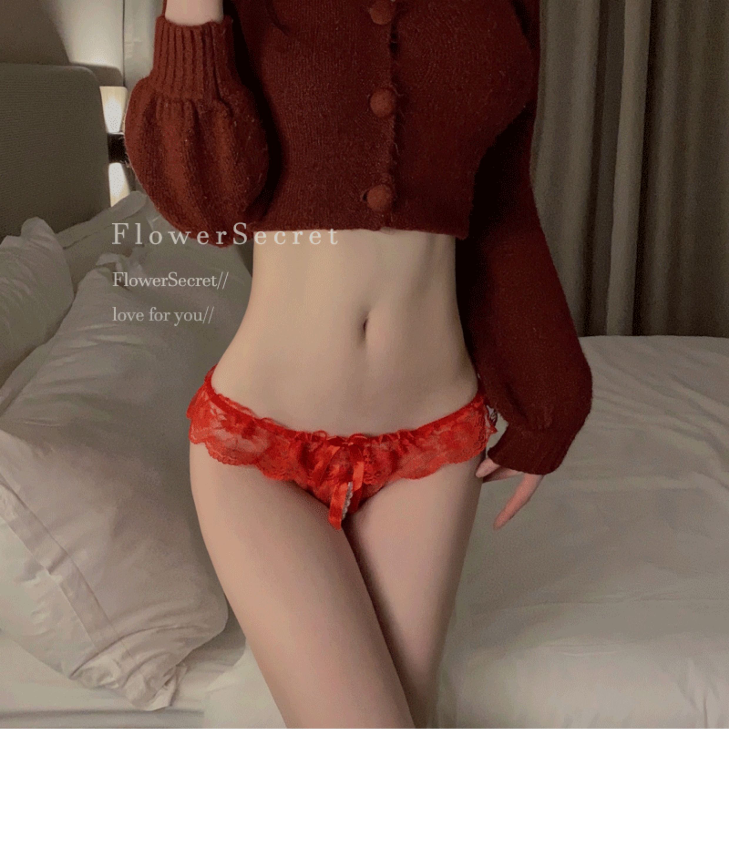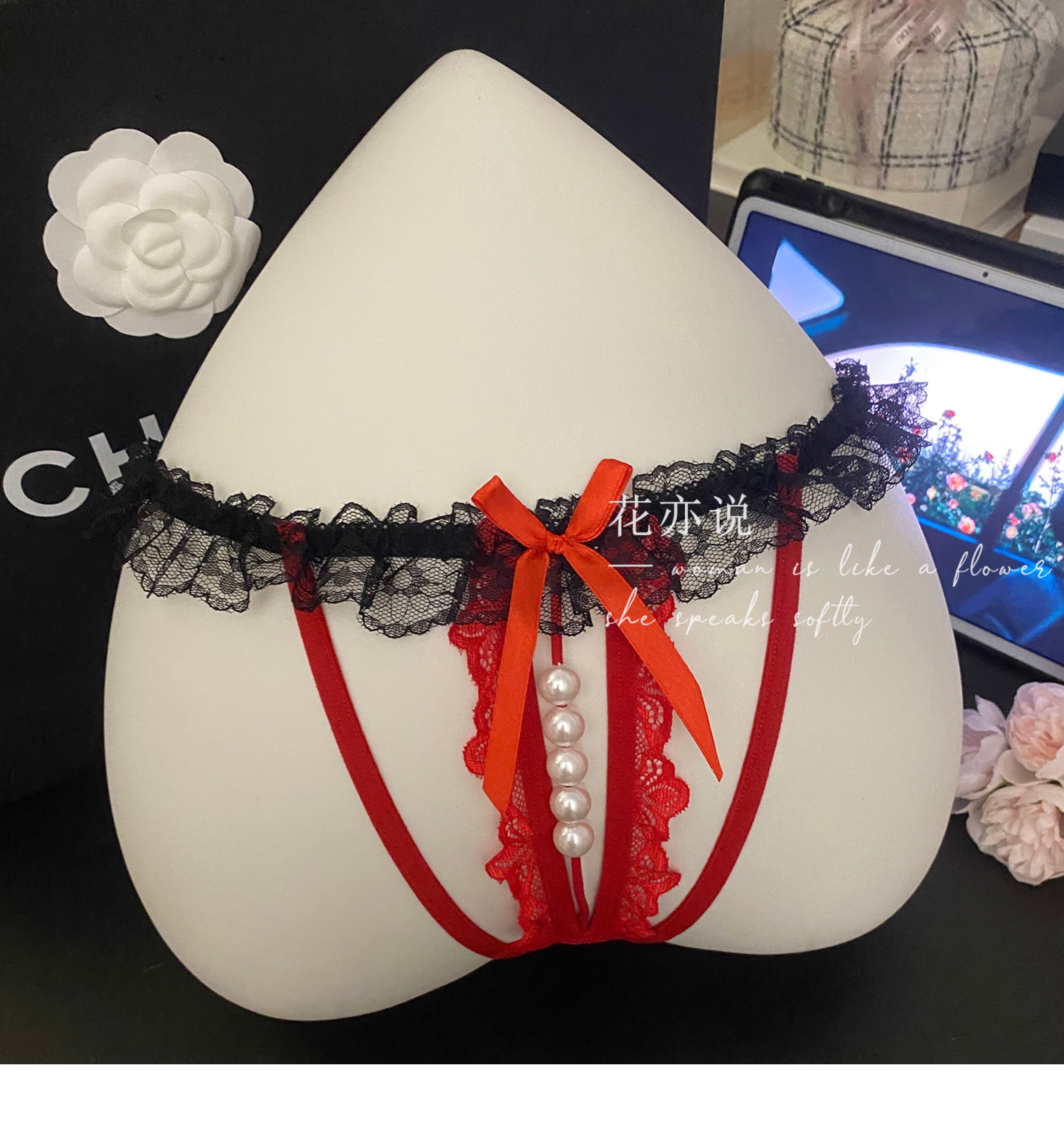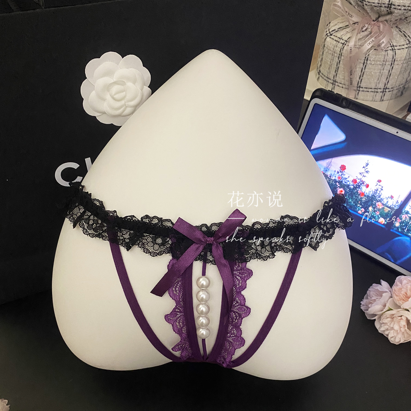 [Floral Plus Size] Pearl Plus Size Sexy Lace Elastic Open Crotch Thong Women's Underwear Thin