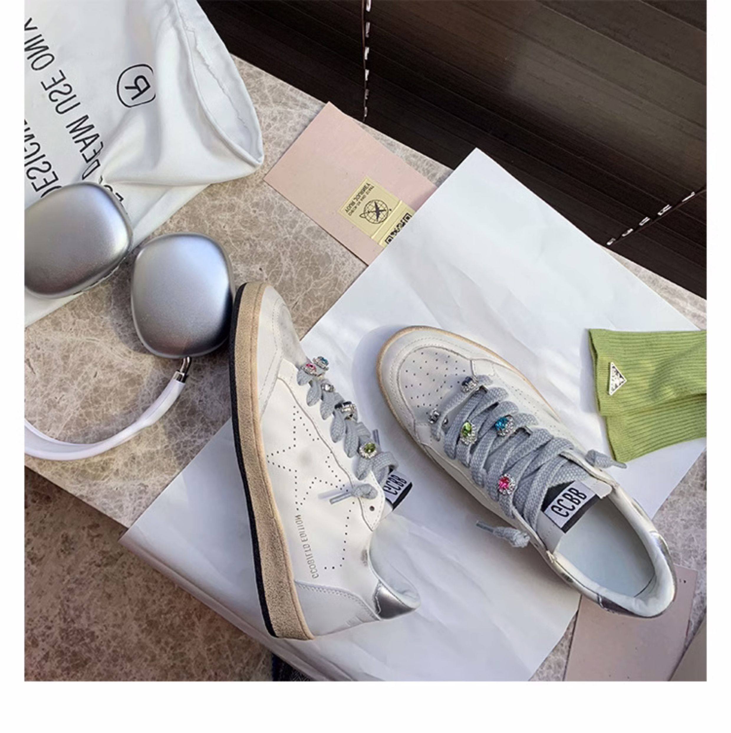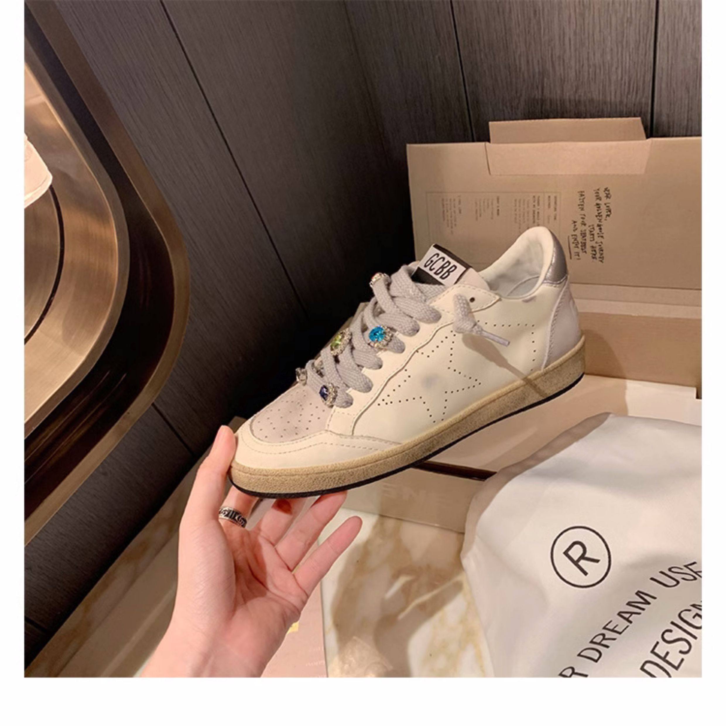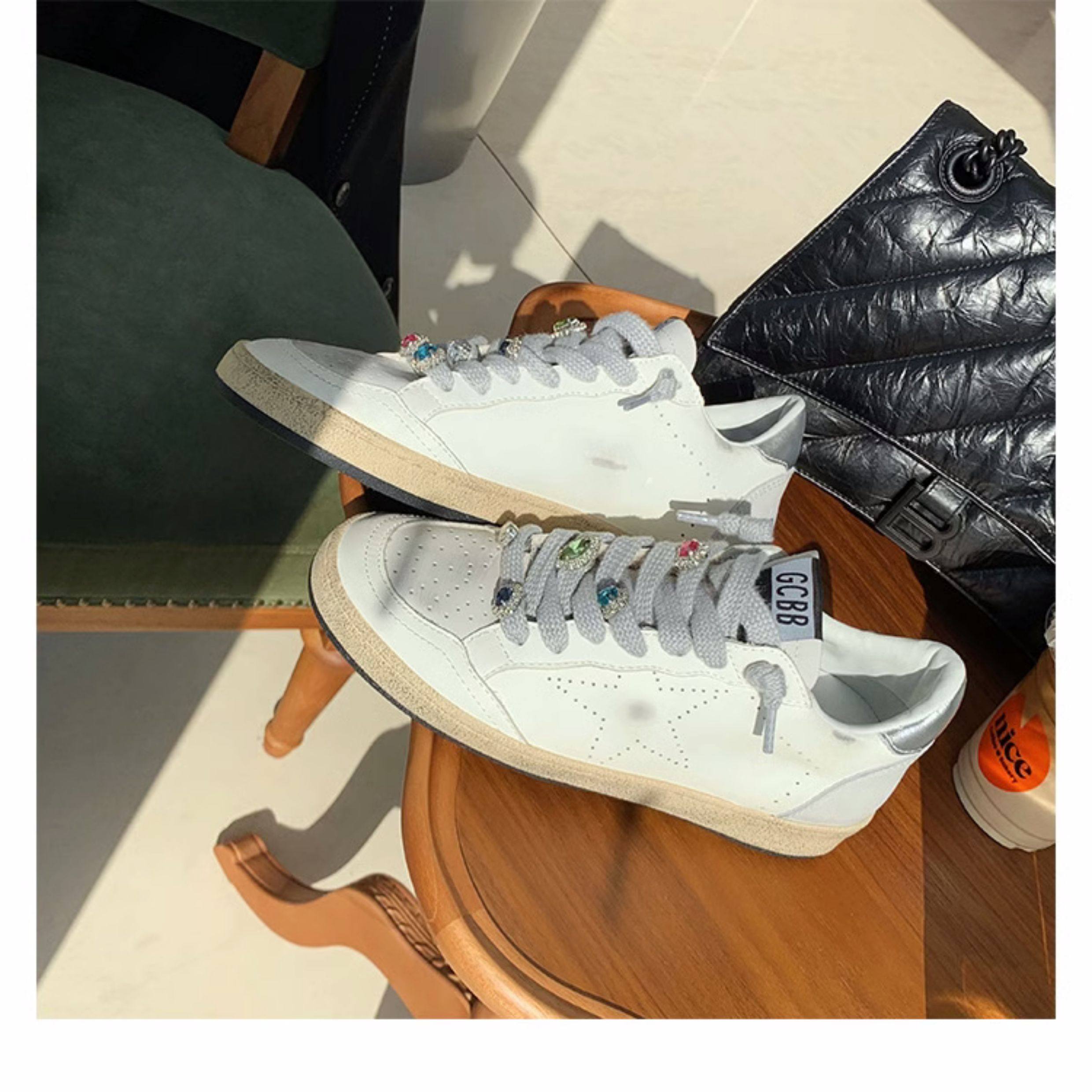 Hong Kong Casual White Sneakers, Spring Genuine Leather Korean Style Color-Blocking Retro Distressed Versatile 2025 Star Dirty Shoes