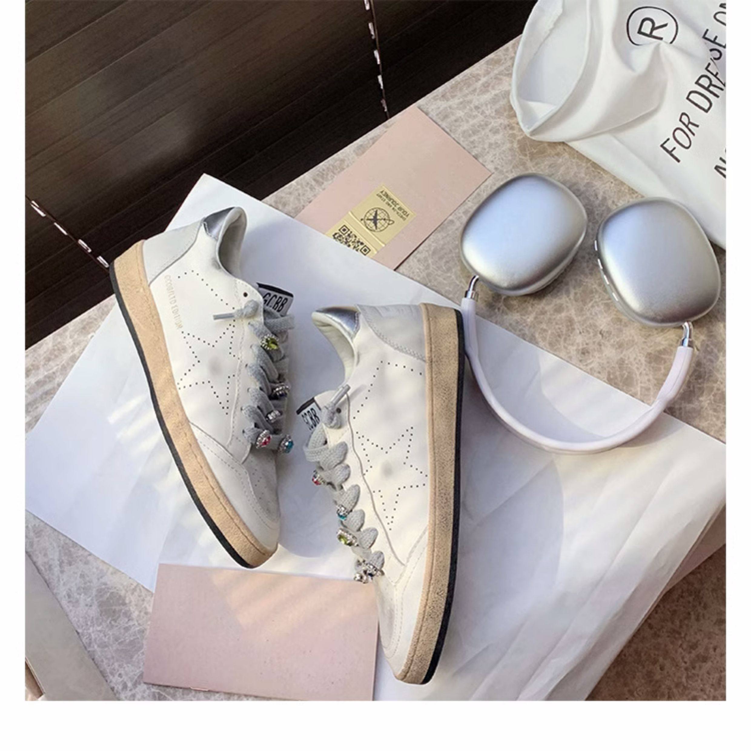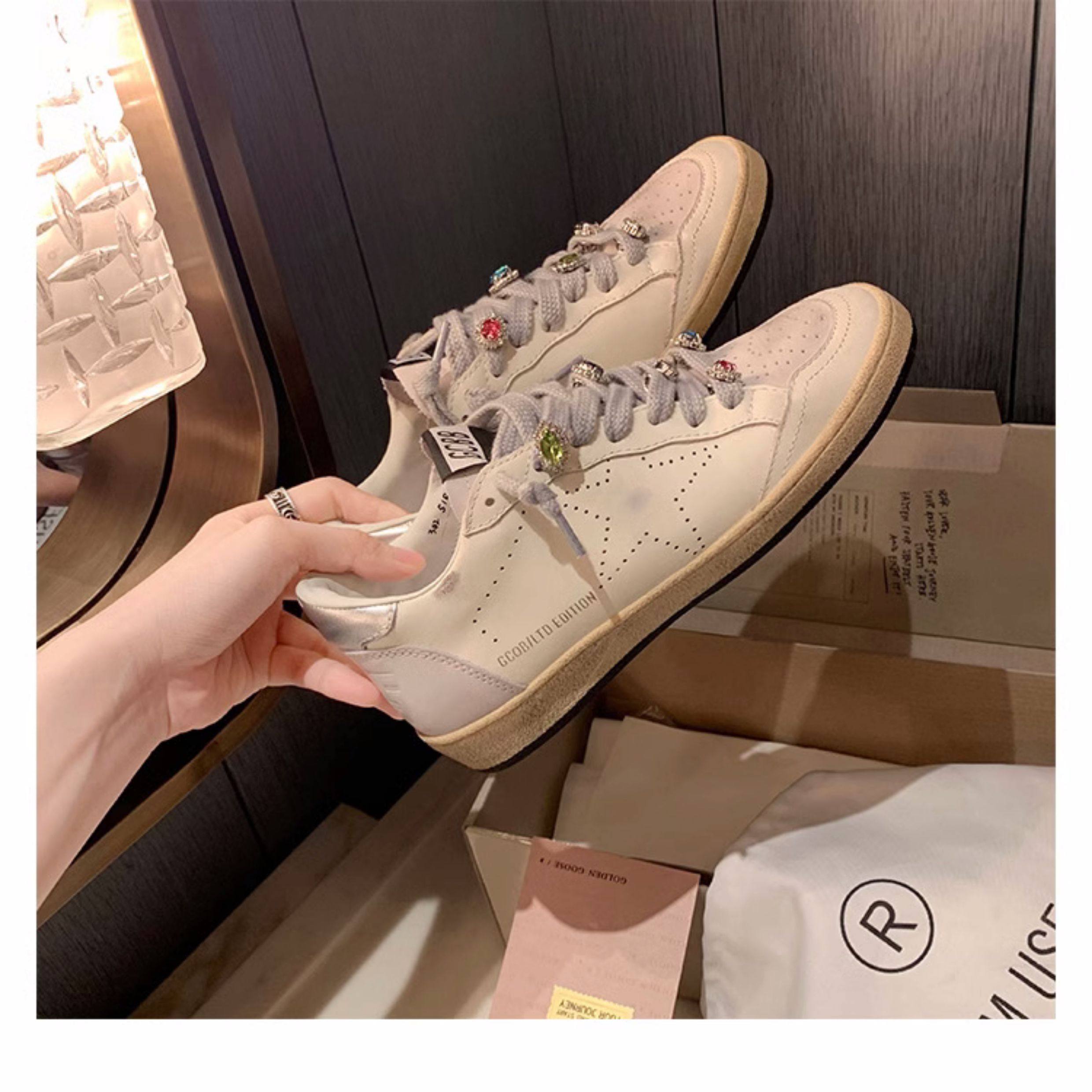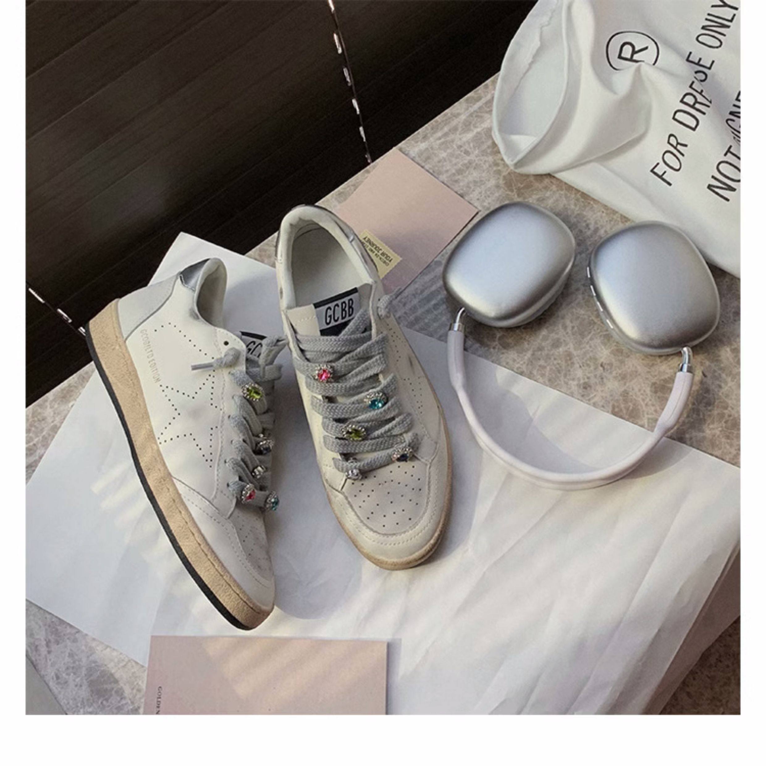 Hong Kong Casual White Sneakers, Spring Genuine Leather Korean Style Color-Blocking Retro Distressed Versatile 2025 Star Dirty Shoes