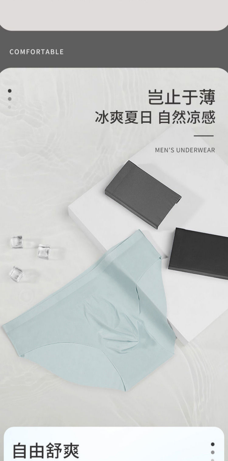 Aoelement Men's Ice Silk Solid Color Seamless Mid-Waist Briefs Summer Breathable Quick-Drying Ultra-Thin Sexy Shorts