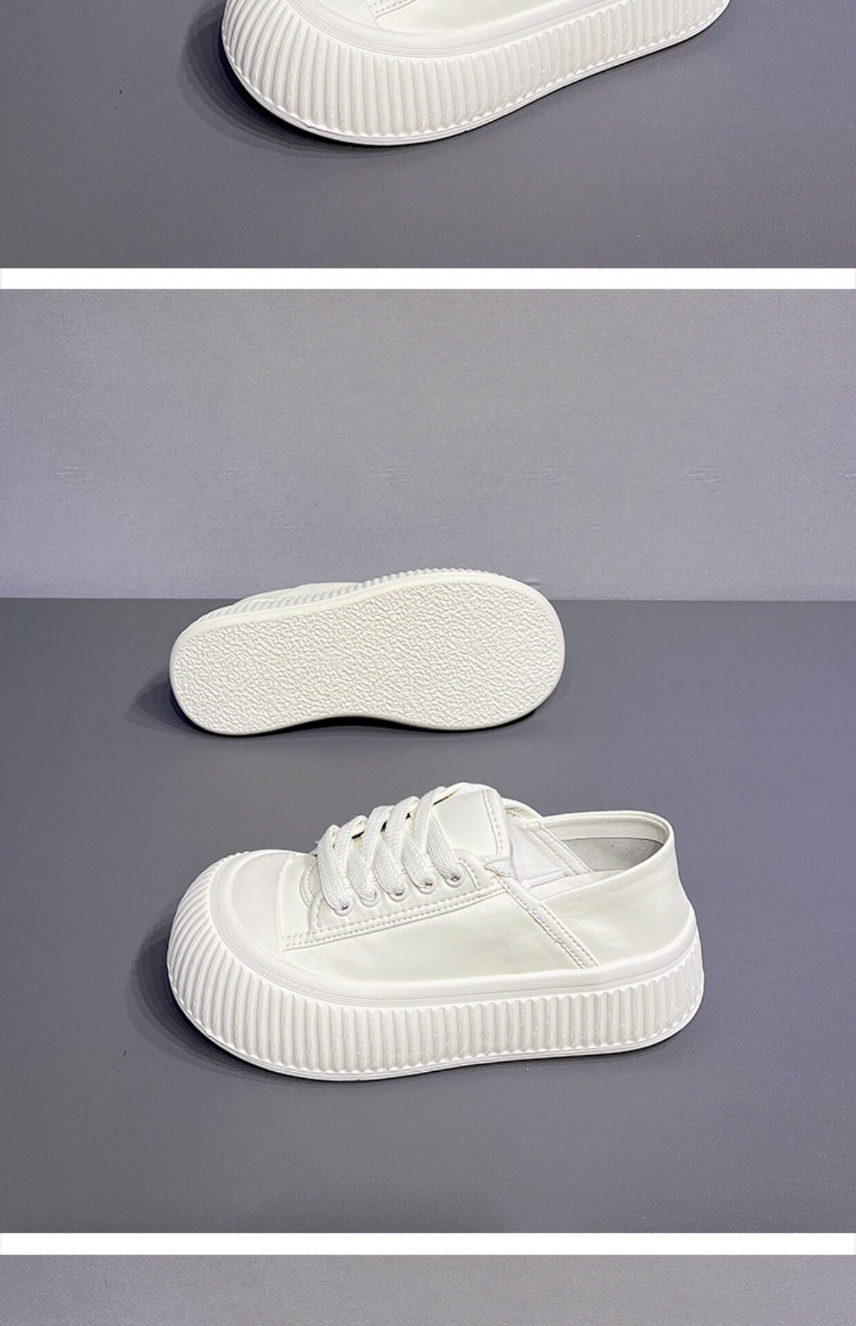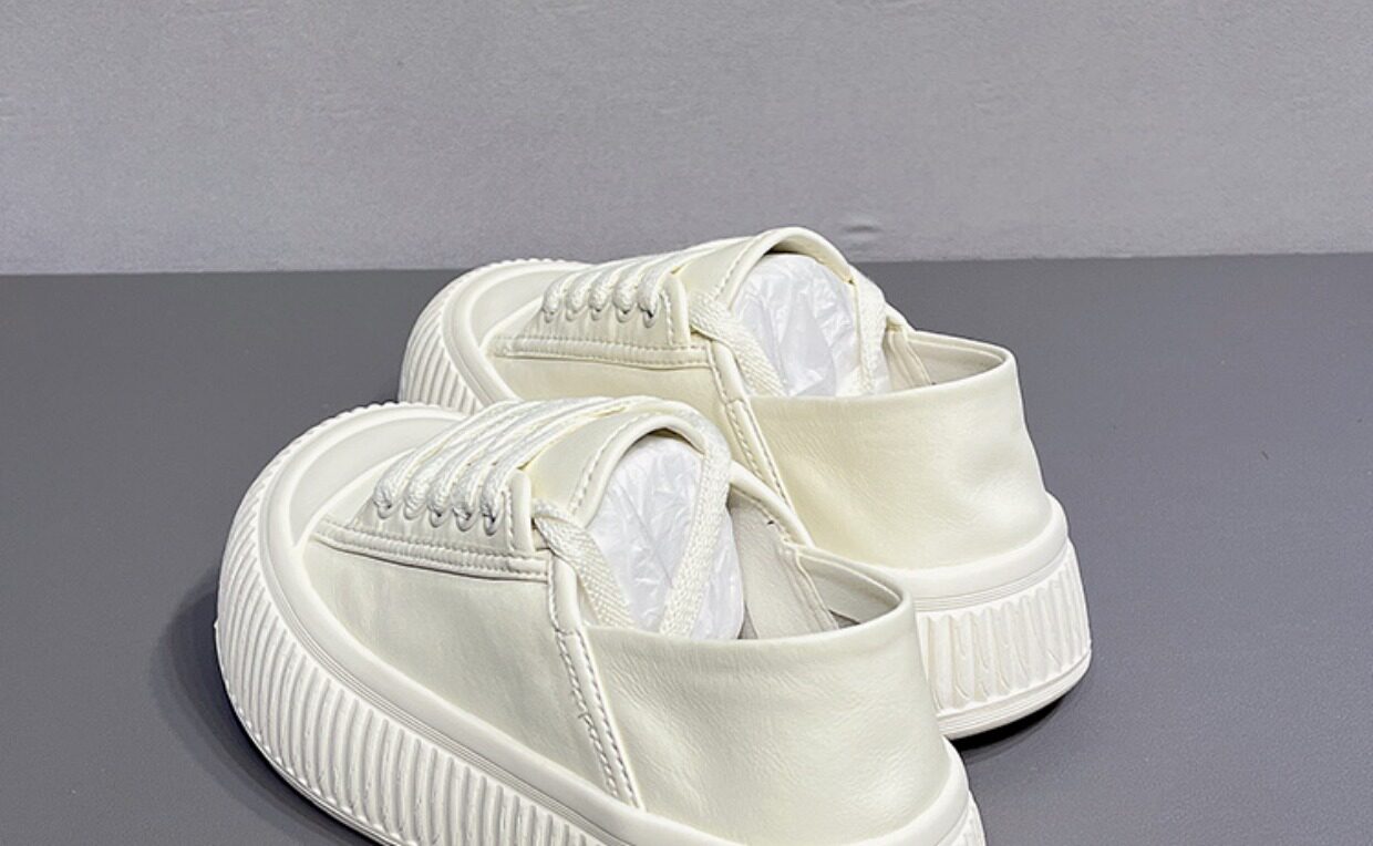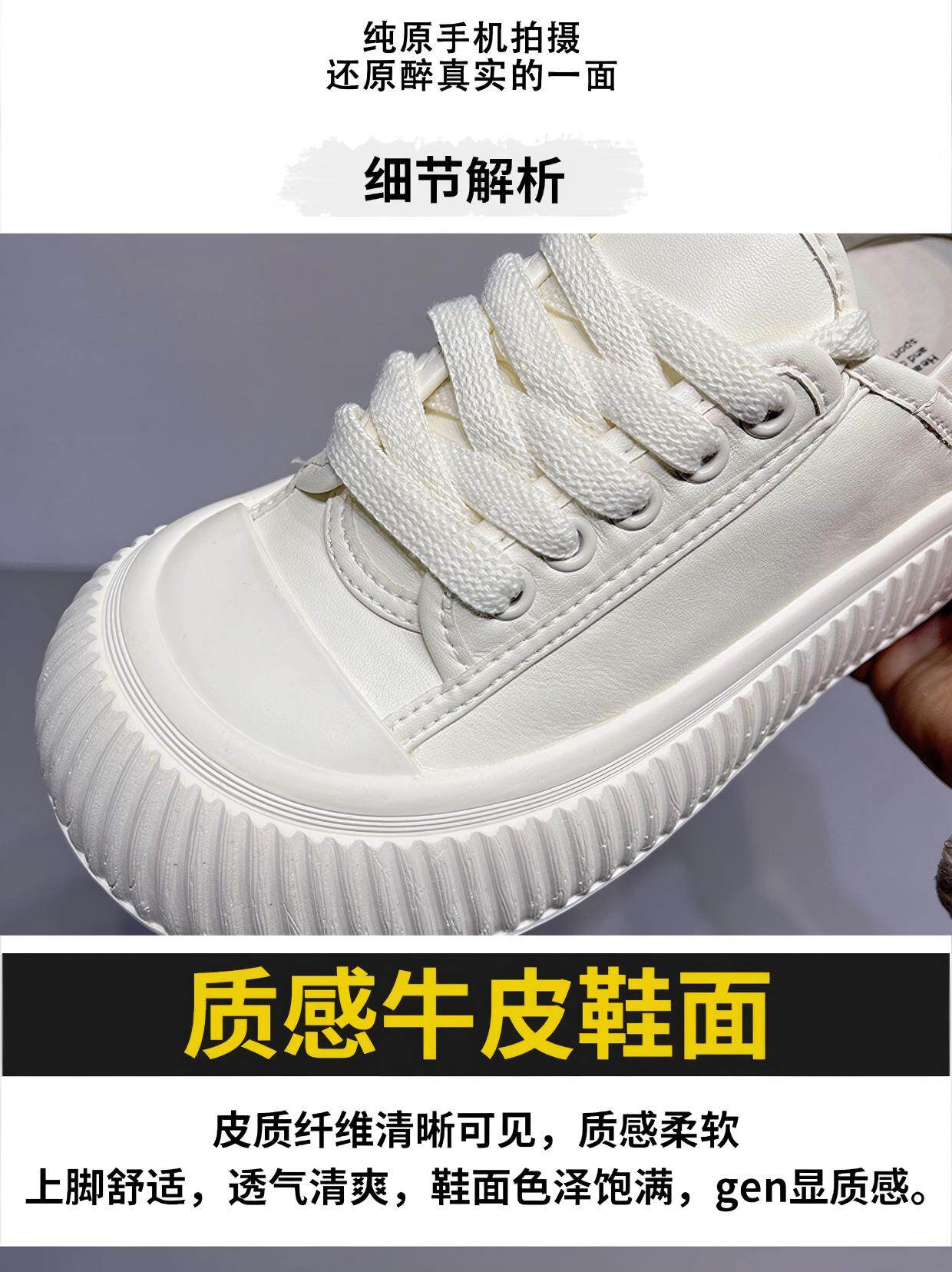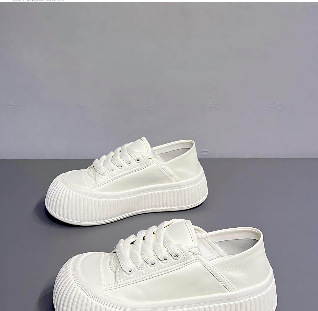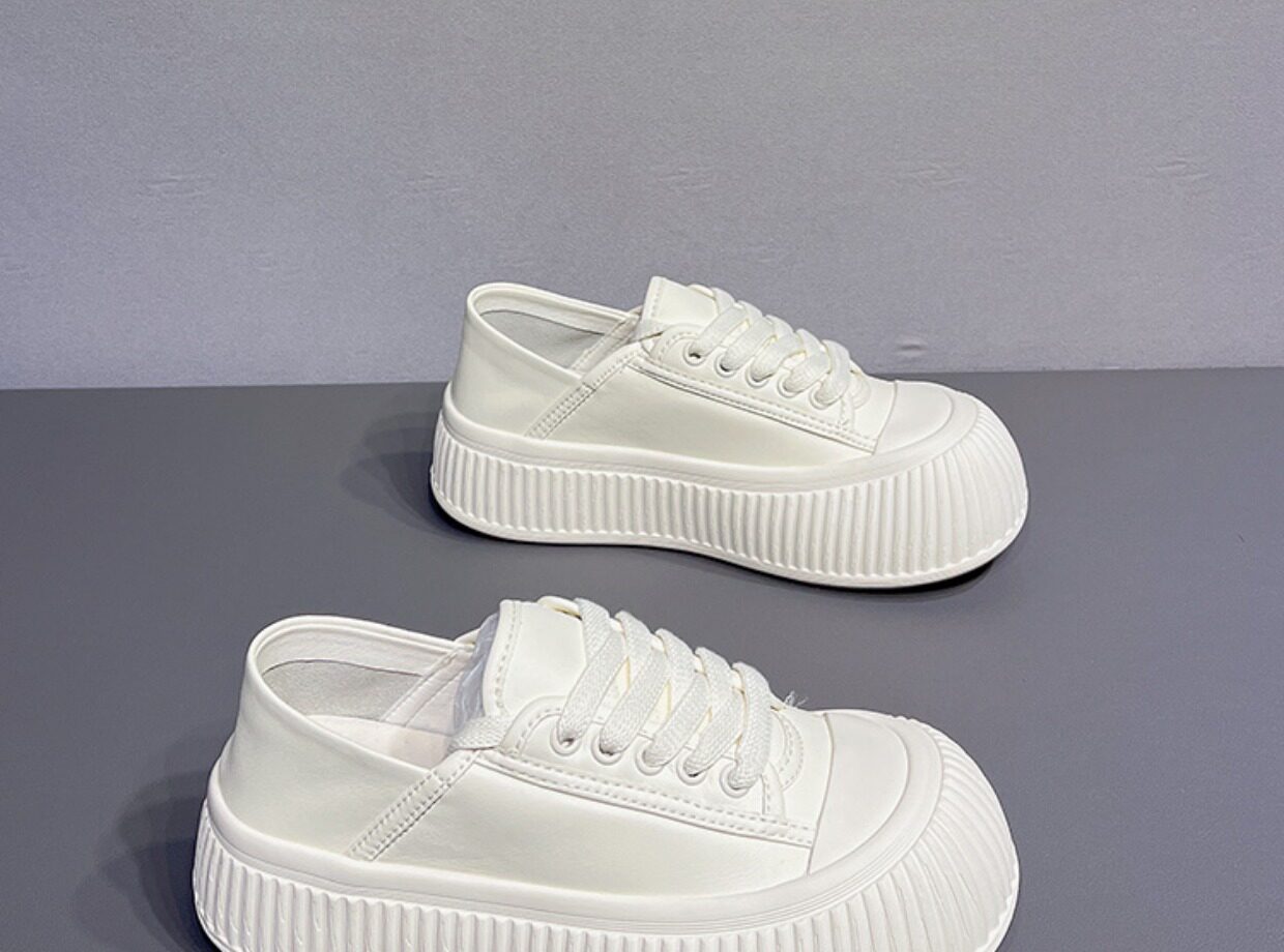 Hong Kong Thick-Soled Height-Increasing Cute and Quirky Round-Toe White Sneakers for Women, 2026 Spring and Autumn New Style, Lace-Up Genuine Leather Versatile Casual Sneakers