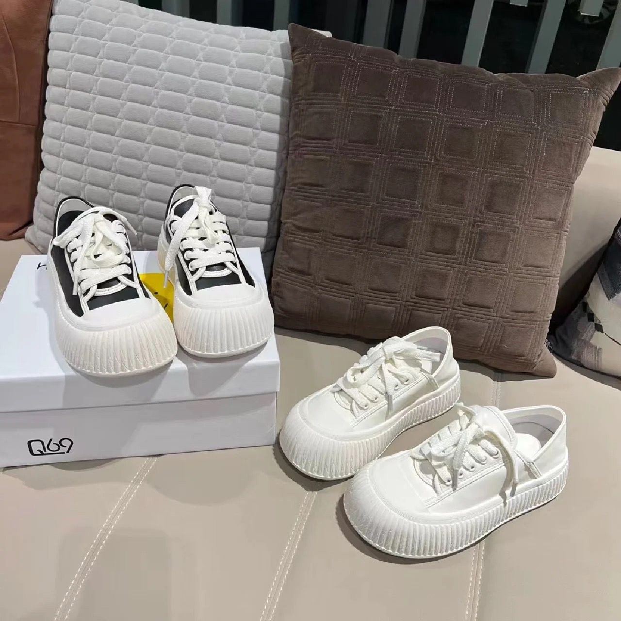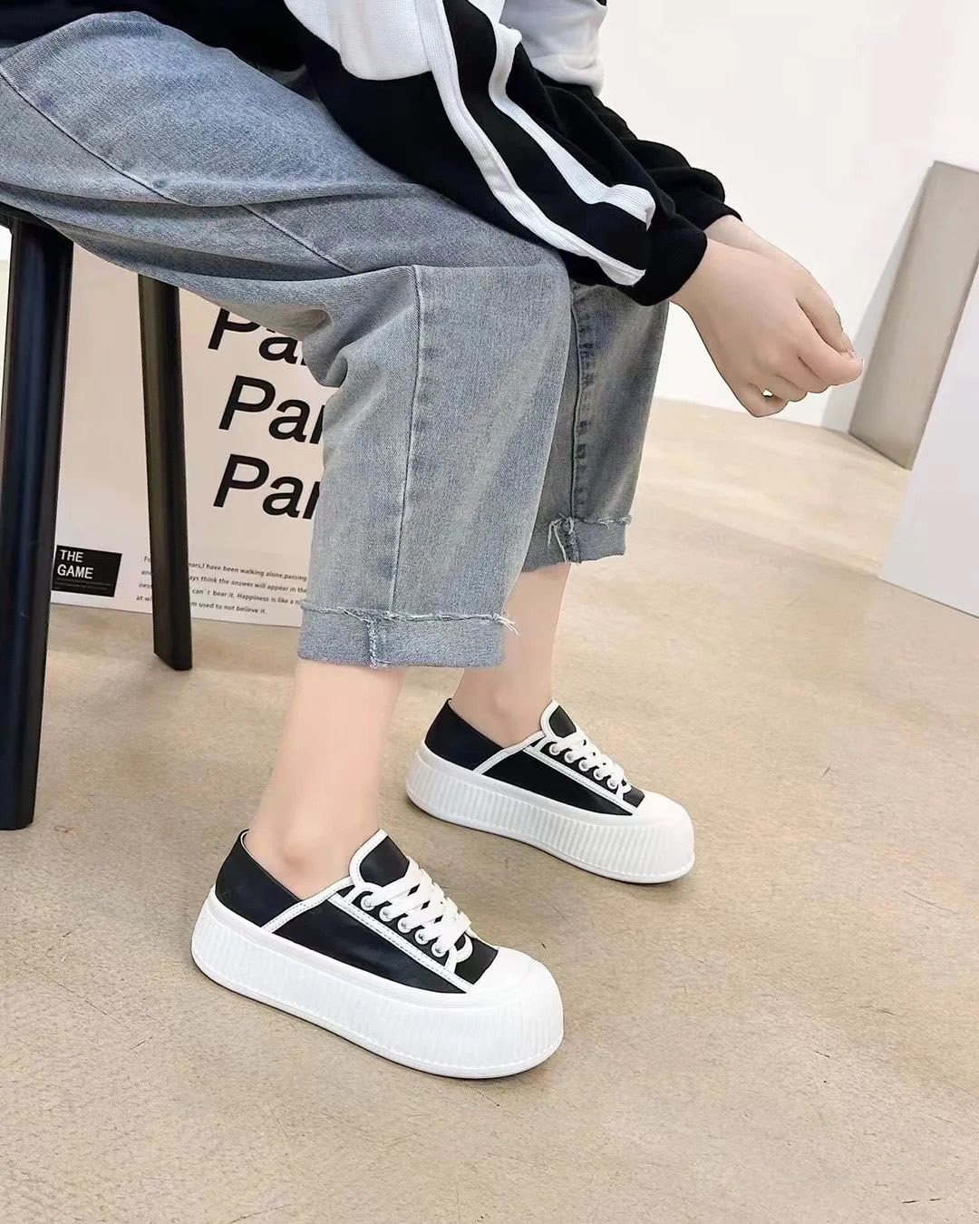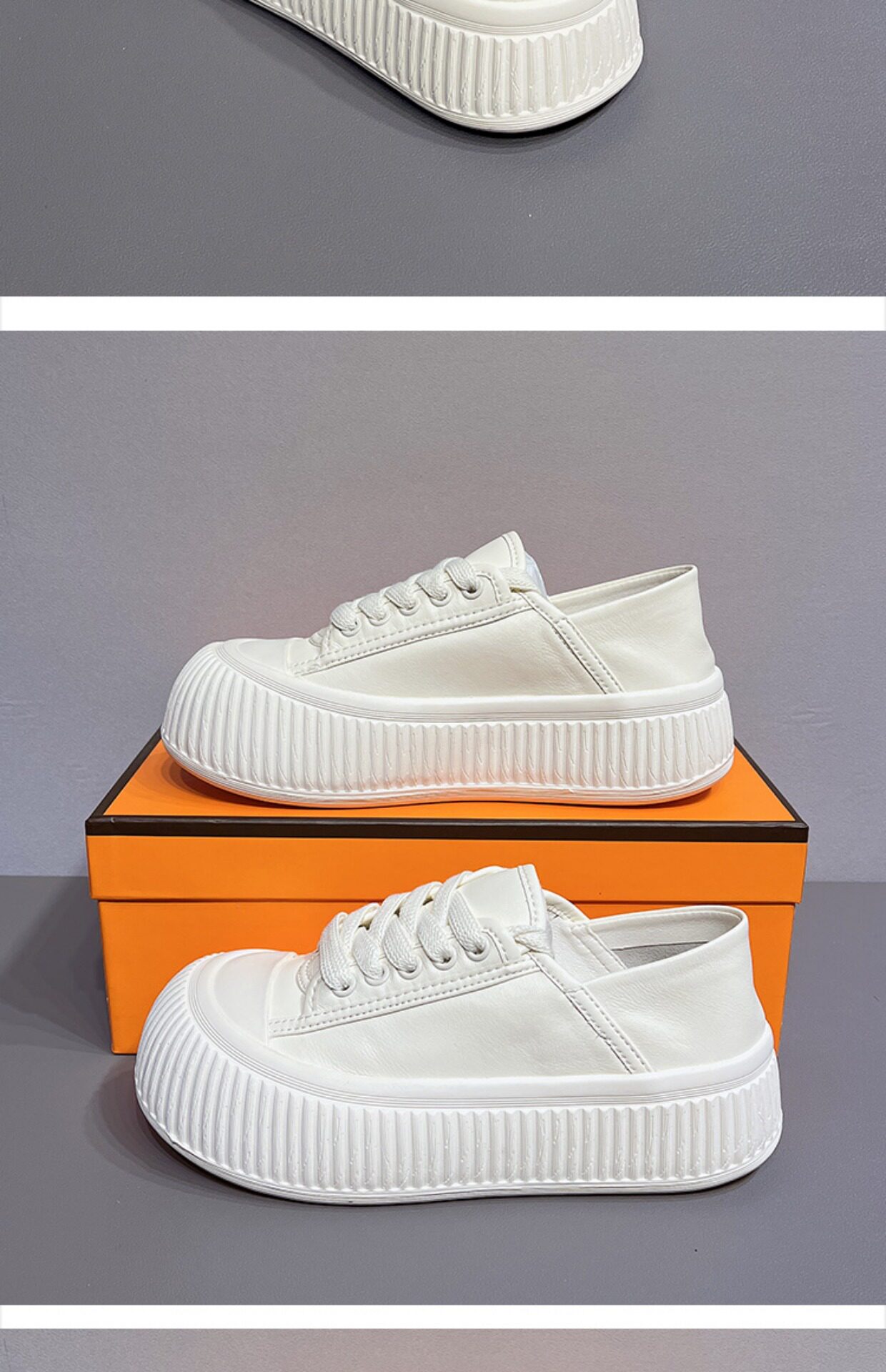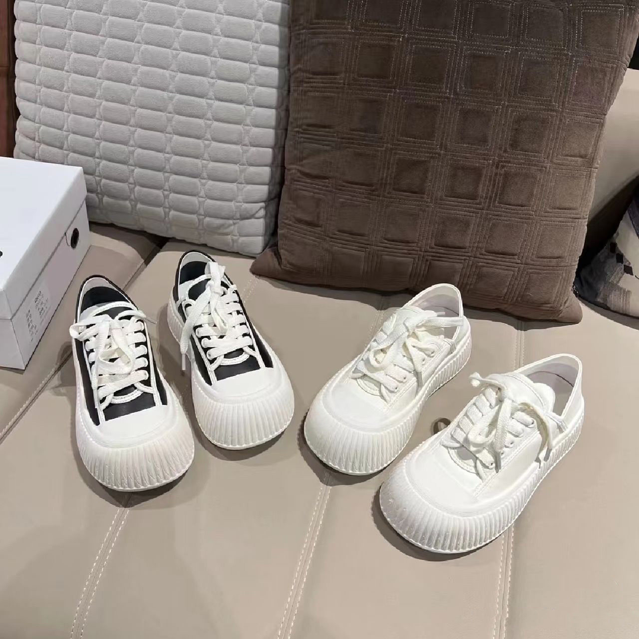 Hong Kong Thick-Soled Height-Increasing Cute and Quirky Round-Toe White Sneakers for Women, 2026 Spring and Autumn New Style, Lace-Up Genuine Leather Versatile Casual Sneakers