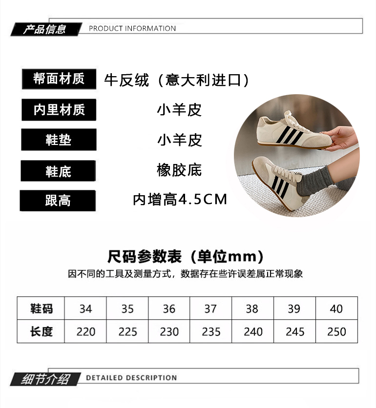 Hong Kong Soft-Soled Comfortable Sneakers for Women, Popular Breathable White Shoes with Hidden Height Increase for Spring and Autumn 2025, Casual German Training Shoes