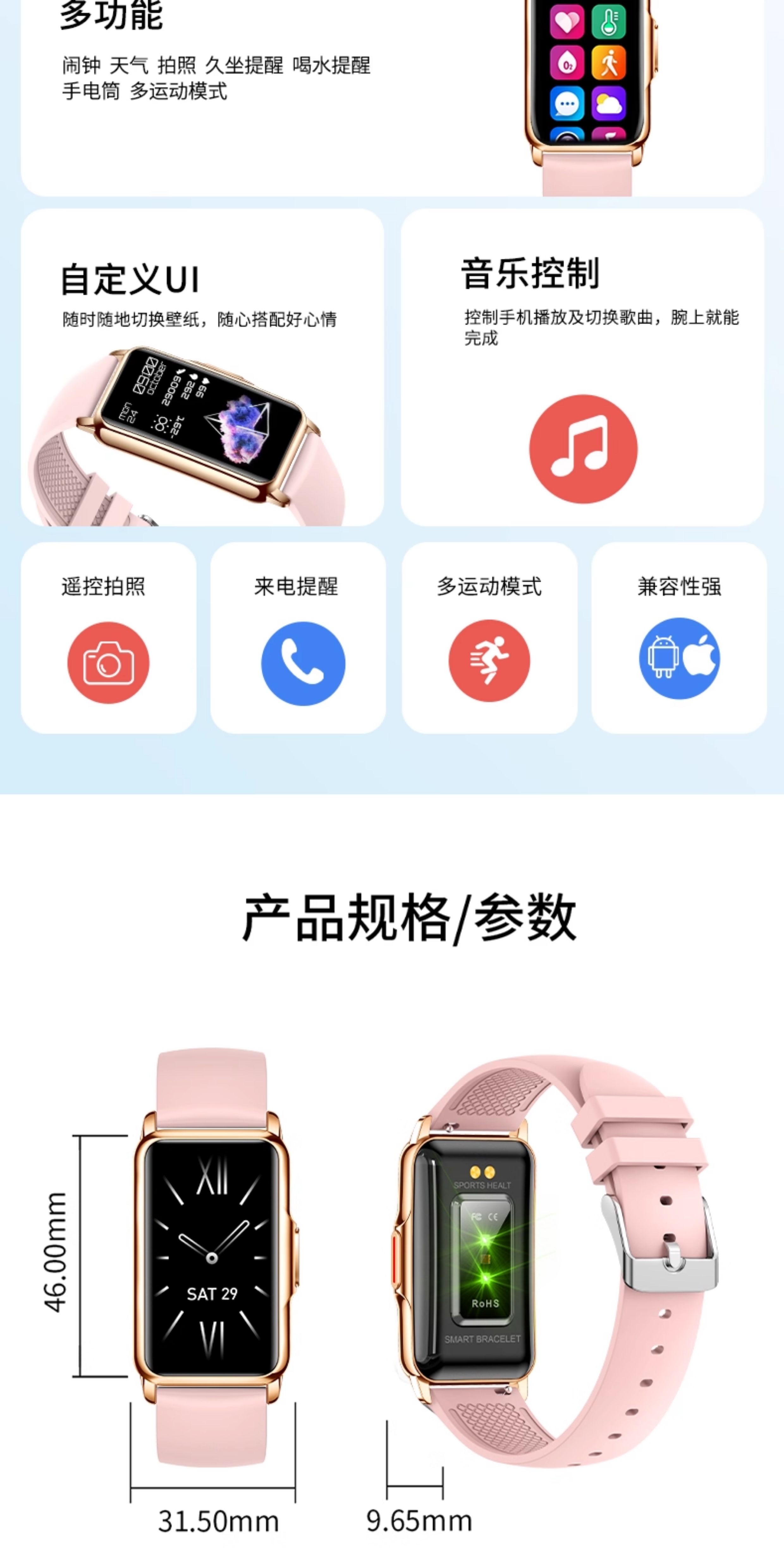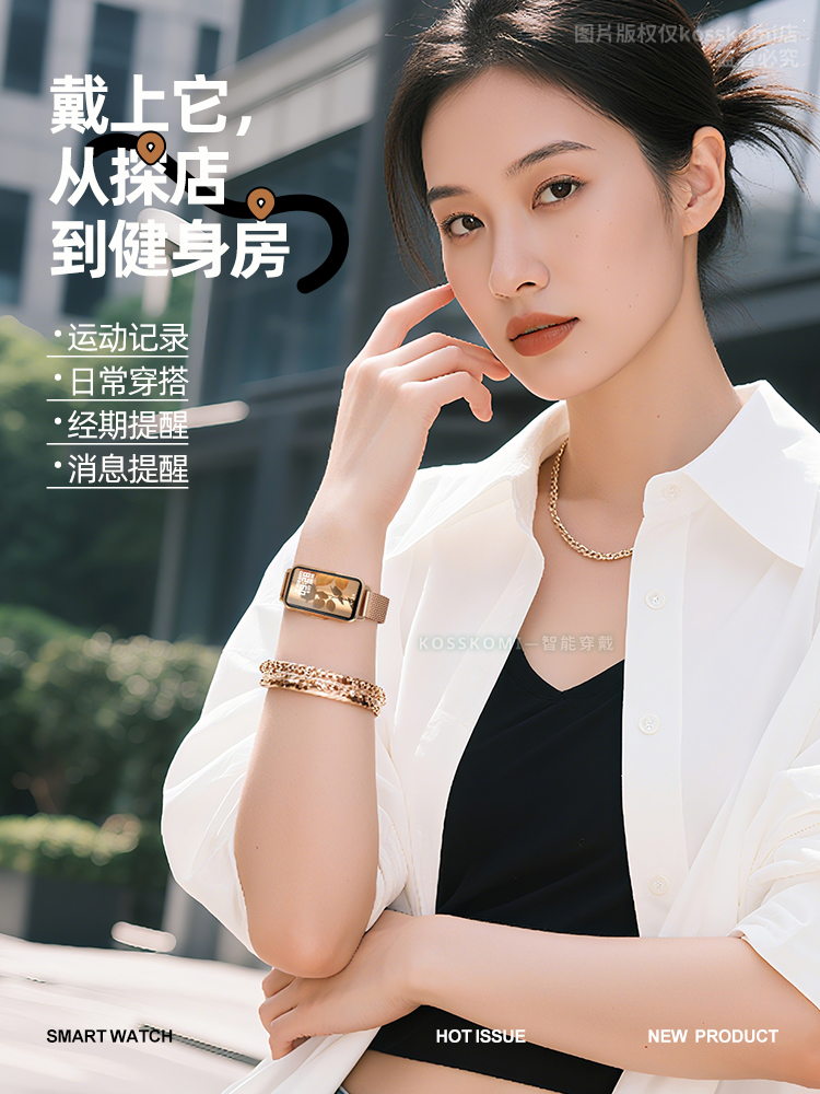 Smart Bracelet for Women, Steel Band, Self-Discipline, Heart Rate Monitoring, Sleep Monitoring, Suitable for Android Phones, Bluetooth Running Sports Watch