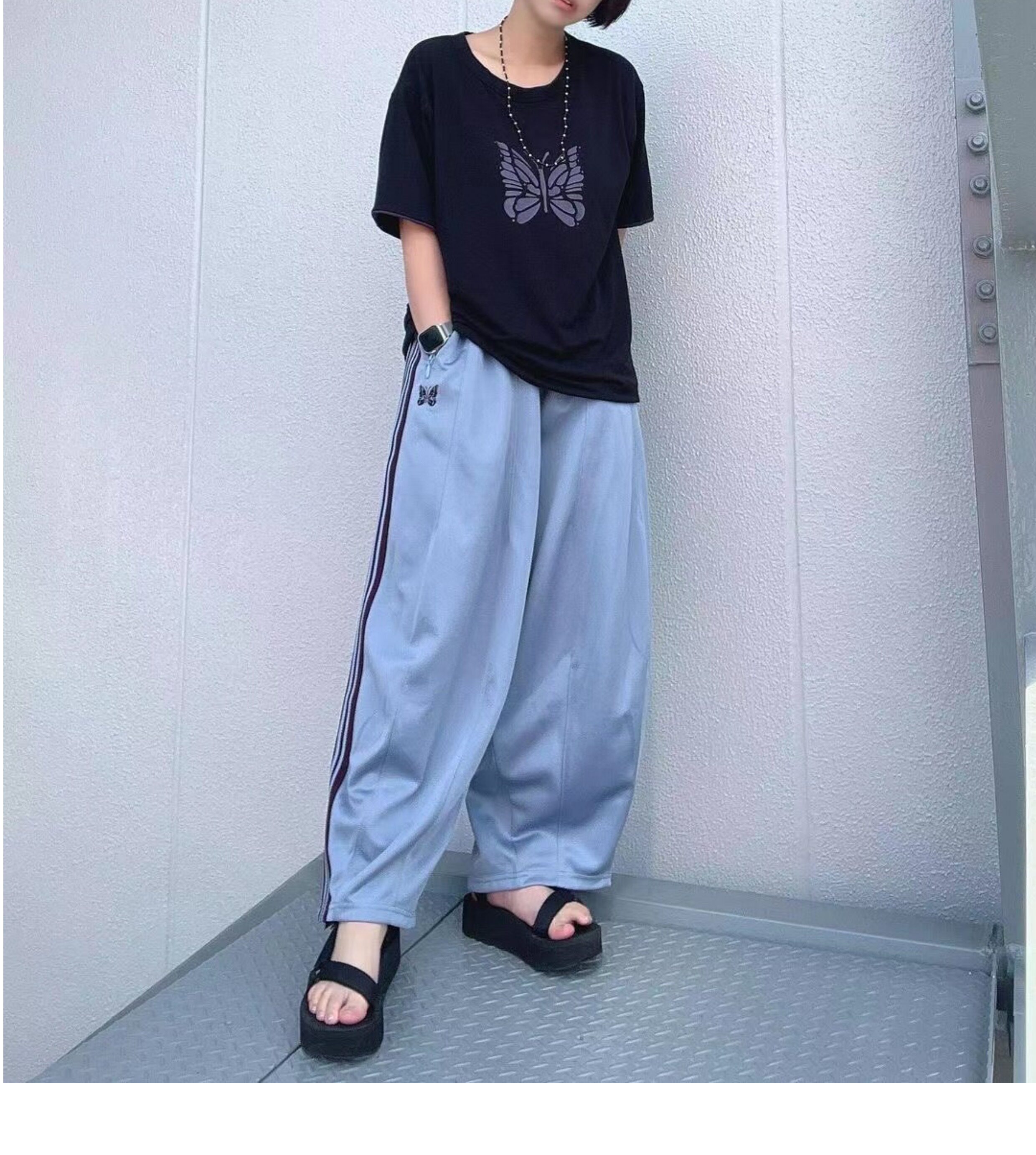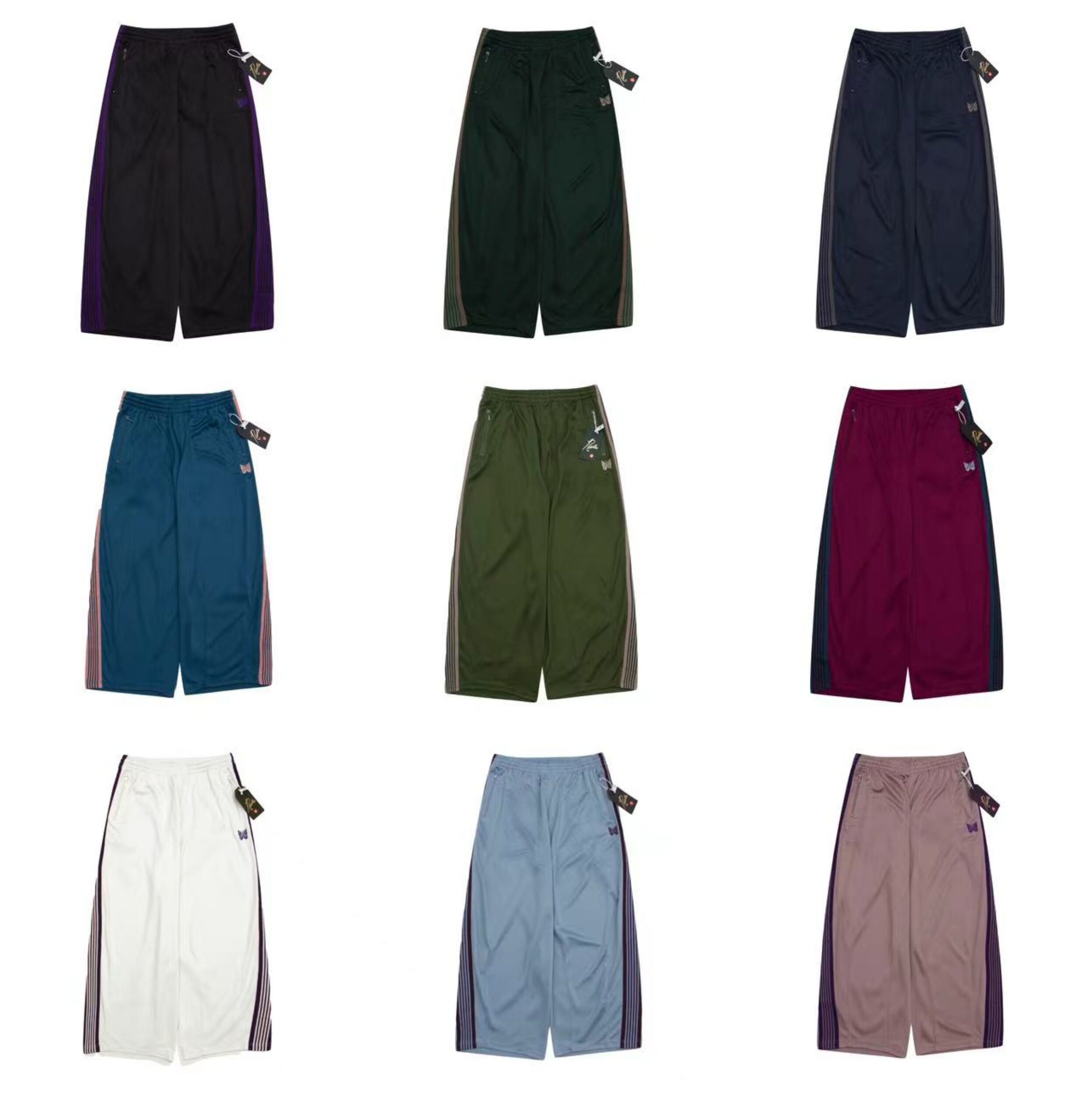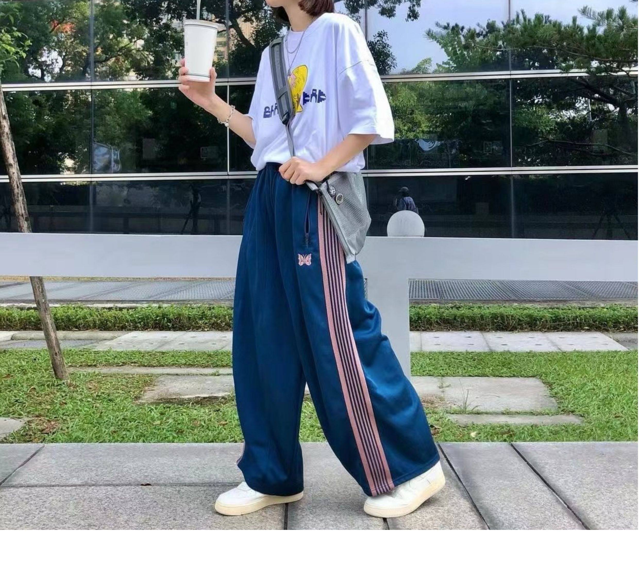 Needles Track Butterfly Embroidery Trendy Loose Pants Os Wide Version Lantern Versatile Webbing Sports Wide-Leg Long Pants