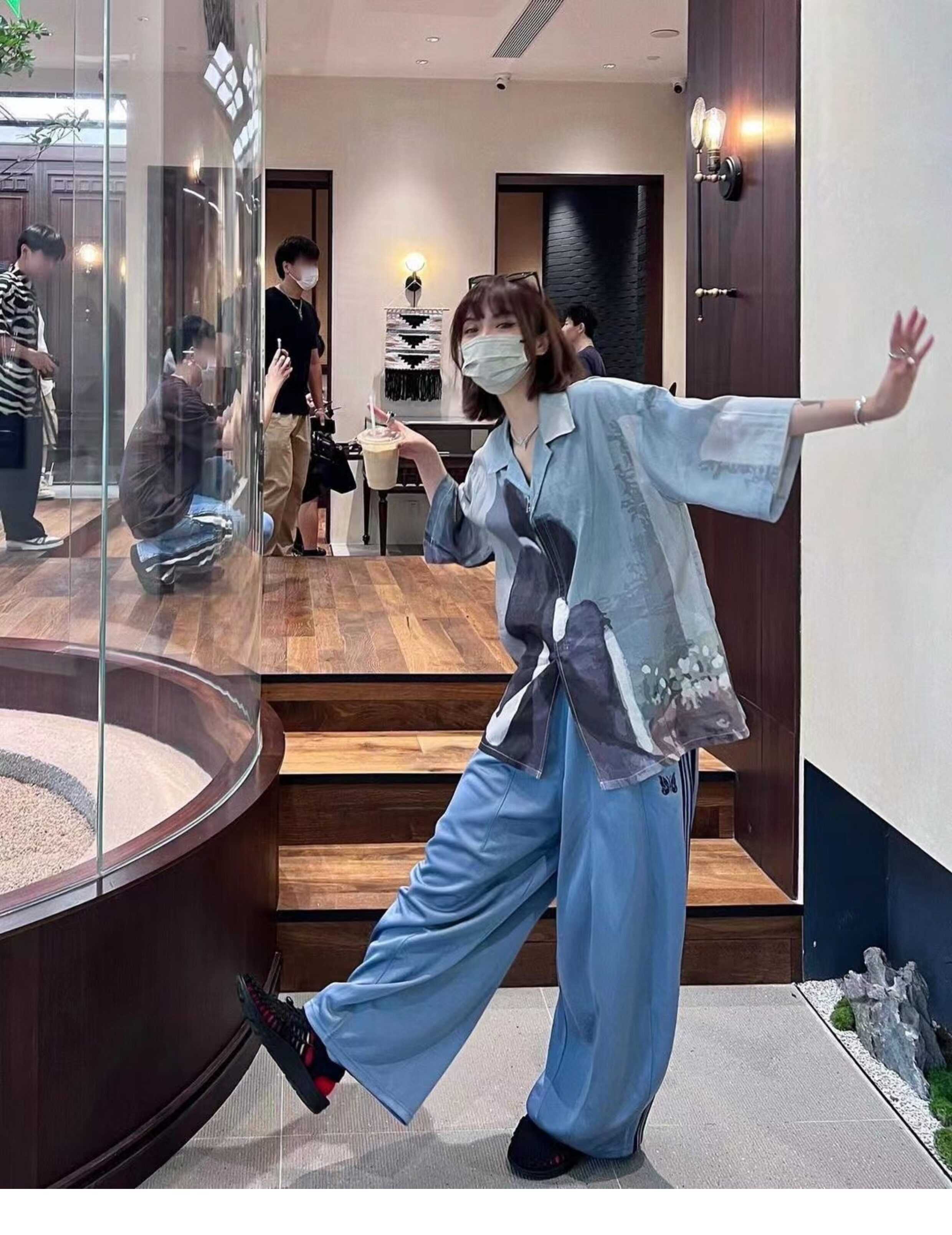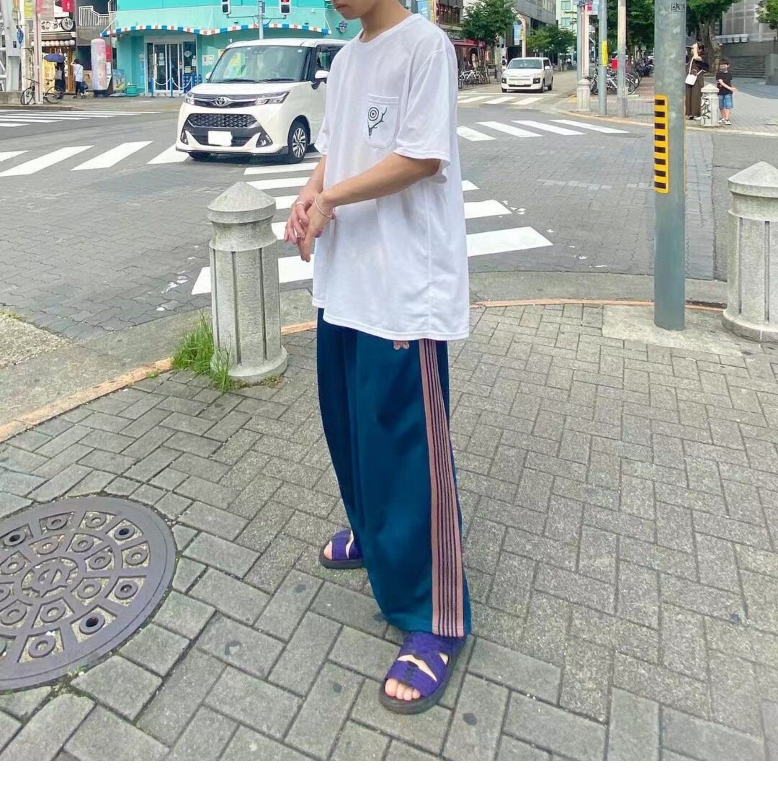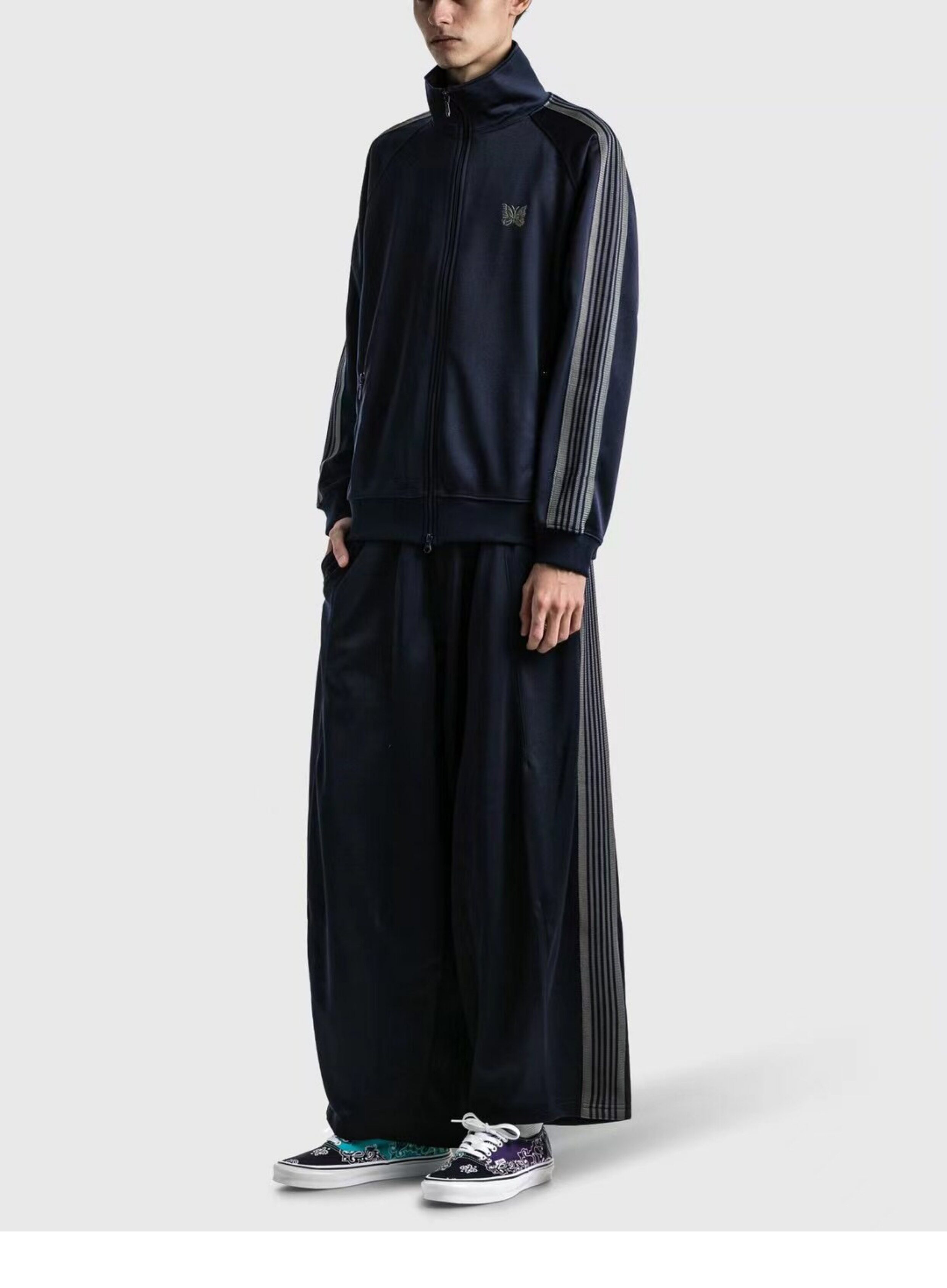 Needles Track Butterfly Embroidery Trendy Loose Pants Os Wide Version Lantern Versatile Webbing Sports Wide-Leg Long Pants
