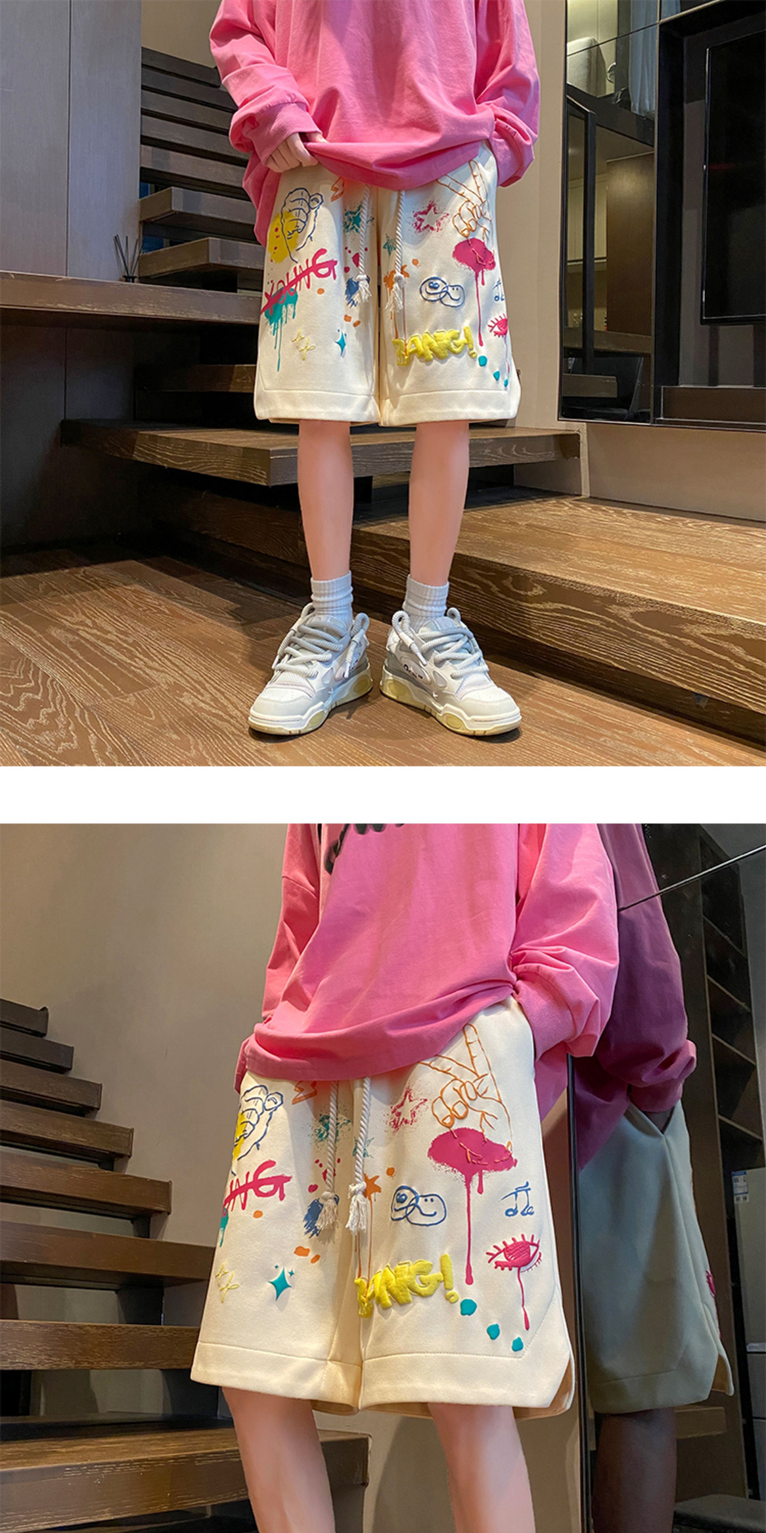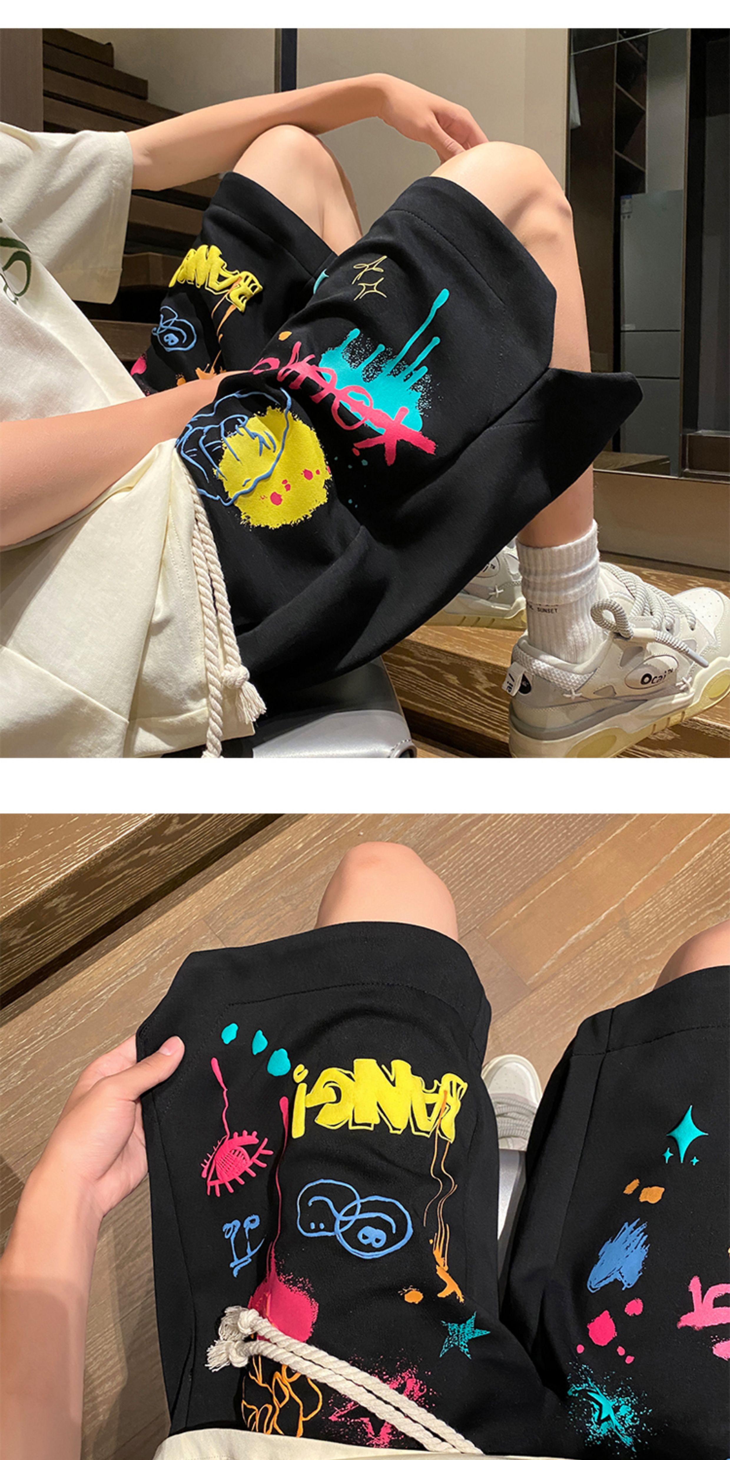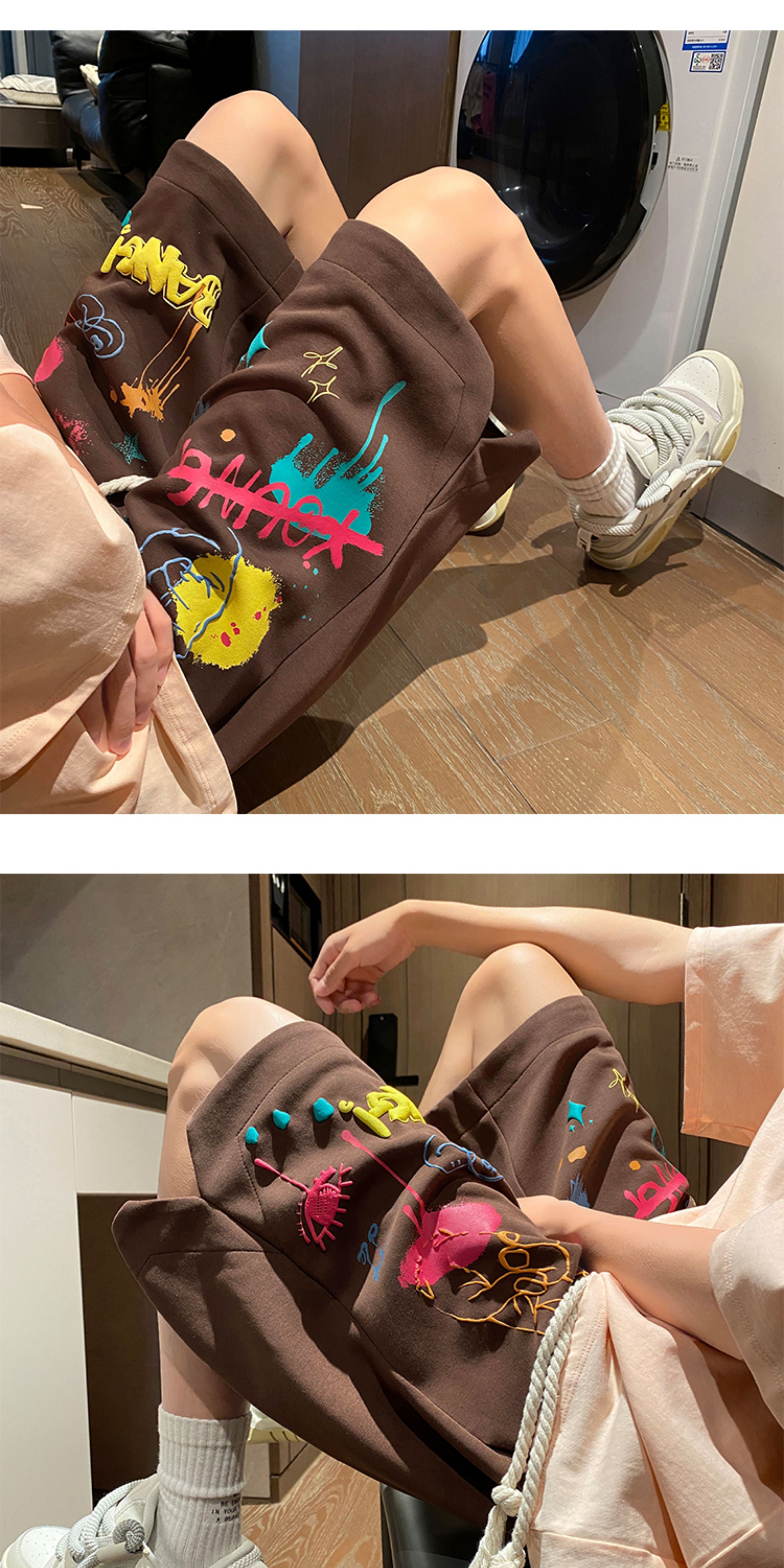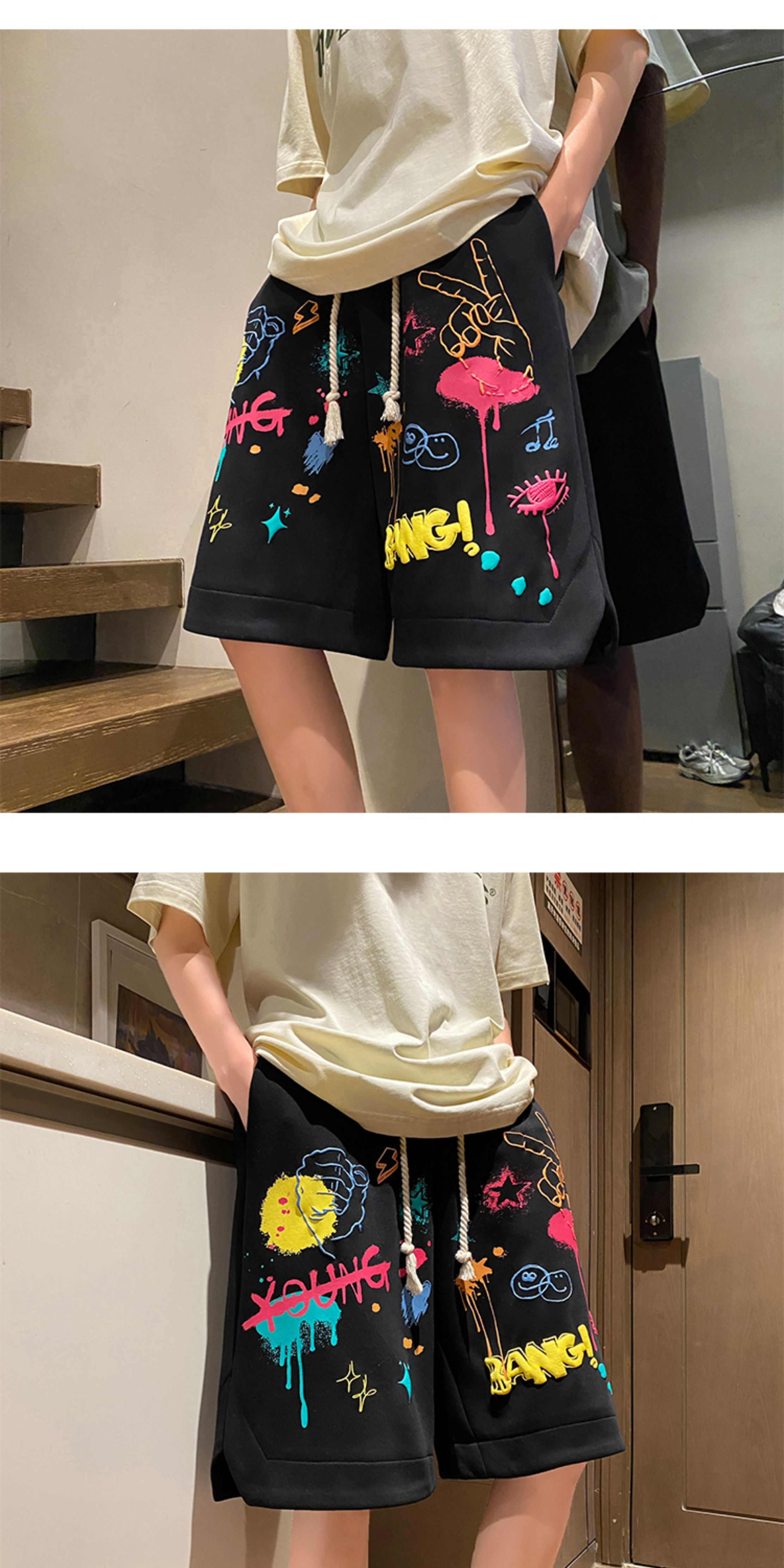 Wassup Happy Casual Shorts Men's Summer 2025 New Trendy Brand Graffiti Loose Five-Point Sports Pants