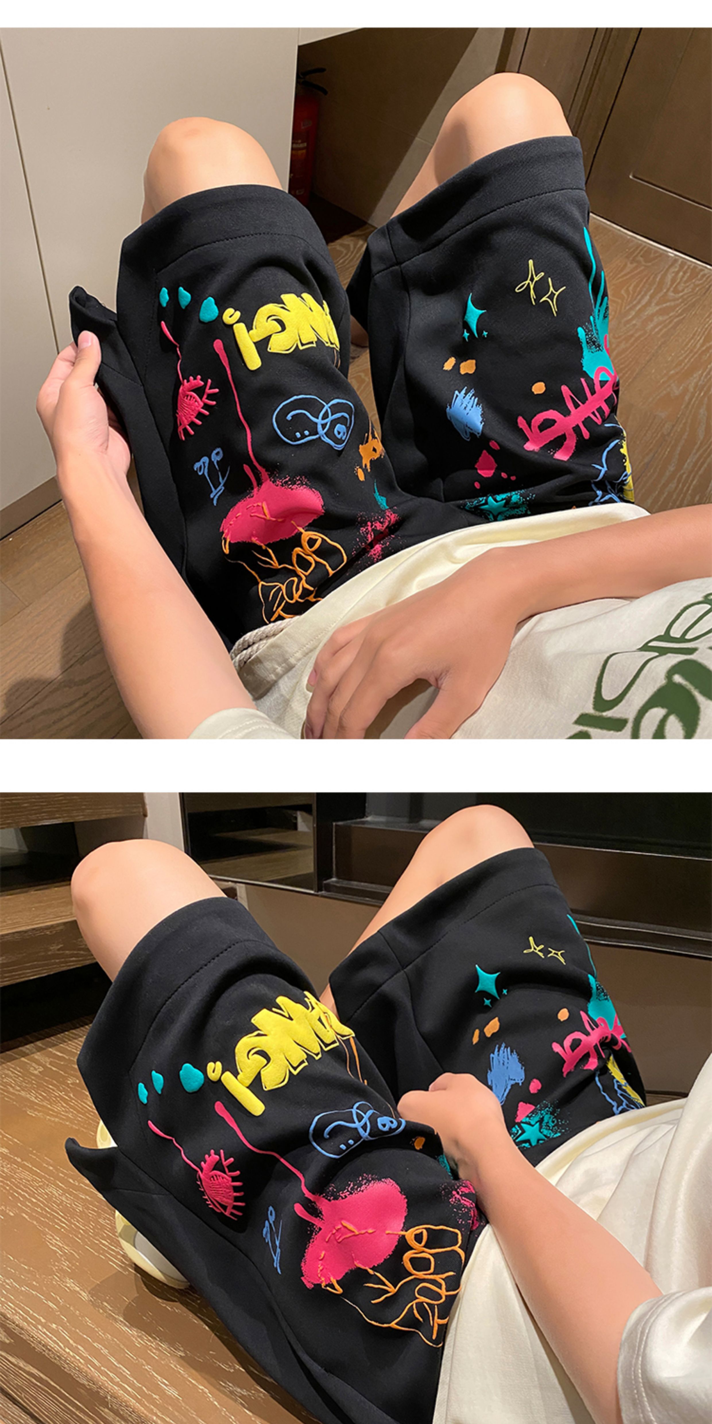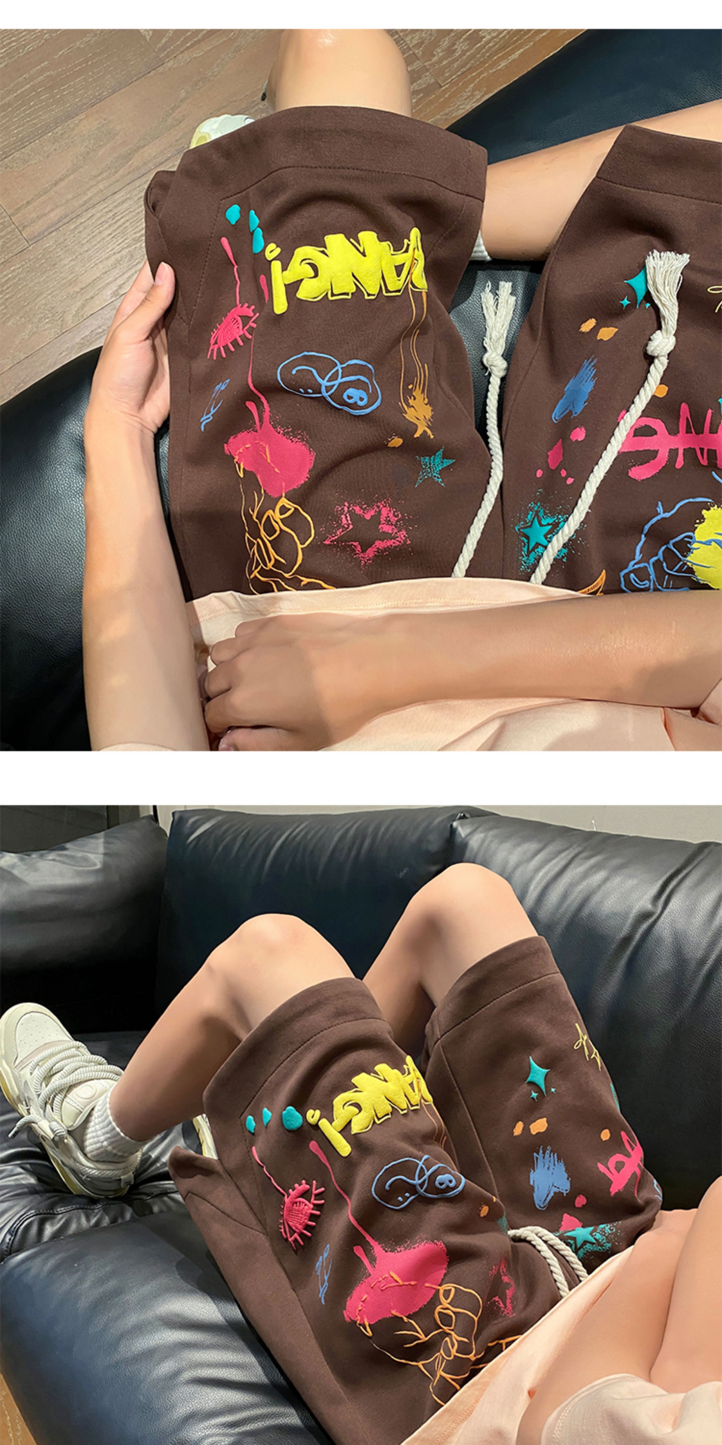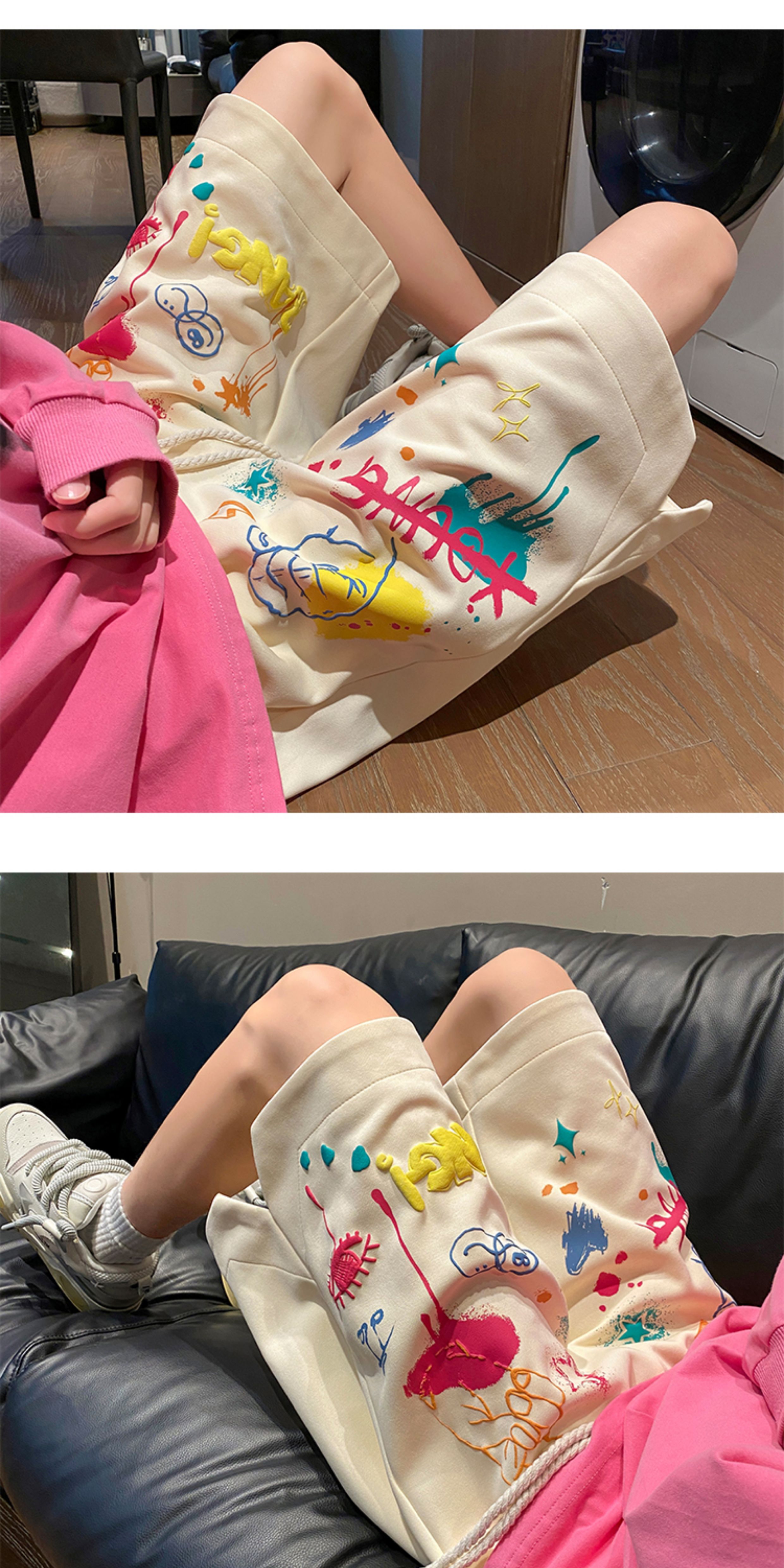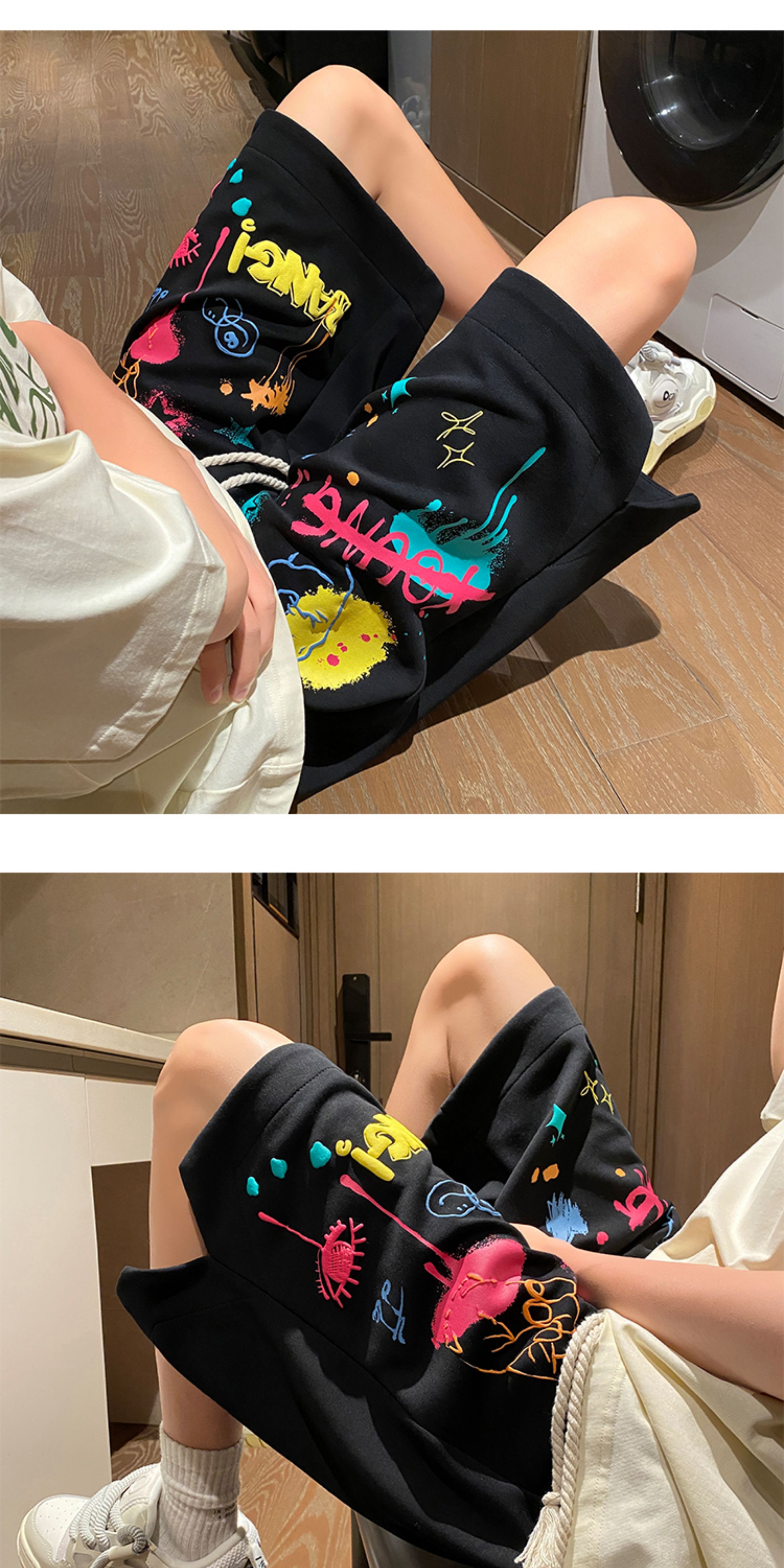 Wassup Happy Casual Shorts Men's Summer 2025 New Trendy Brand Graffiti Loose Five-Point Sports Pants