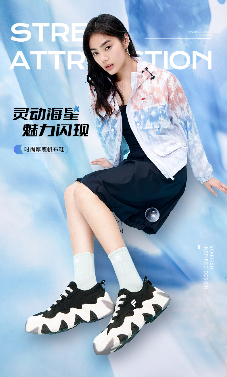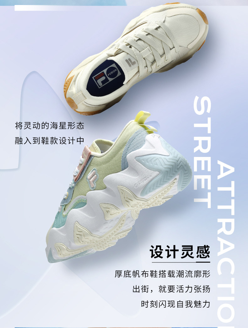 Fila Fusion Official Starfish Shoes Trendy Brand Women's Canvas Shoes Thick-Soled Height-Increasing Casual Shoes Sneakers