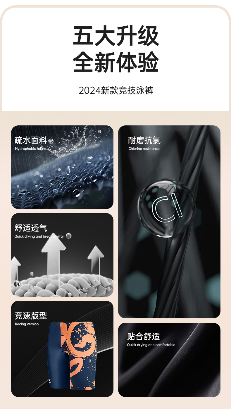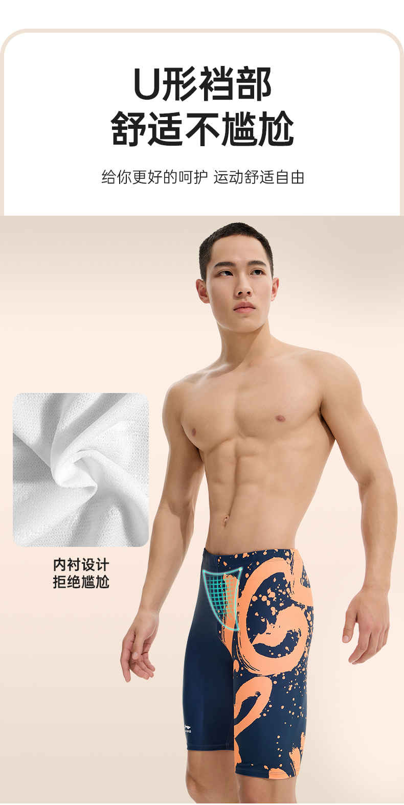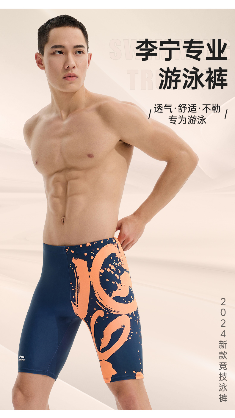 Li-Ning Men's Swim Trunks Adult 2025 New Swimming Trunks Youth Five-Point Professional Swimming Cap and Goggles Set