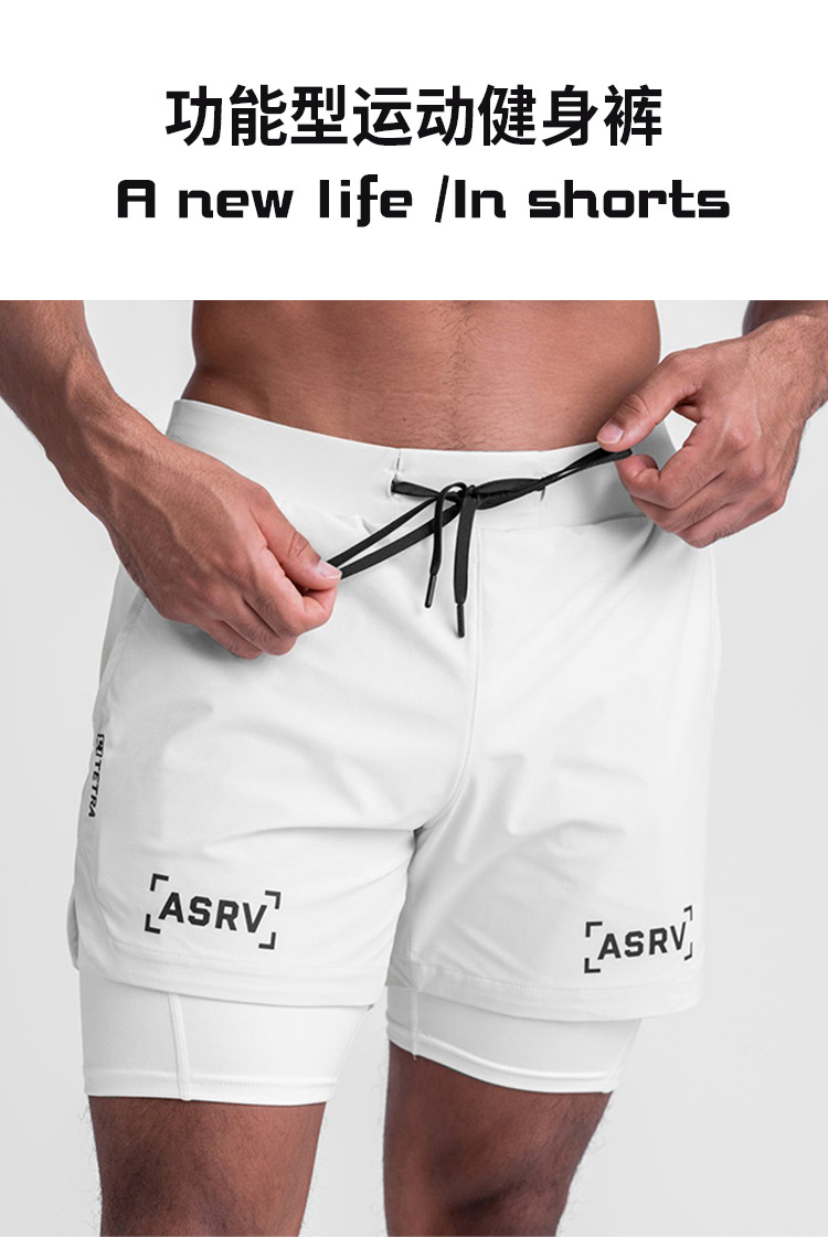 American-Style Basketball Shorts for Men, Double-Layered with Lining, Quick-Drying, Stretchy Training White Five-Point Shorts, Fitness Sports Shorts for Summer