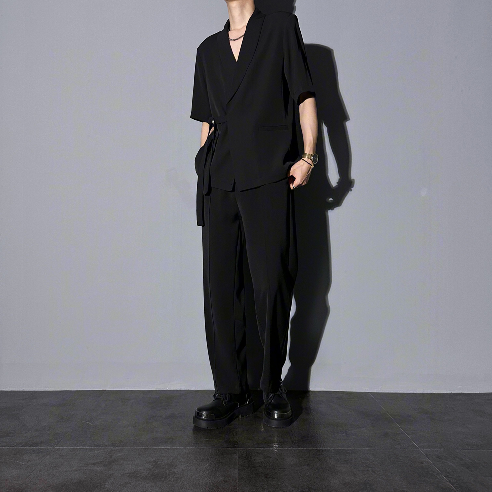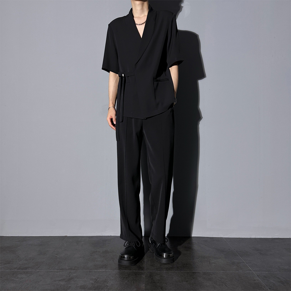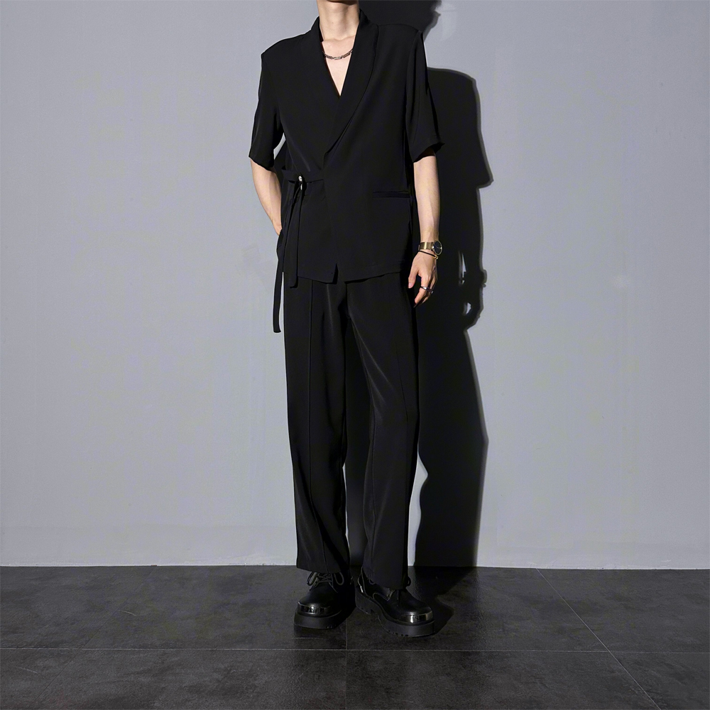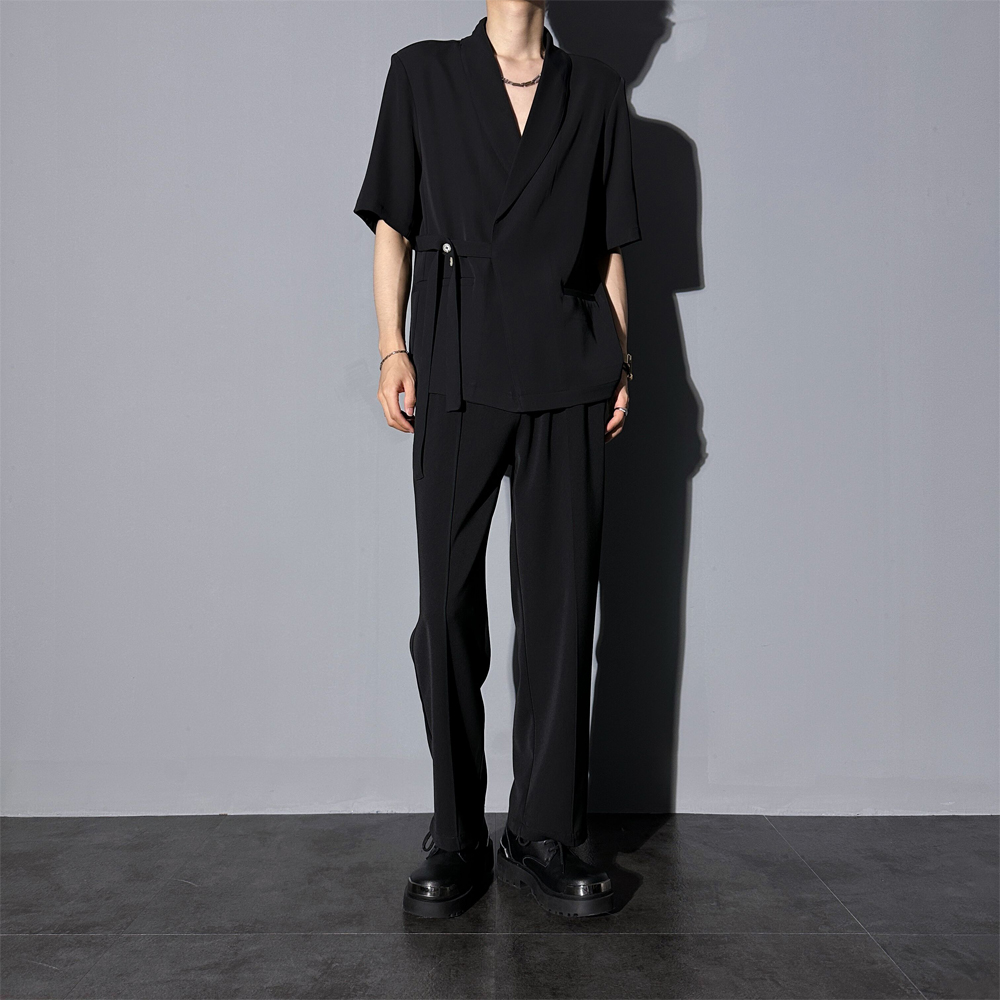 Summer Cool Ice Silk Short-Sleeved Suit for Men, Thin Korean Style Casual Loose Suit Set, High-End Two-Piece Trendy Set
