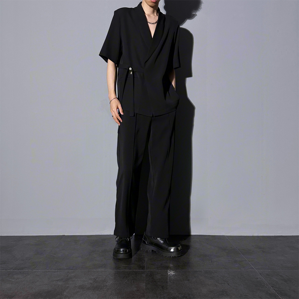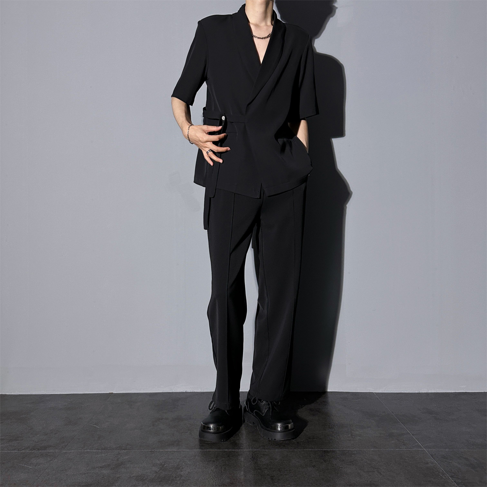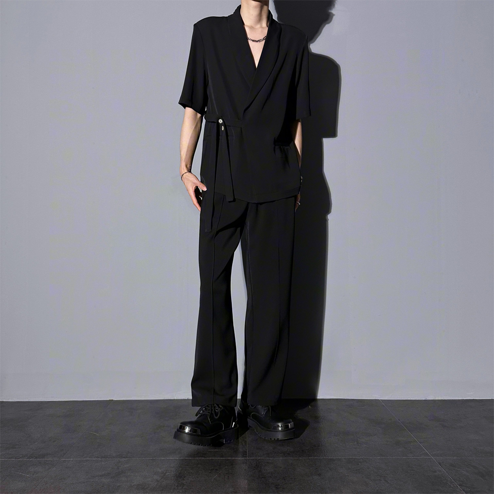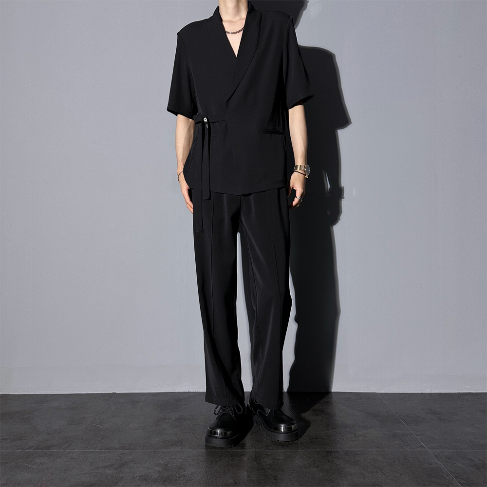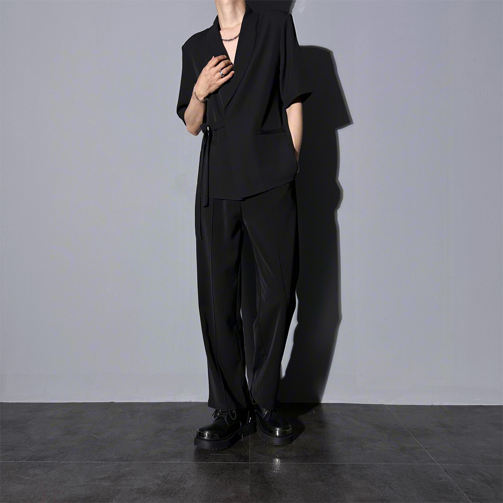 Summer Cool Ice Silk Short-Sleeved Suit for Men, Thin Korean Style Casual Loose Suit Set, High-End Two-Piece Trendy Set