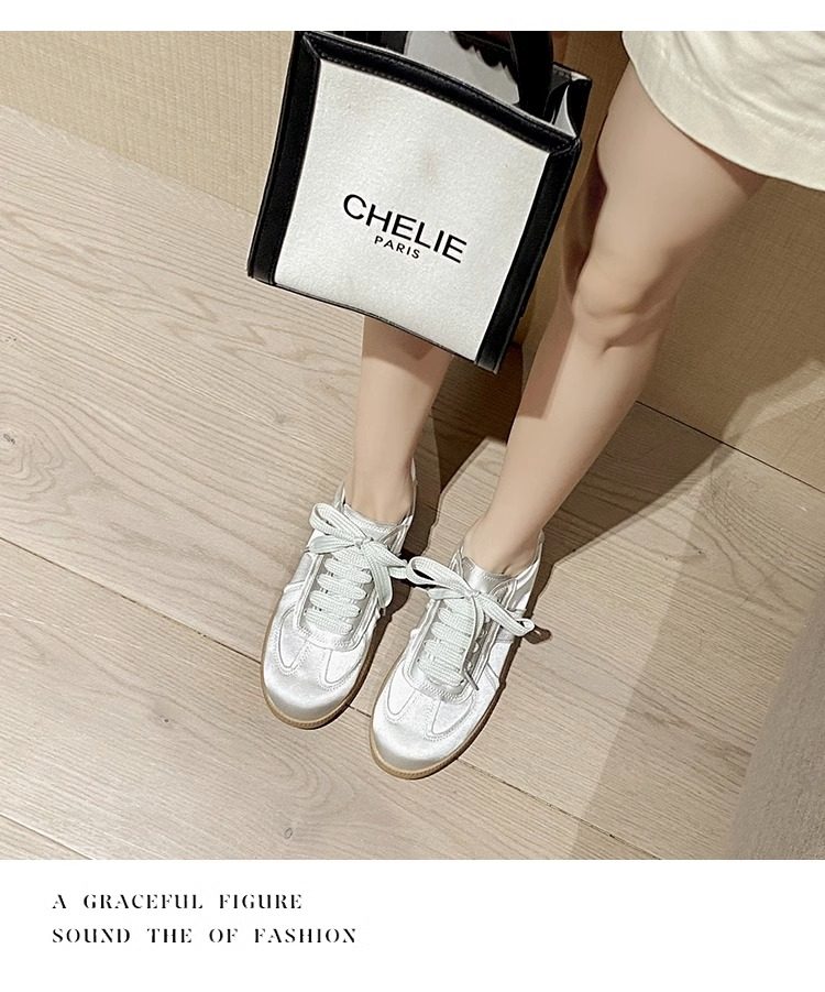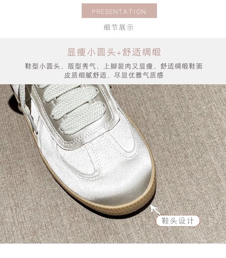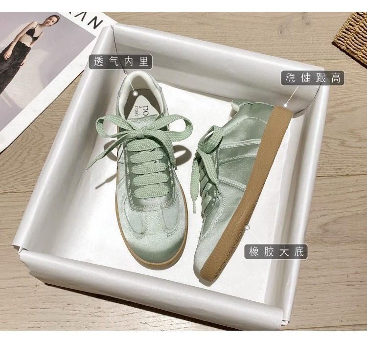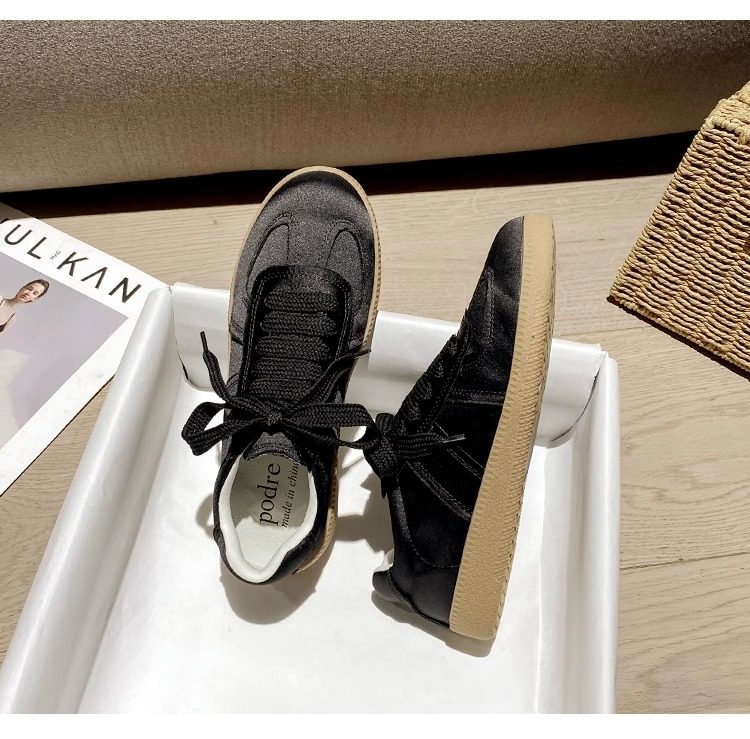 Hong Kong Niche Original Women's Shoes, Casual Sneakers, Flat Casual Shoes, European Style, Popular Model, Satin German Training Shoes