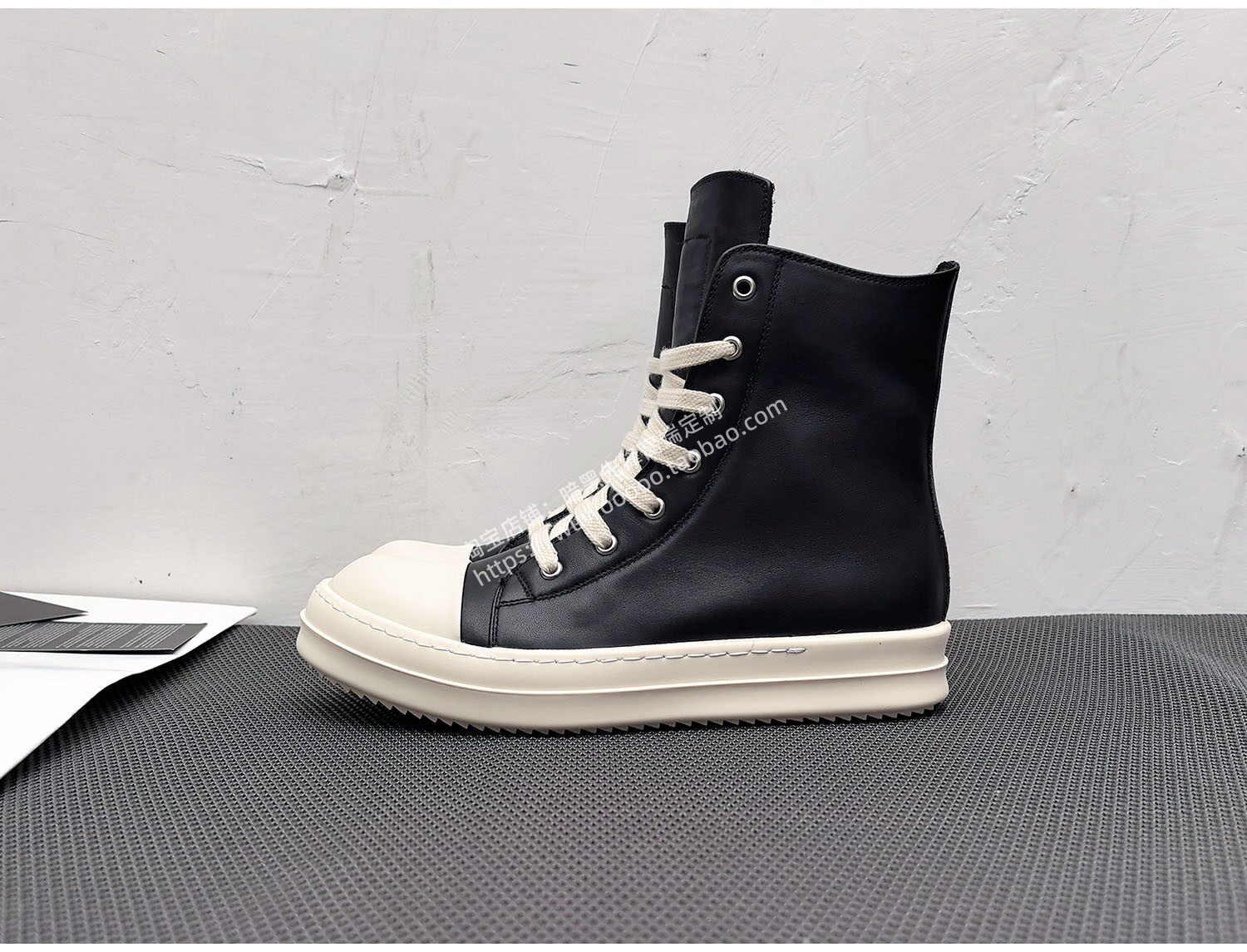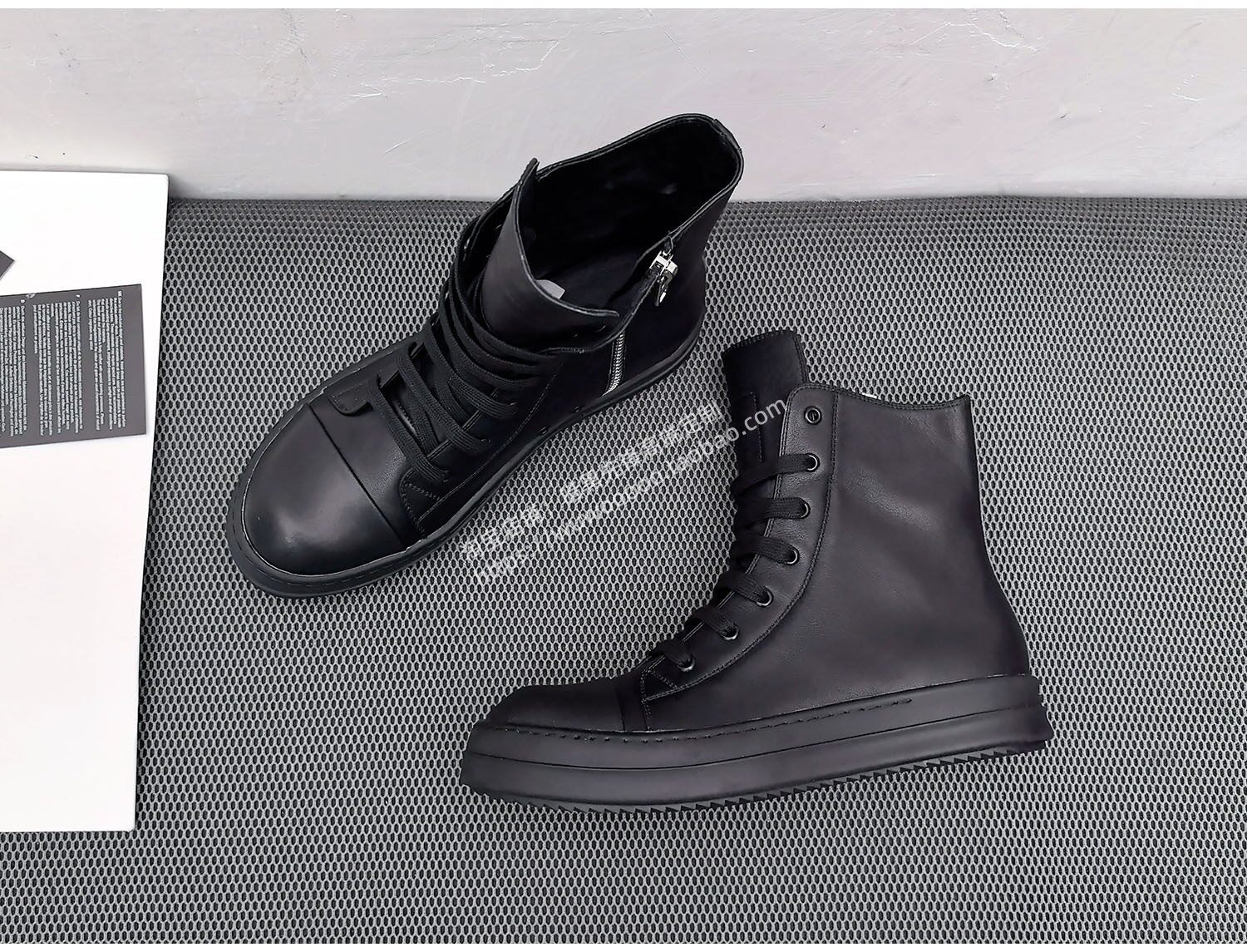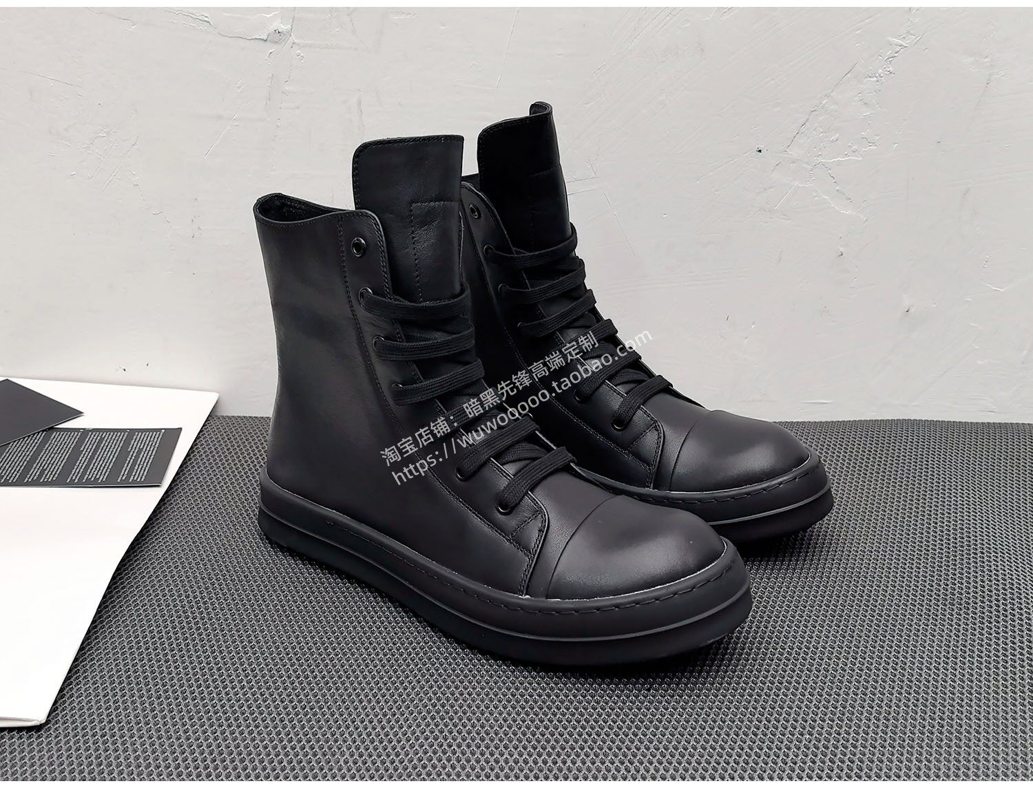 2025 Spring/Summer Main Line Autumn/Winter Black High-Top Shoes for Men, Thick Shoelaces, Genuine Leather, Thick-Soled Height-Increasing Sneakers, Women's Short Boots, Trendy