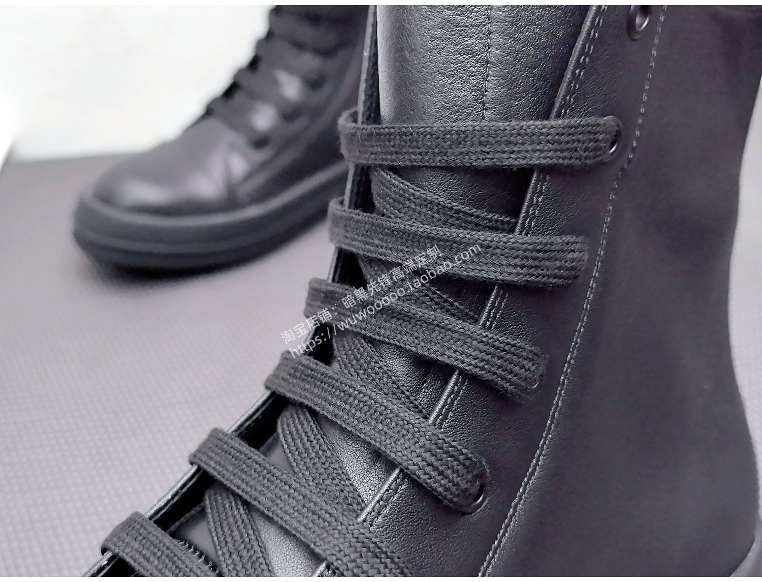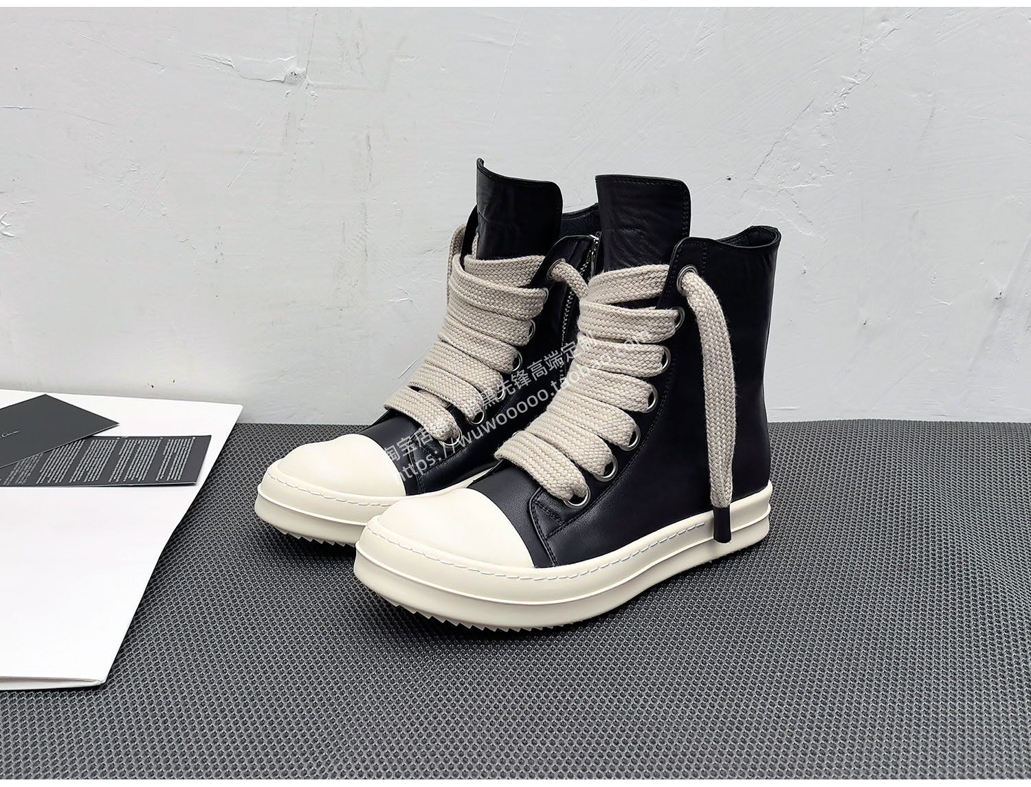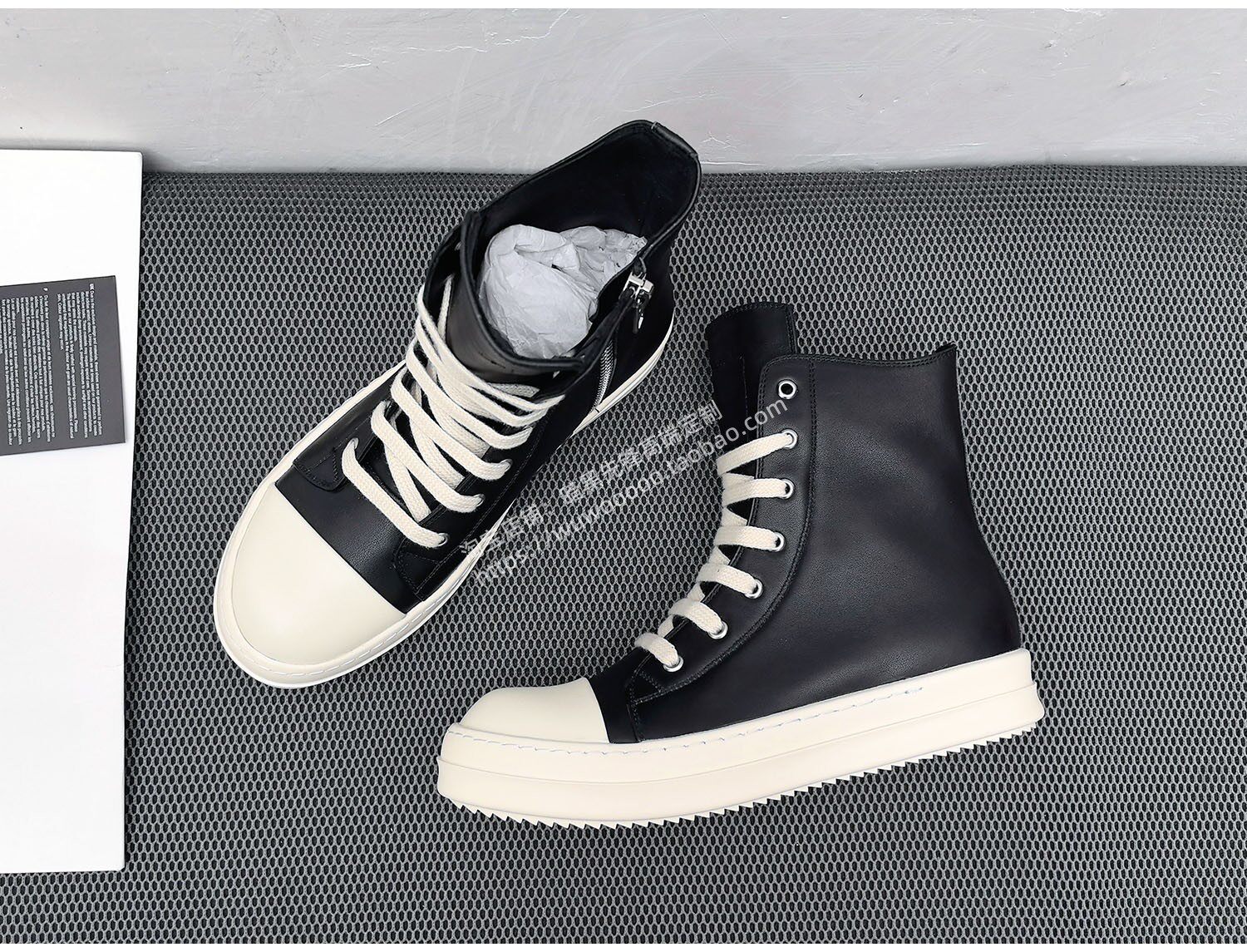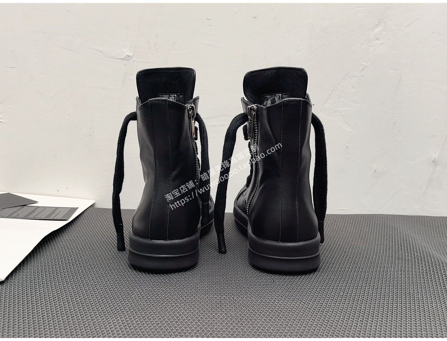 2025 Spring/Summer Main Line Autumn/Winter Black High-Top Shoes for Men, Thick Shoelaces, Genuine Leather, Thick-Soled Height-Increasing Sneakers, Women's Short Boots, Trendy