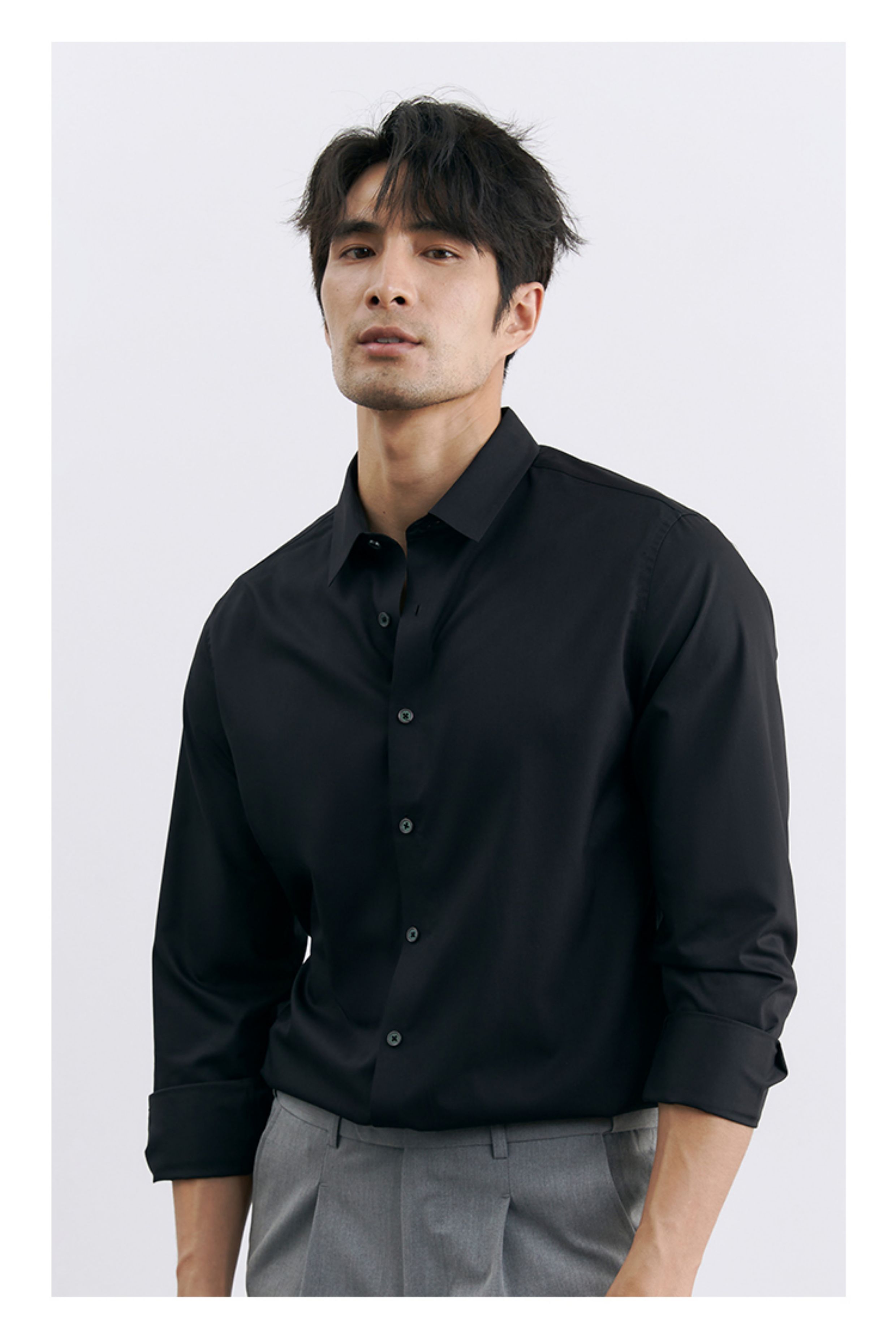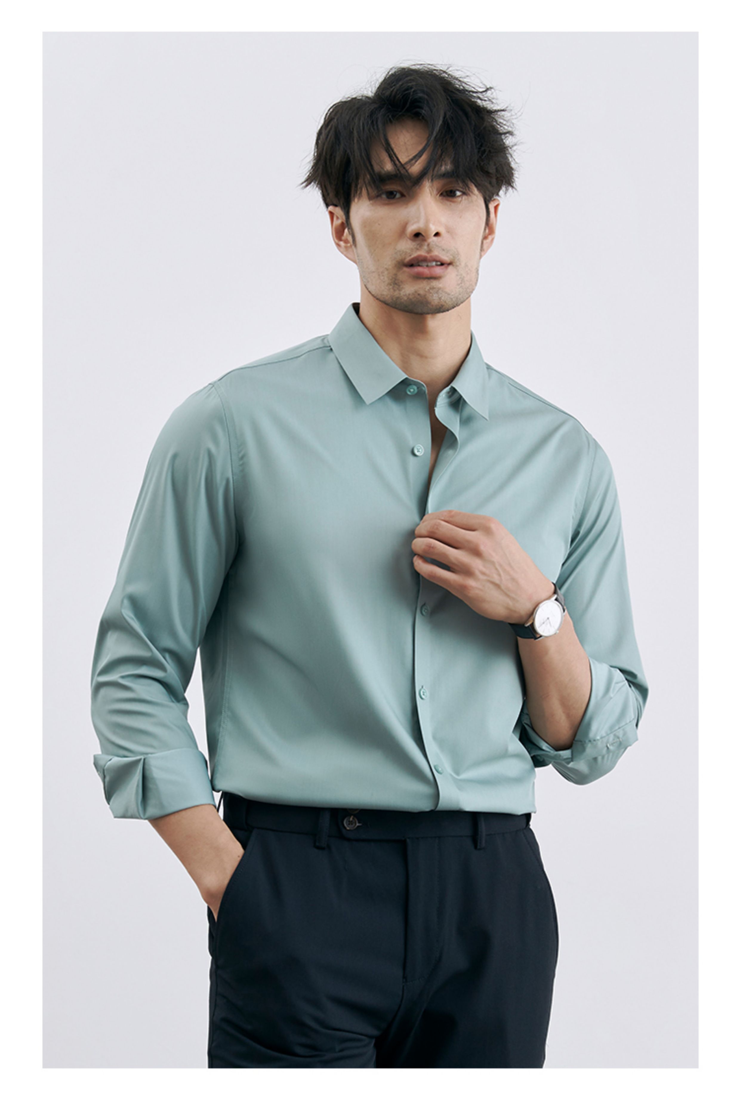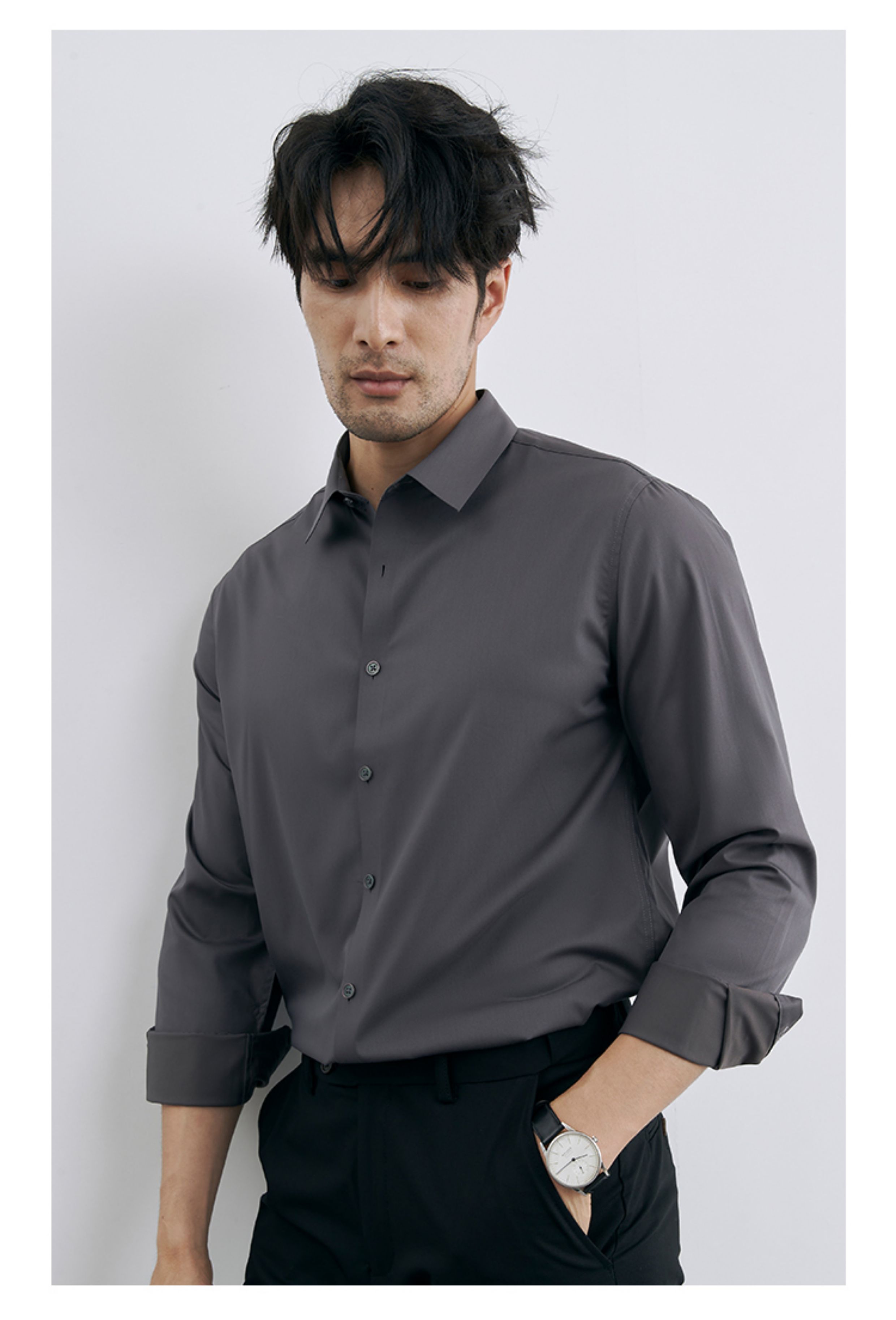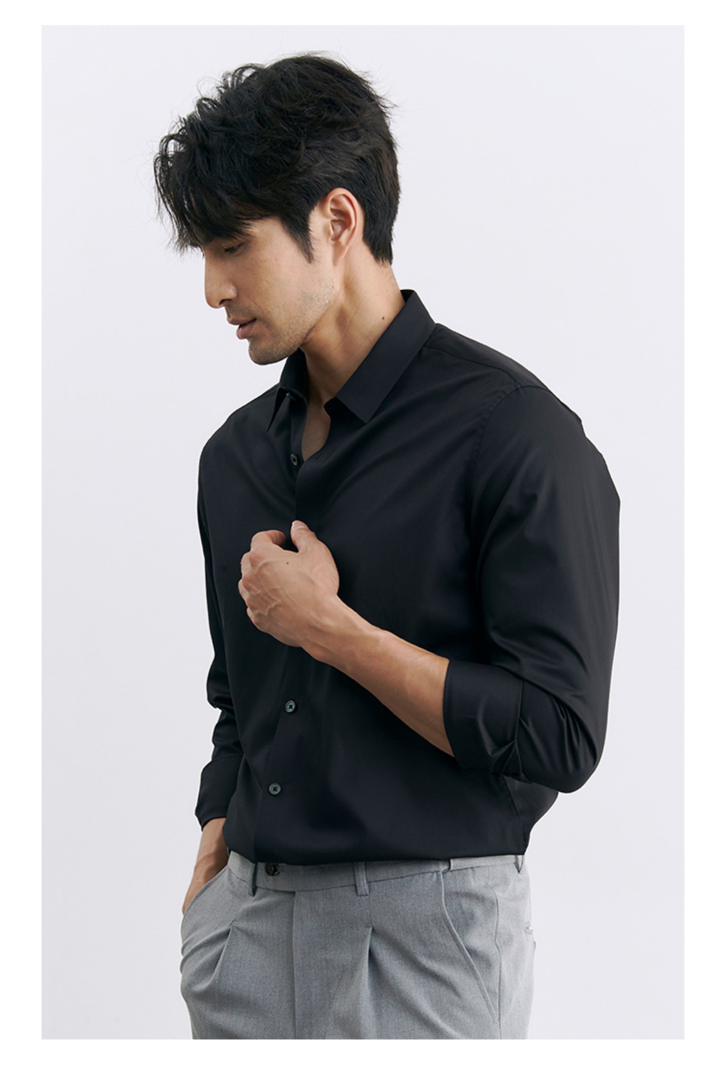 Korean Style High-End Business Formal Wear Wrinkle-Free Black Shirt for Men, Anti-Wrinkle Long-Sleeved White Casual Shirt Jacket
