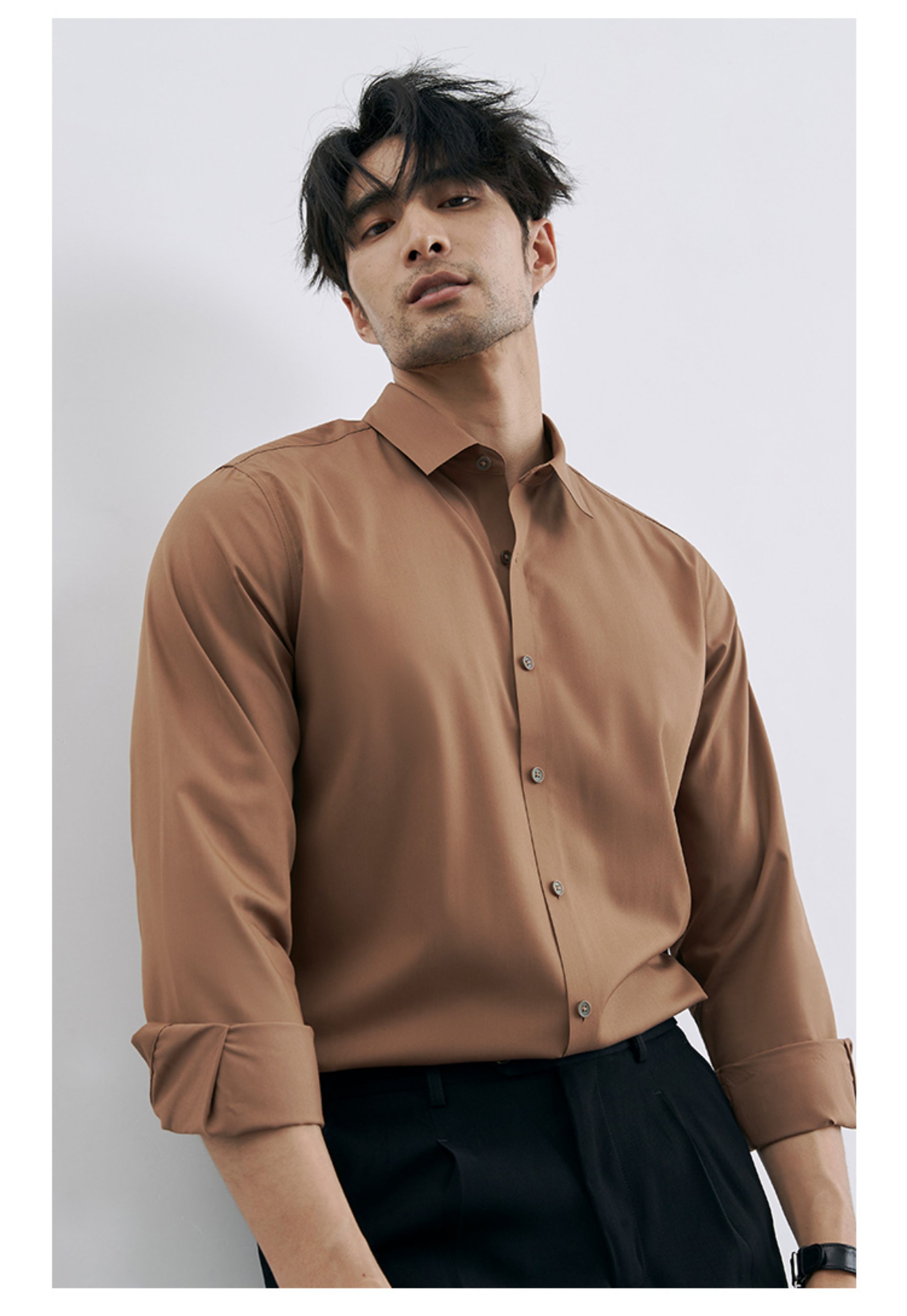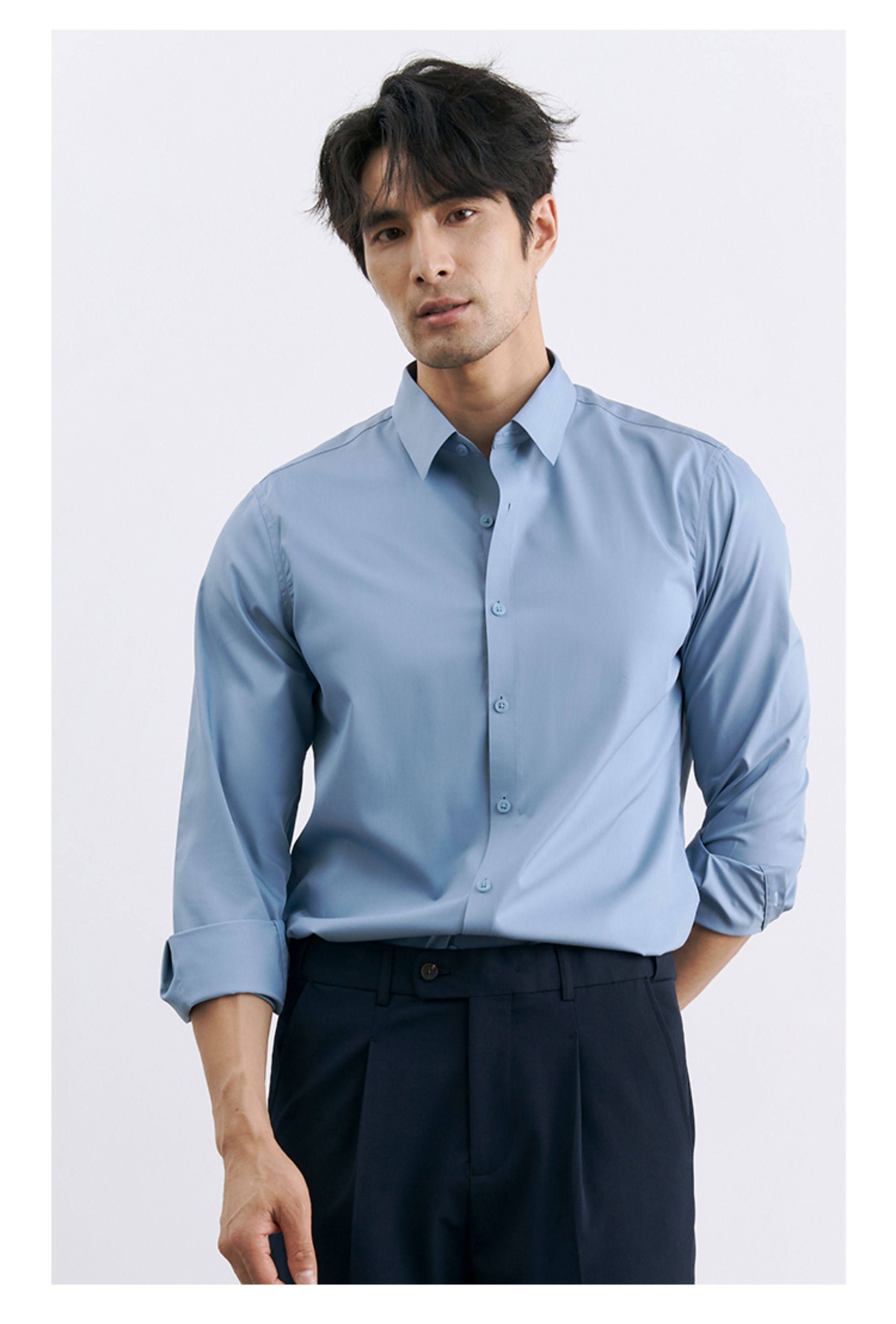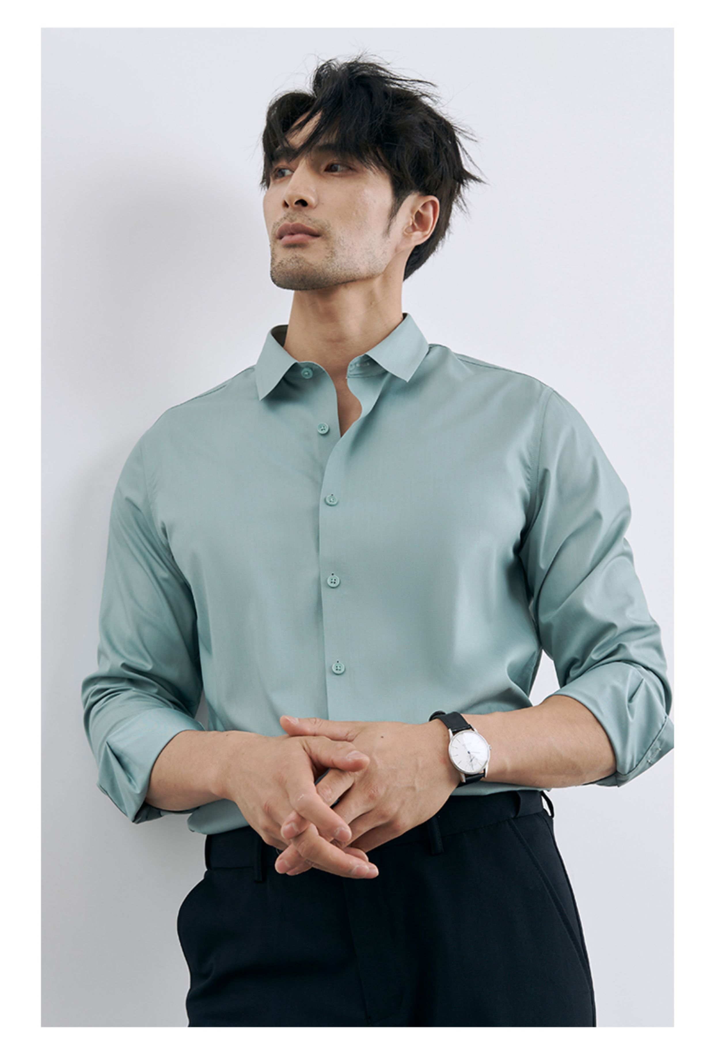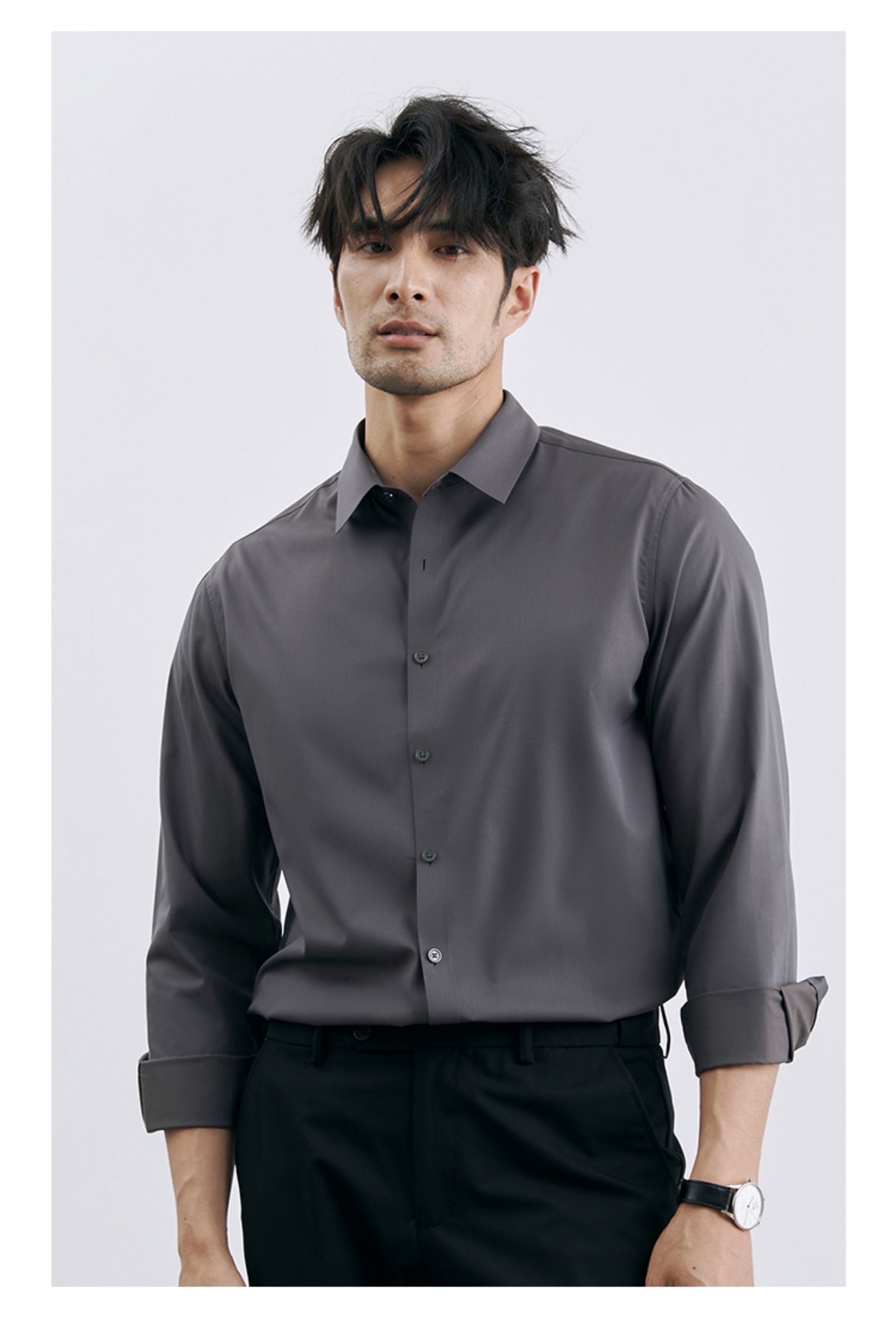 Korean Style High-End Business Formal Wear Wrinkle-Free Black Shirt for Men, Anti-Wrinkle Long-Sleeved White Casual Shirt Jacket