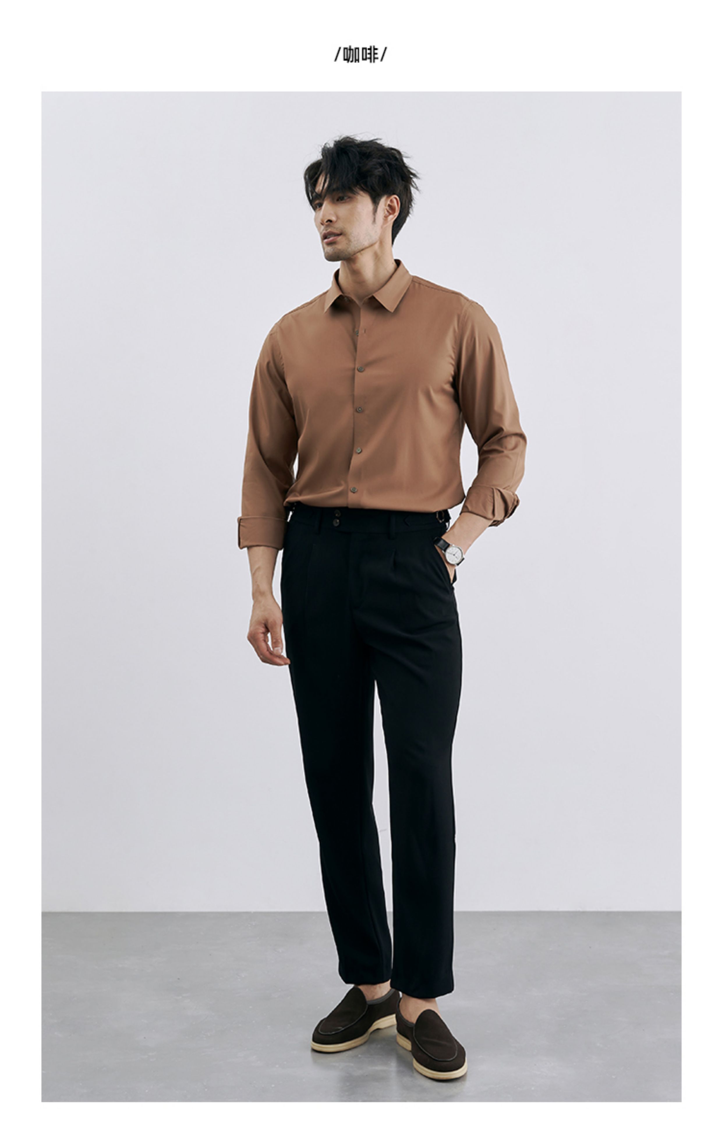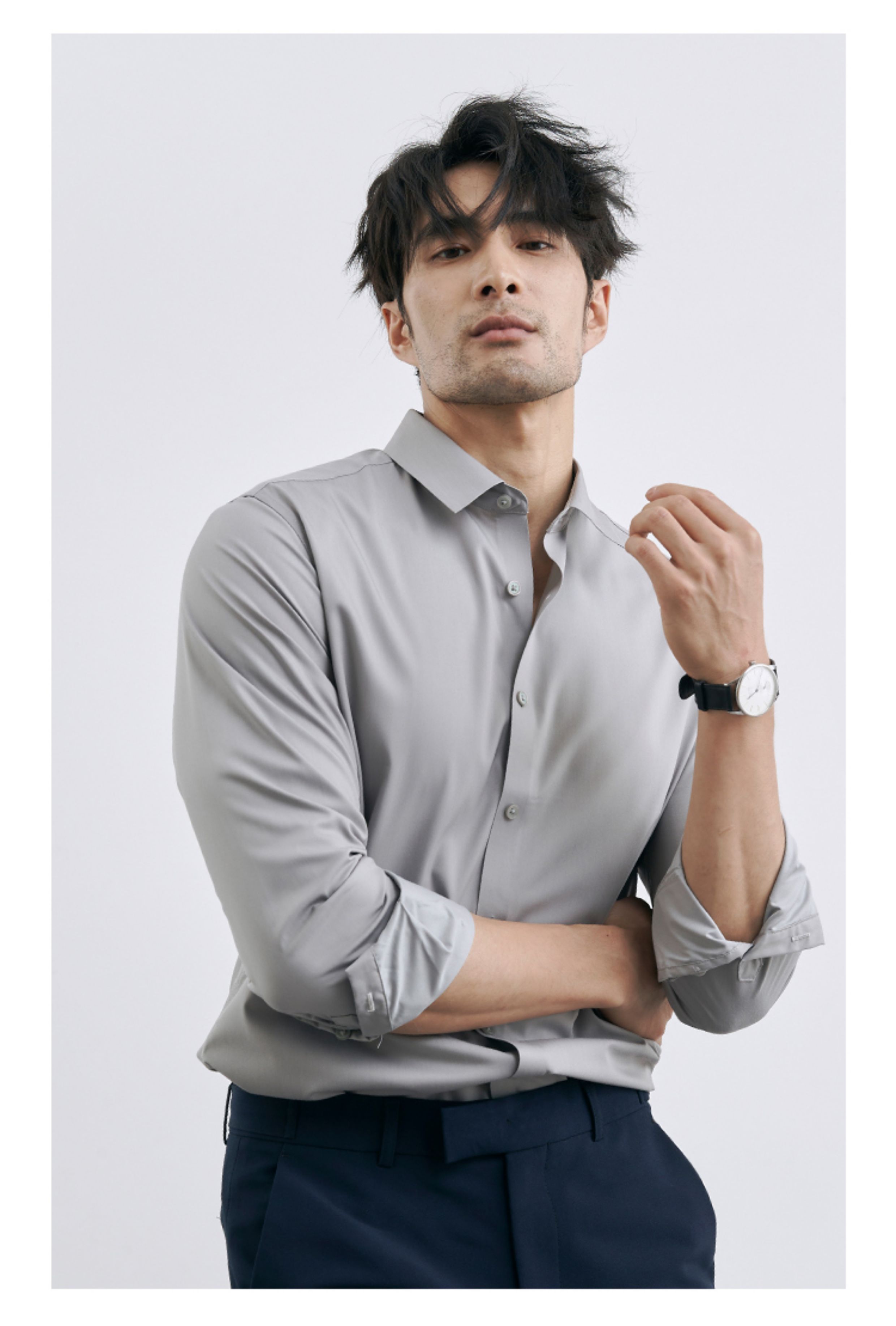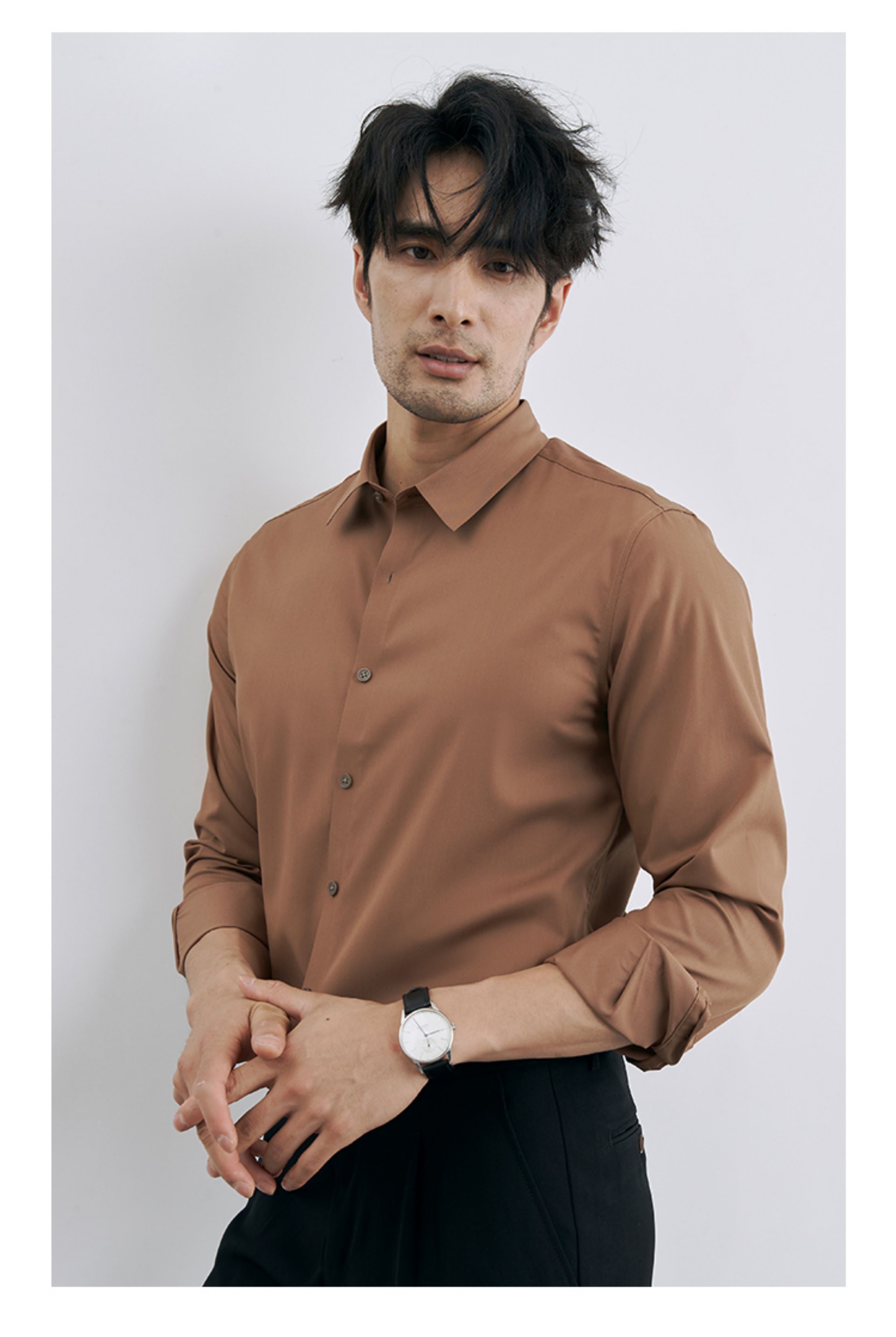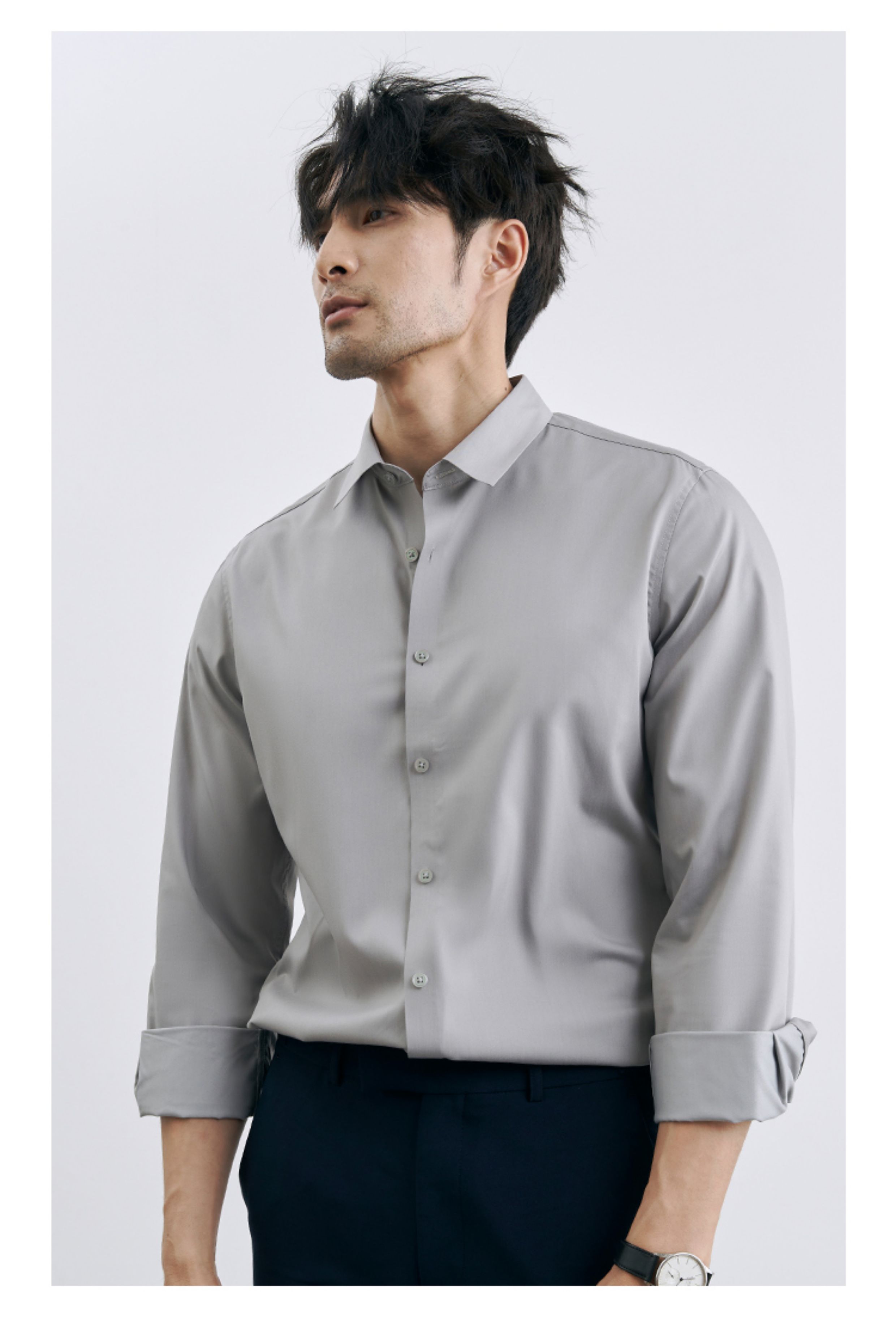Korean Style High-End Business Formal Wear Wrinkle-Free Black Shirt for Men, Anti-Wrinkle Long-Sleeved White Casual Shirt Jacket